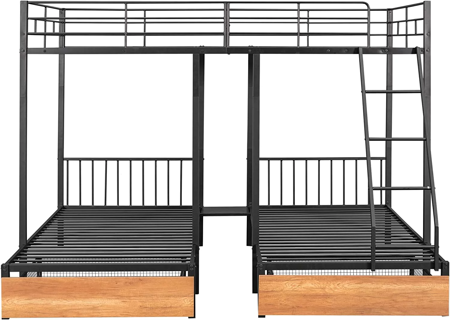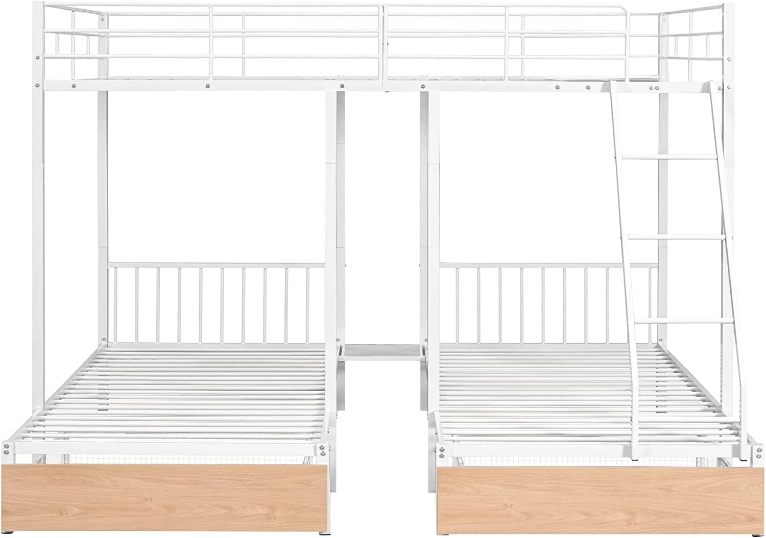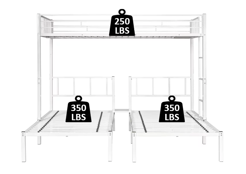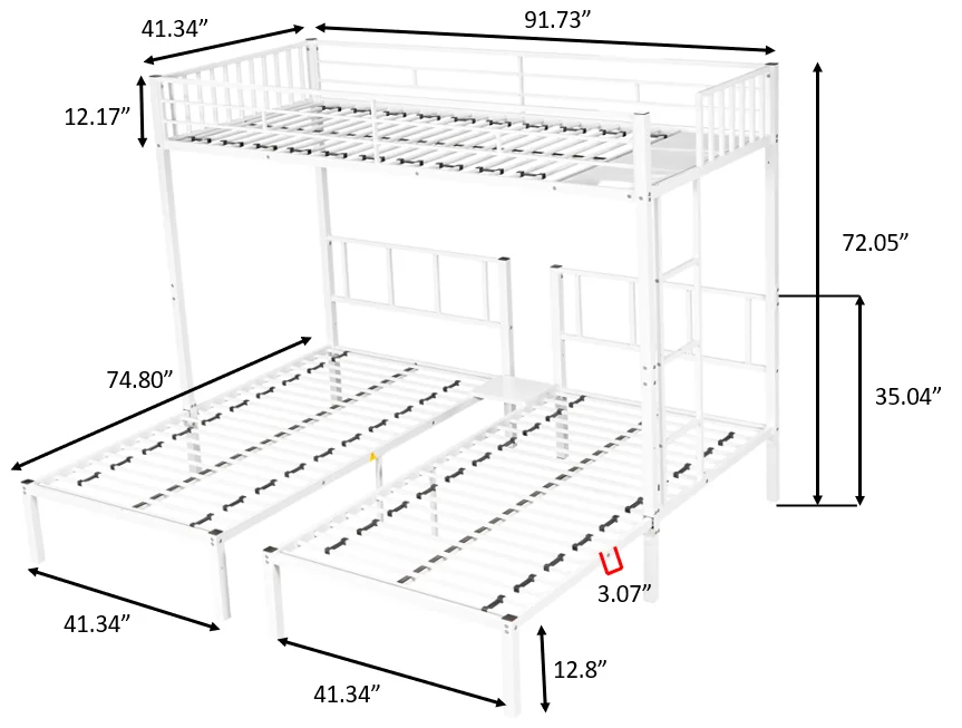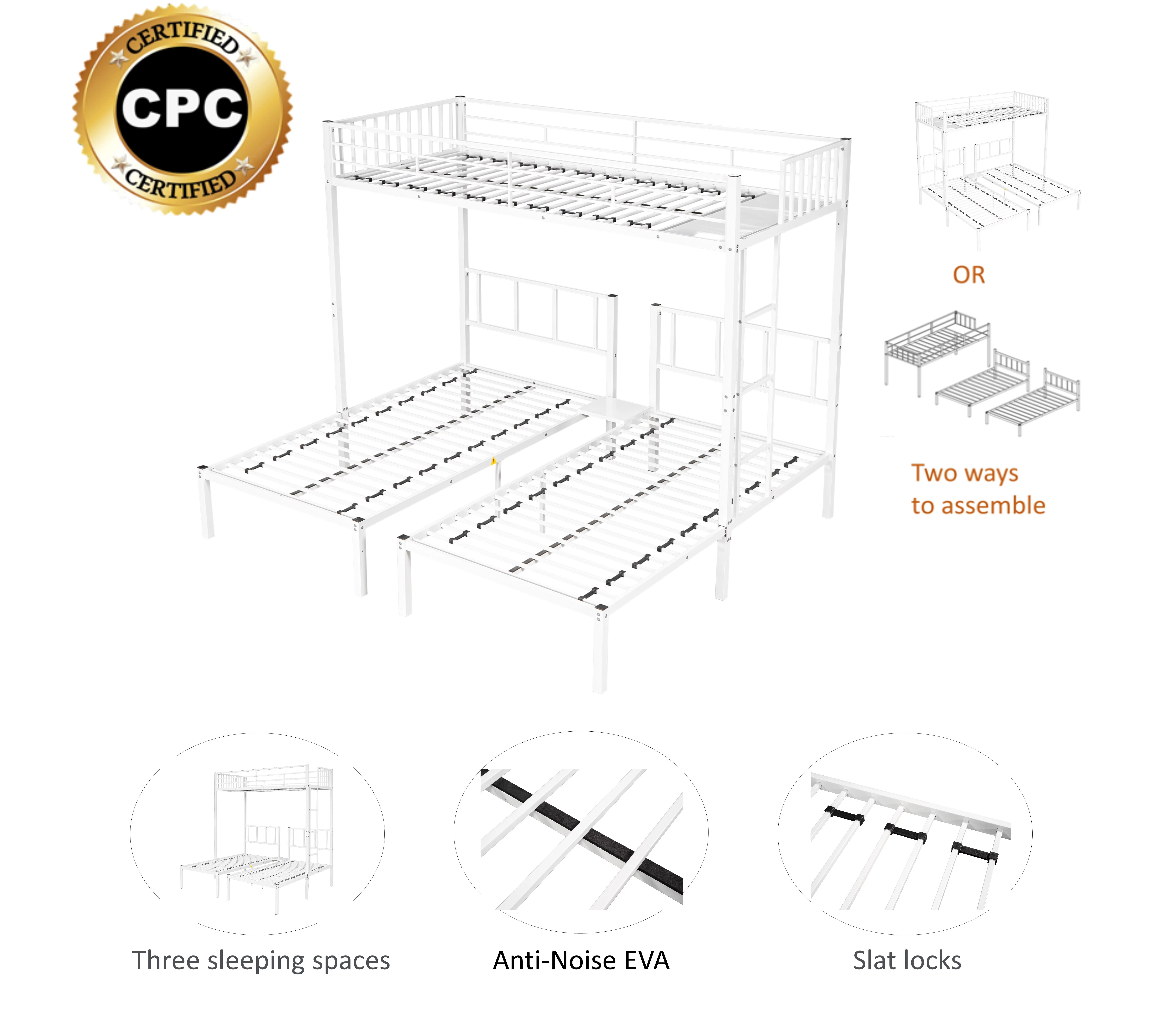 Triple Bed Metal -Over--Over- Bed Bunk Bed With 3 Ladders, Bunk Bed For Family, Teens,No Box Spring Needed