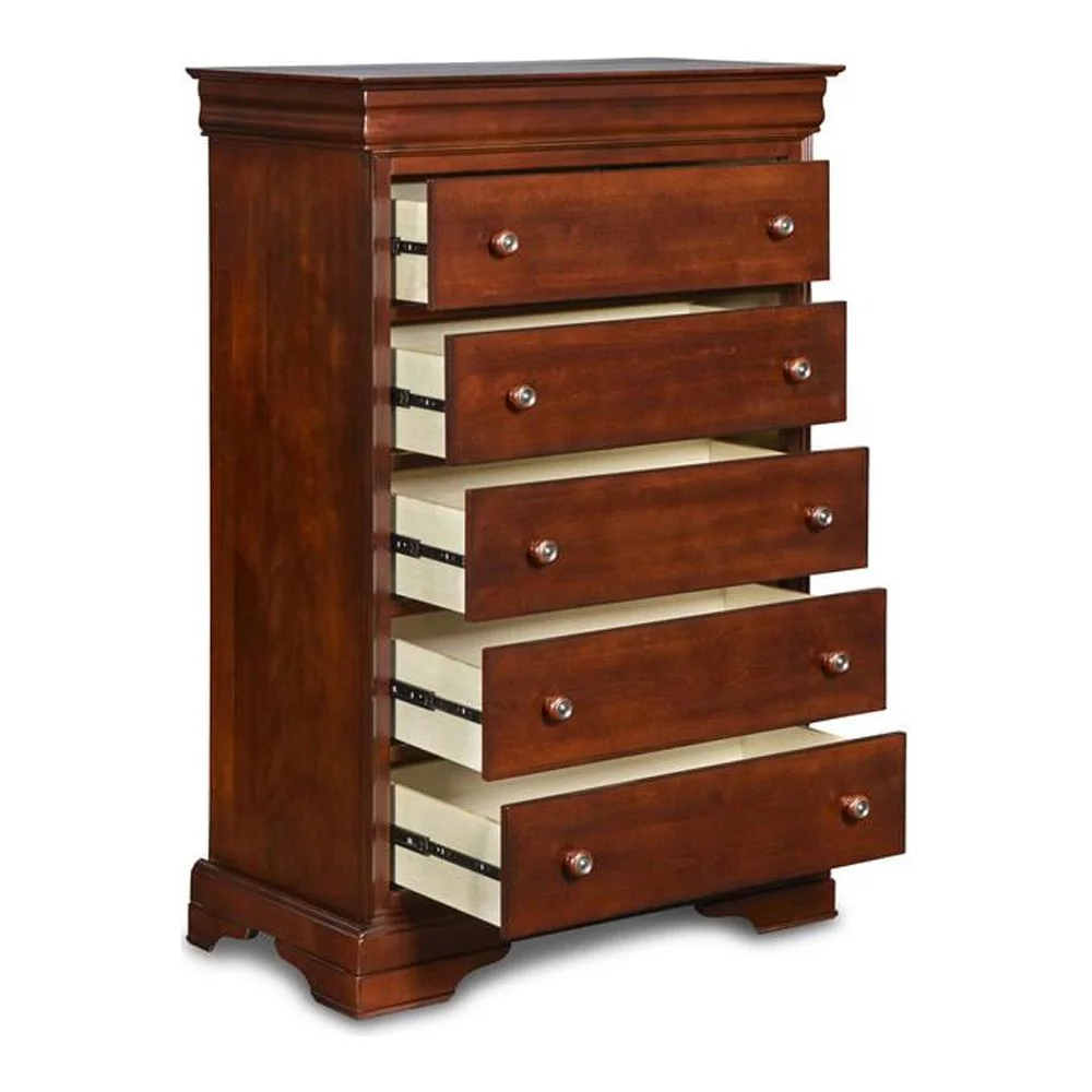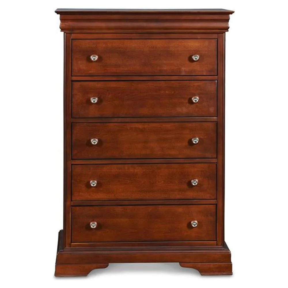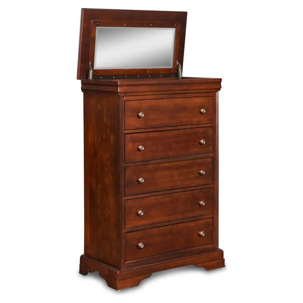 New Classic Furniture Versailles Solid Wood 5-Drawer Lift Top Chest in Bordeaux Cherry