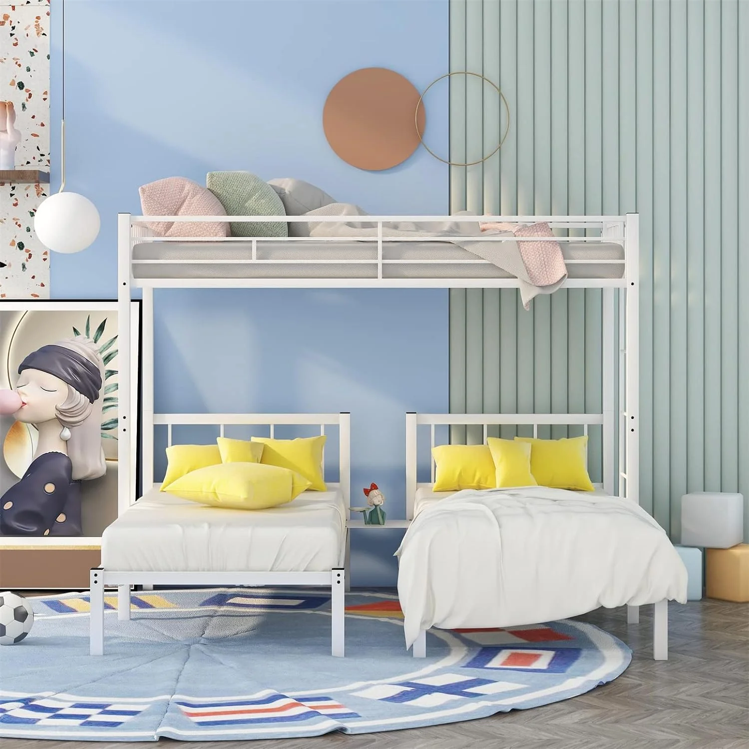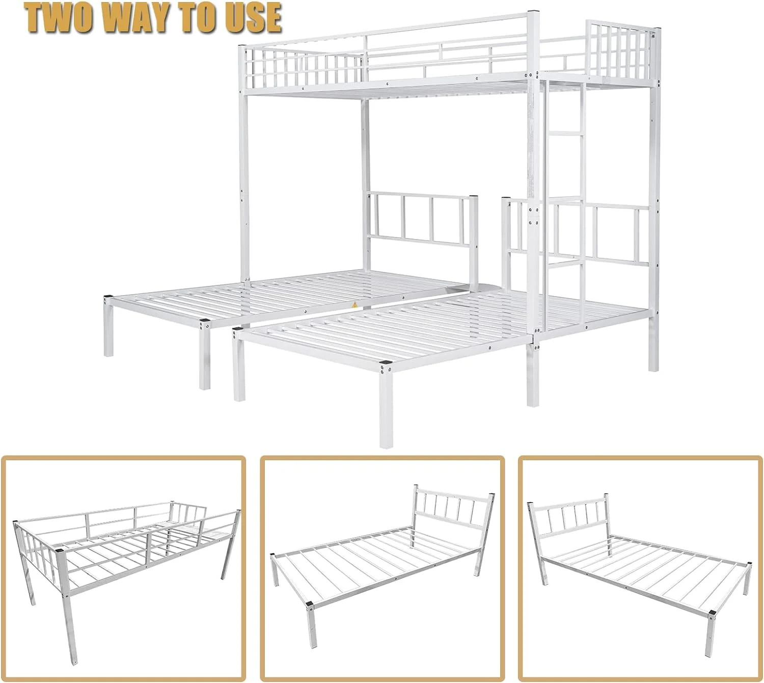 Triple Bunk Beds, Over / Bunk Bed Metal Triple Bed Frame For Kids Boys Girls, Can Be Divided Into 3 Separate Beds, White