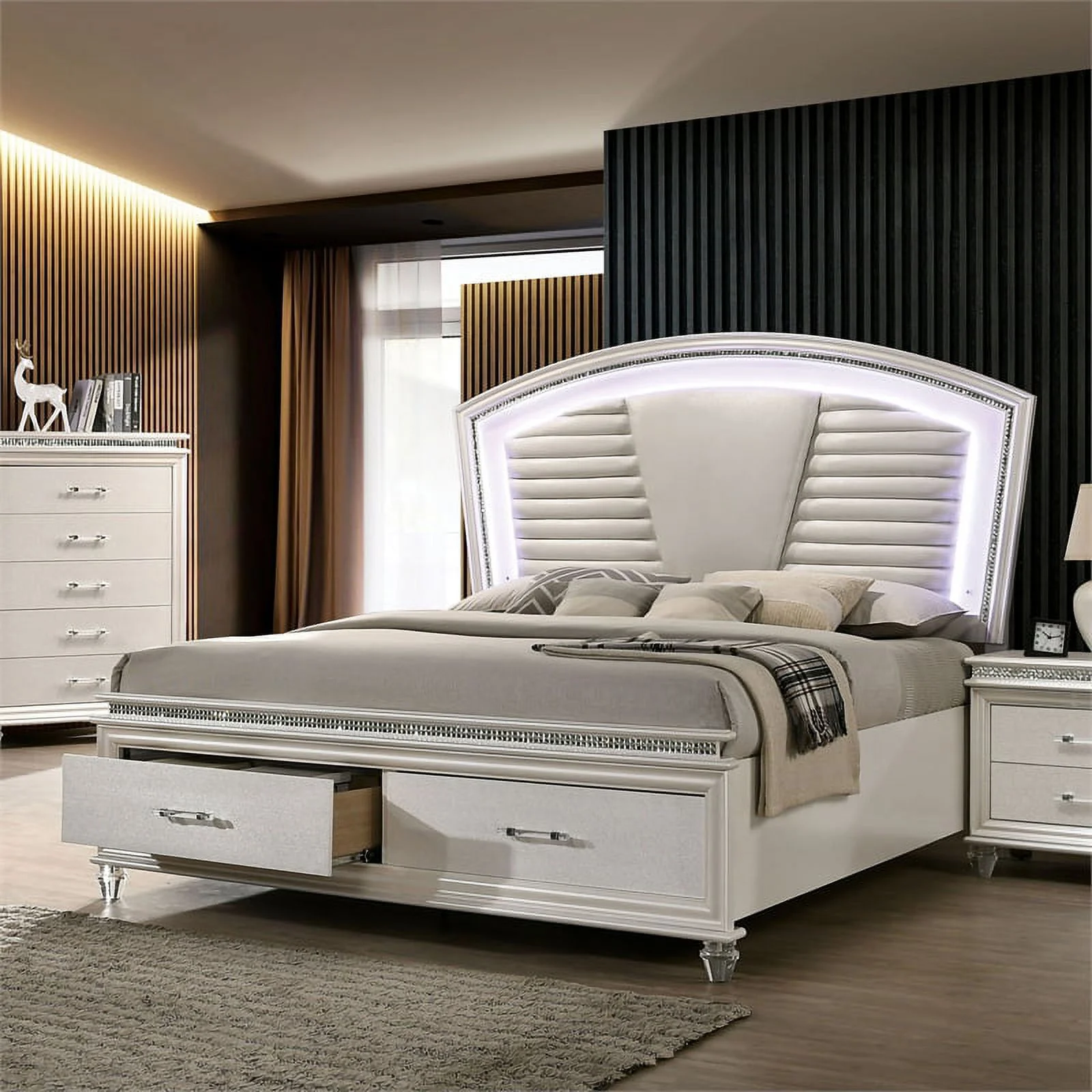 Furniture of America Plumley Contemporary Wood Queen Bed with LED in Silver
