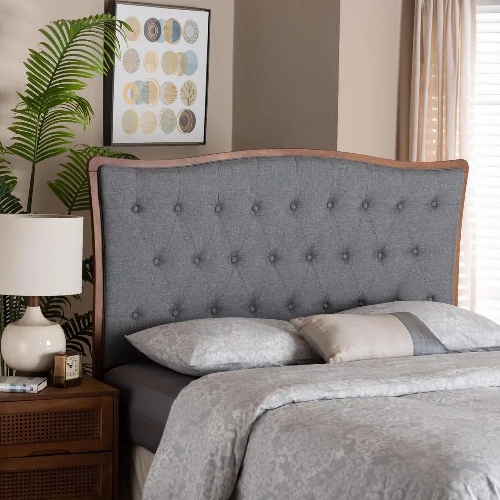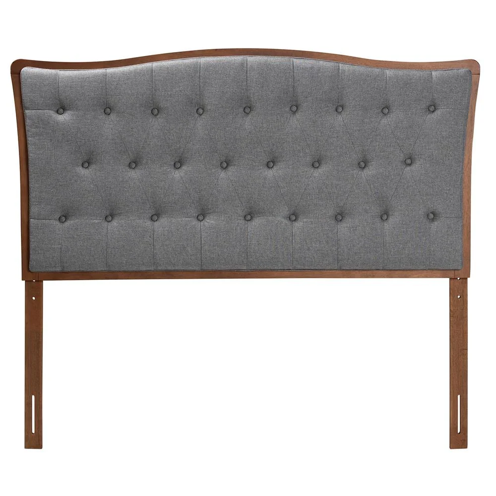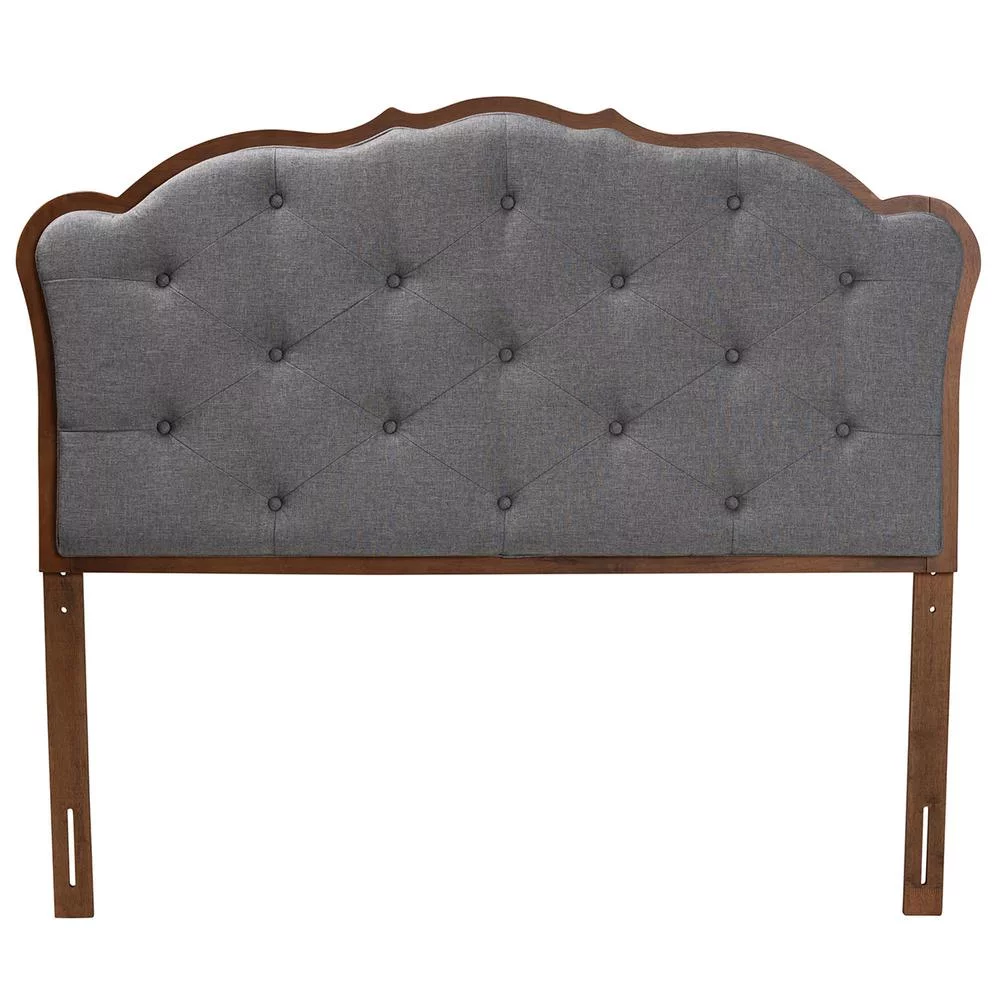 Baxton Studio Leandra Gray Fabric and Walnut Brown Wood Queen Size Headboard