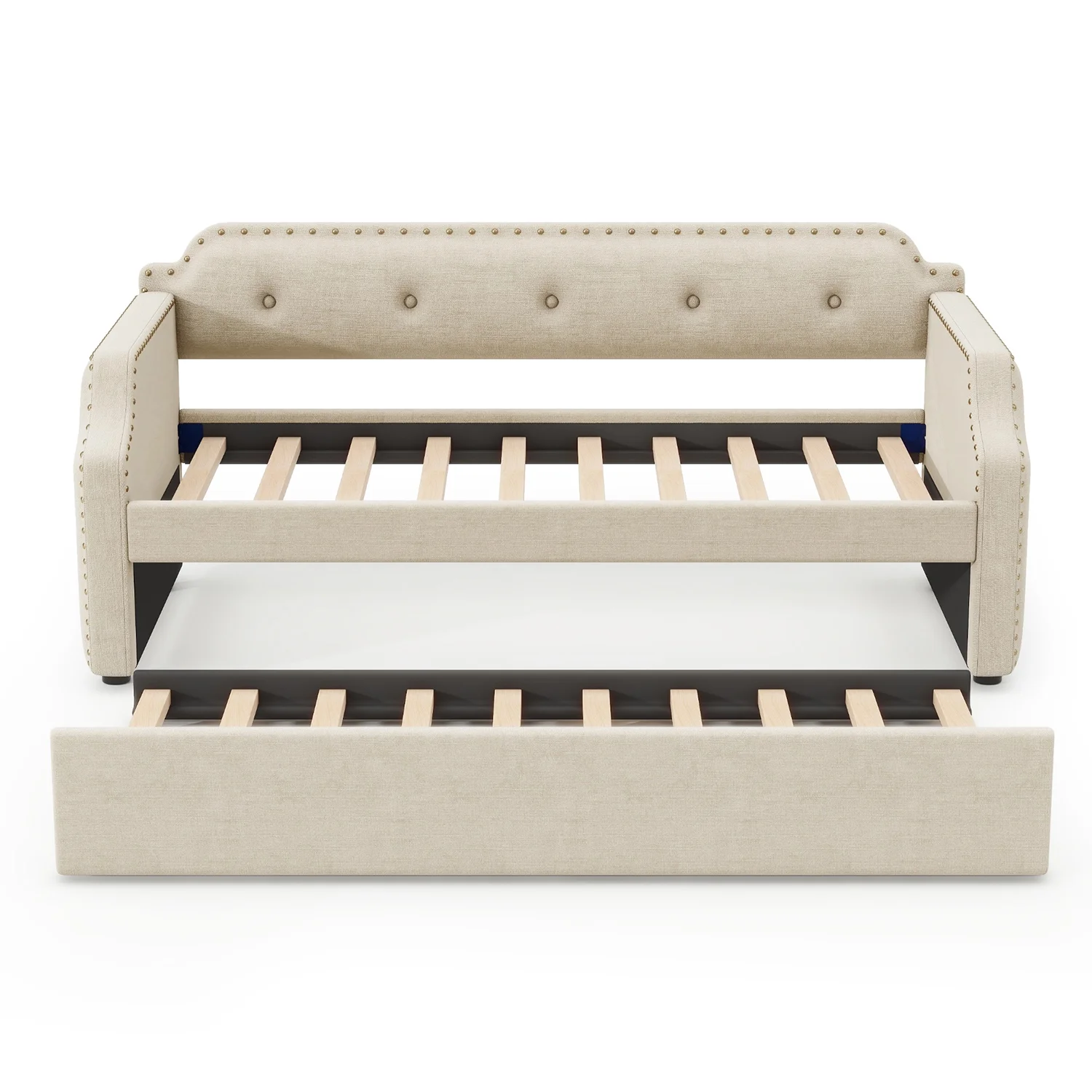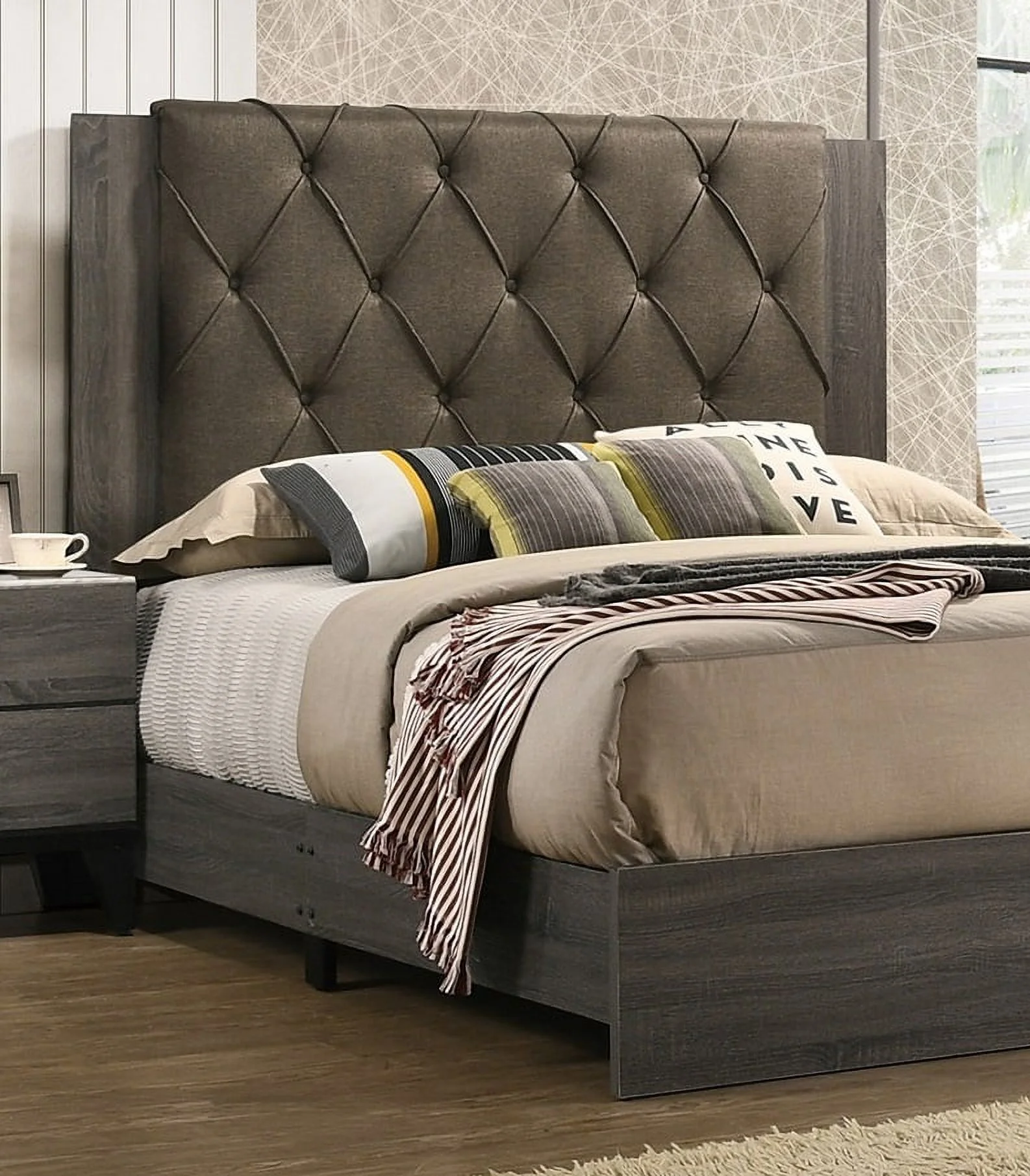 Contemporary Upholstered Tufted Headboard Queen Size Bed Gray Color Wooden 1pc Set Bedframe Slats