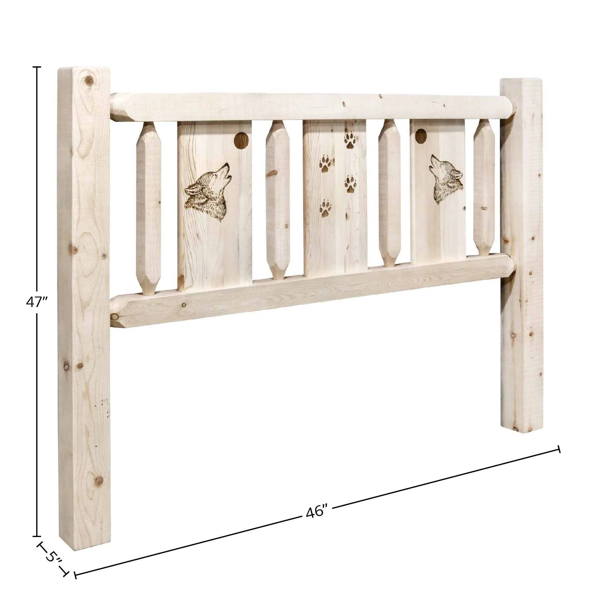 Homestead Collection Twin Headboard w/ Laser Engraved Wolf Design, Clear Lacquer Finish