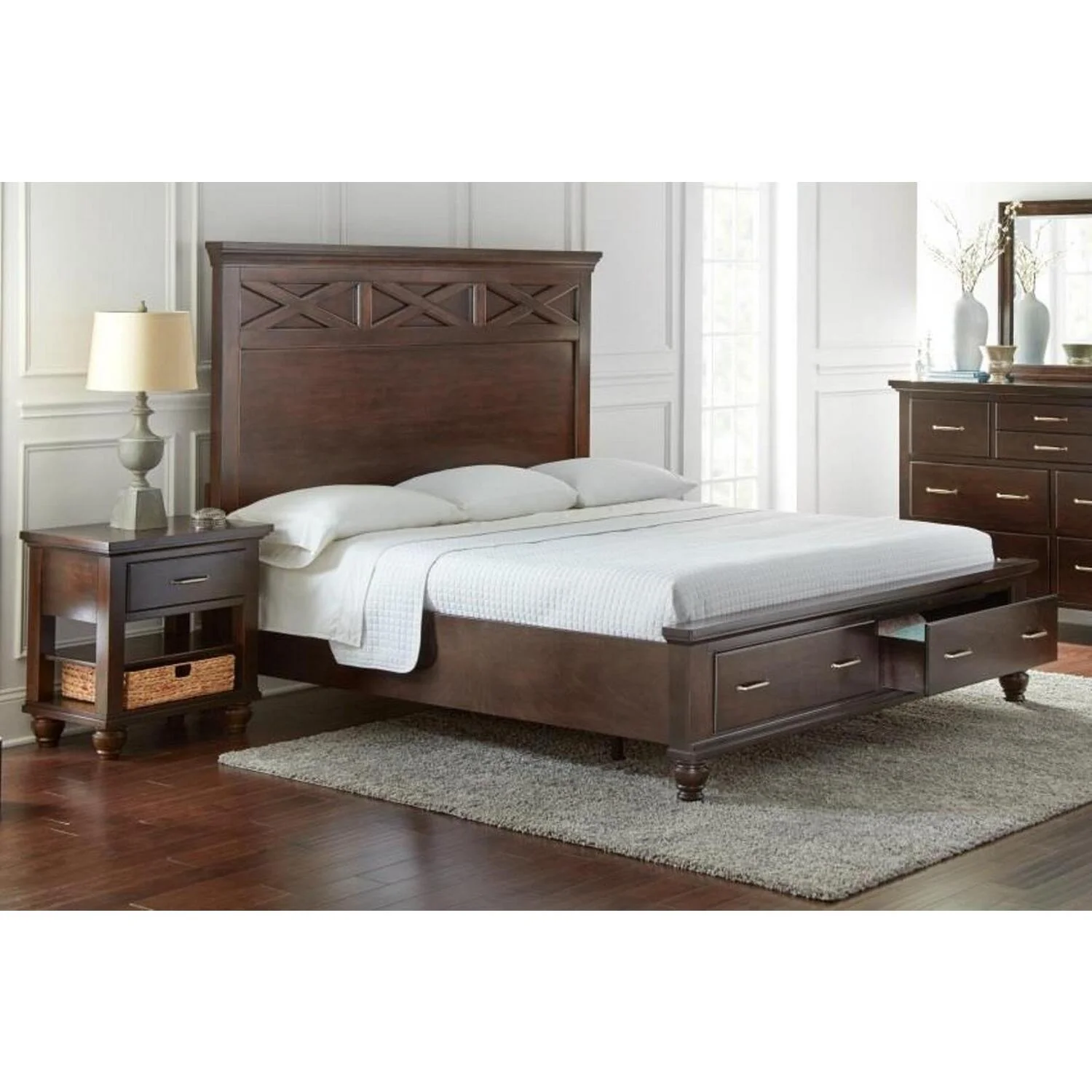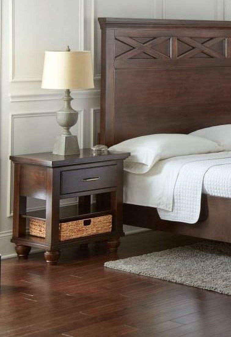 Wooden Queen Bed with Molded Trim Headboard and Chamfered Legs, Brown- Saltoro Sherpi