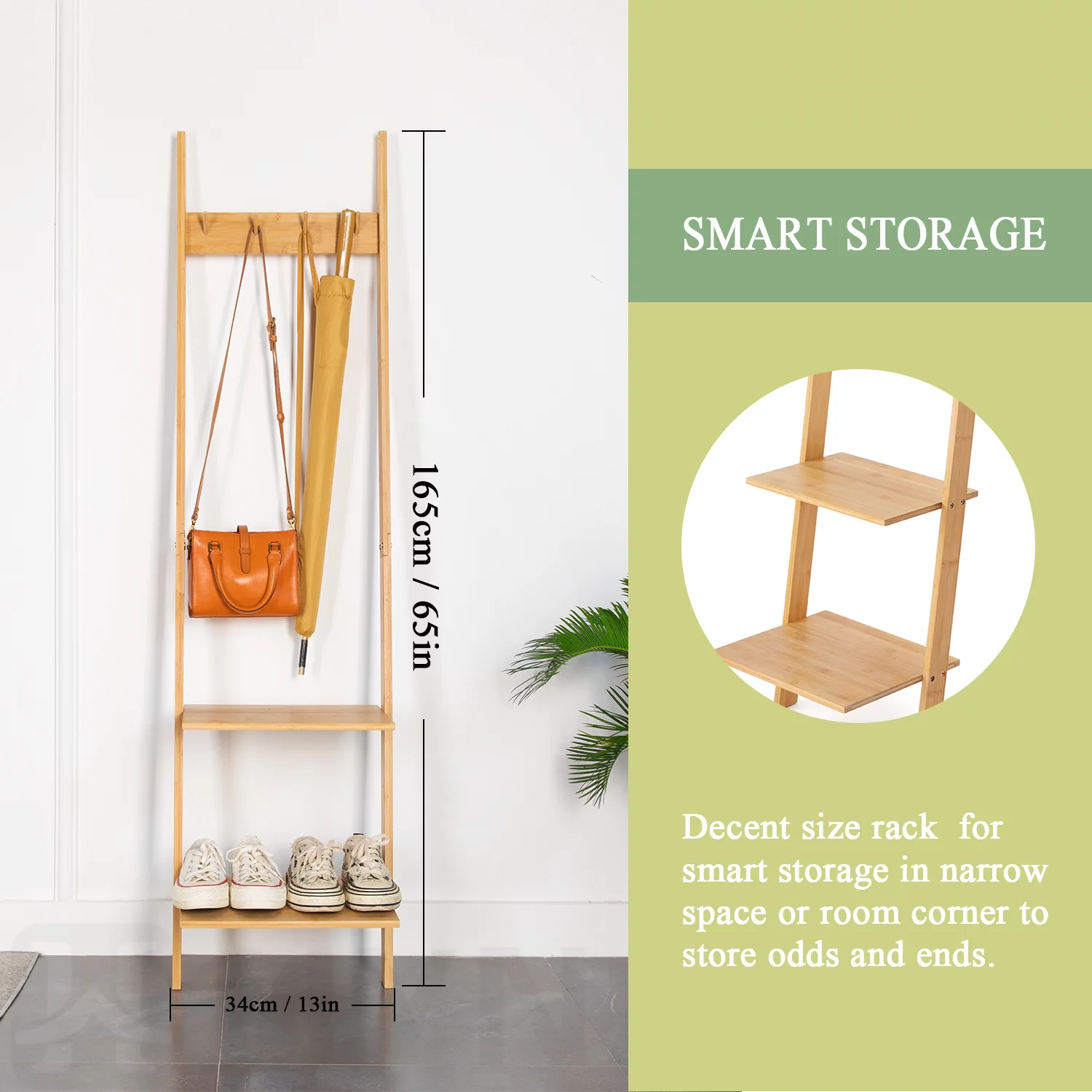 Ladder Shelf 5-Tier Bookshelf –Bamboo Storage Rack Shelves Wall Leaning Shelf, Free Standing Plant Flower Stand