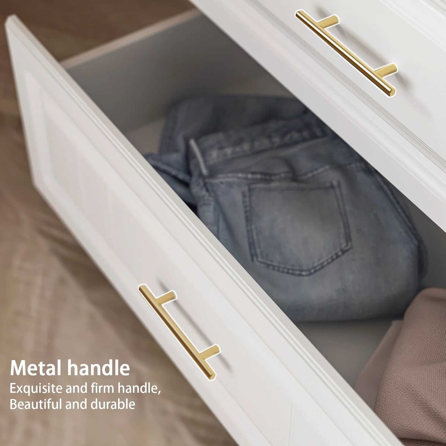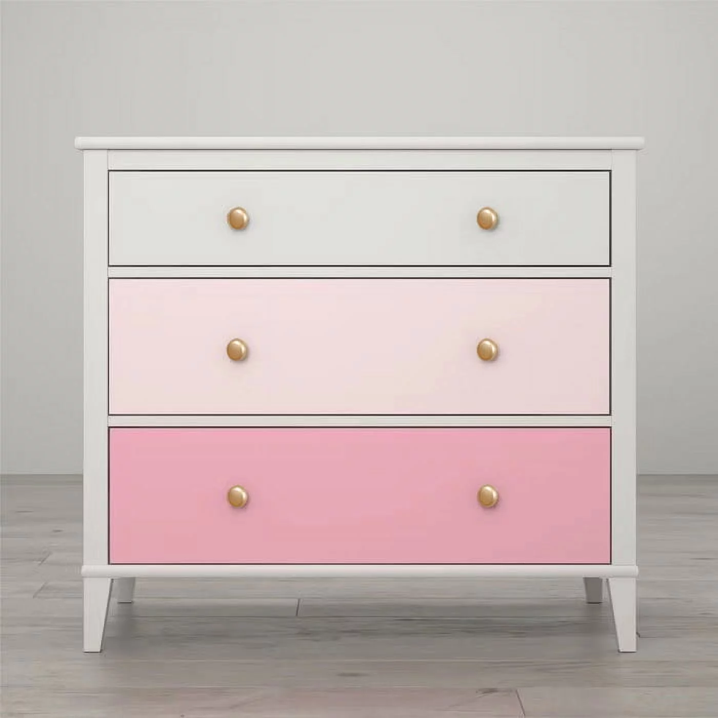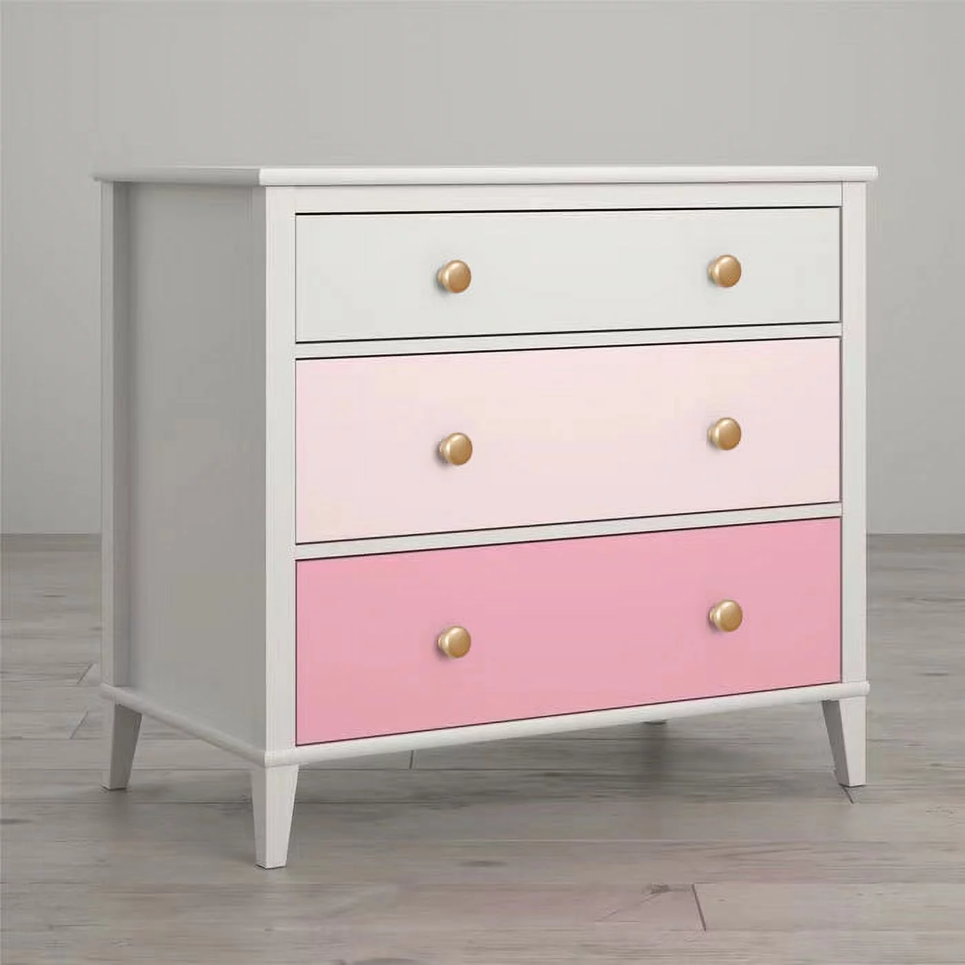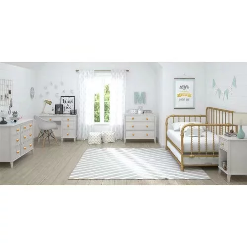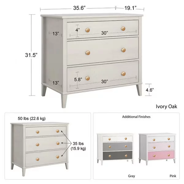 FM Furniture Praga Modern Metal Dresser with 3-Drawer & Countertop in Light Oak