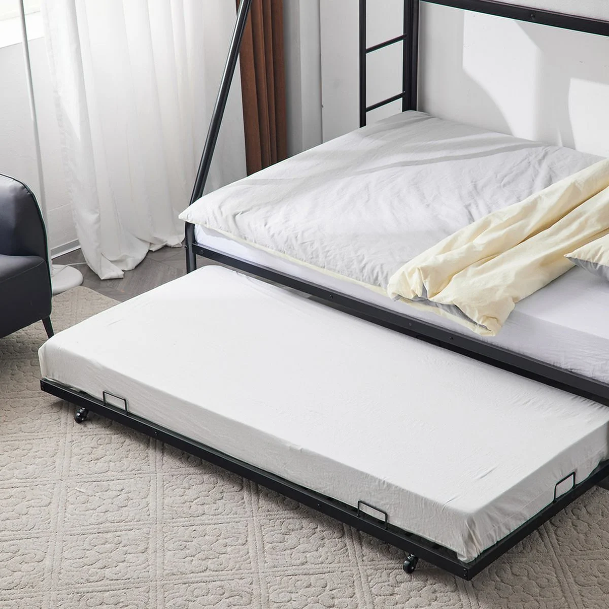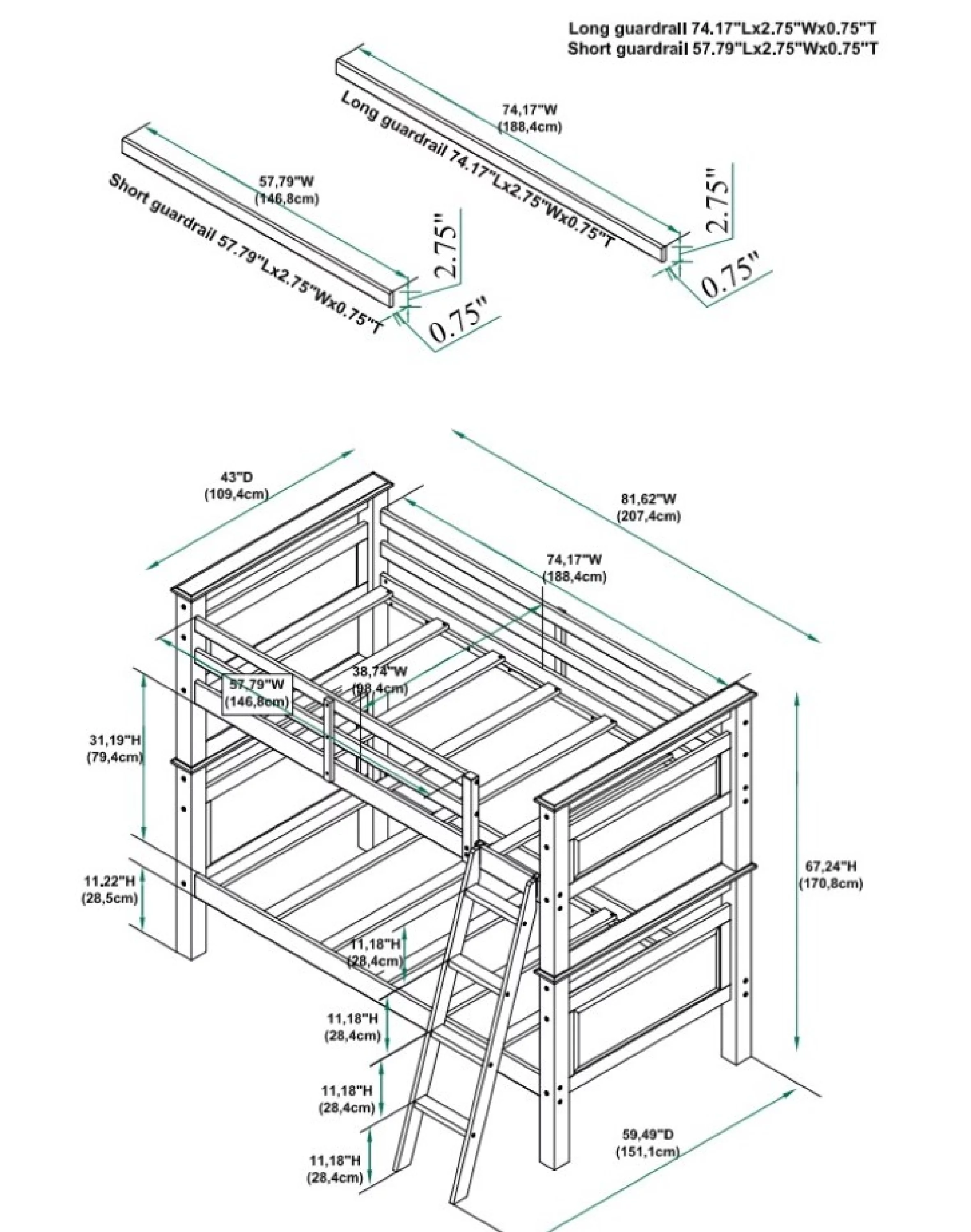 Powell Kiggins Kid's Twin over Twin Convertible Bunk Bed with Built-In Ladder, Black