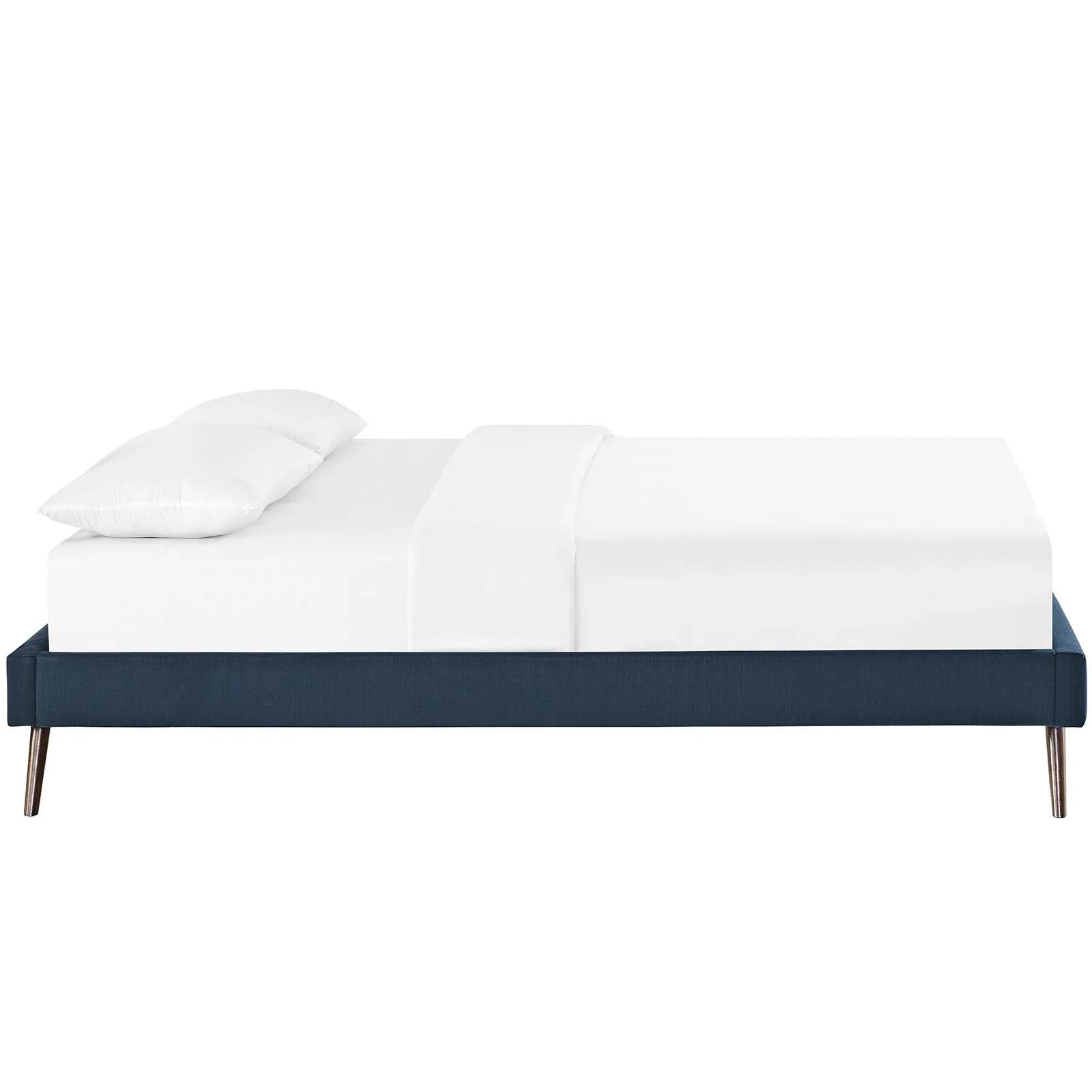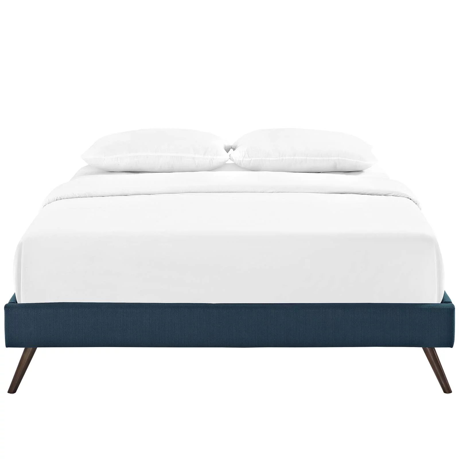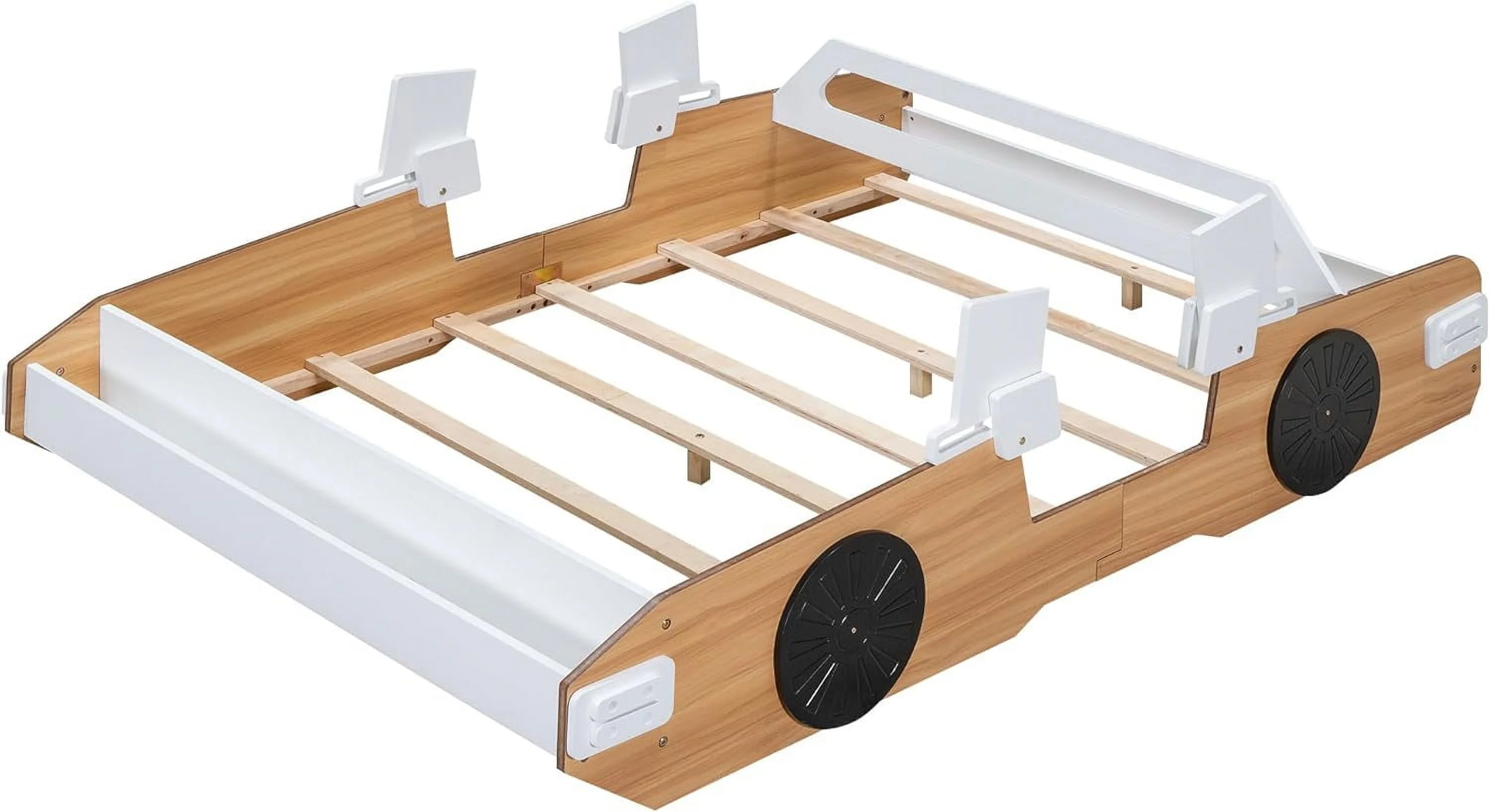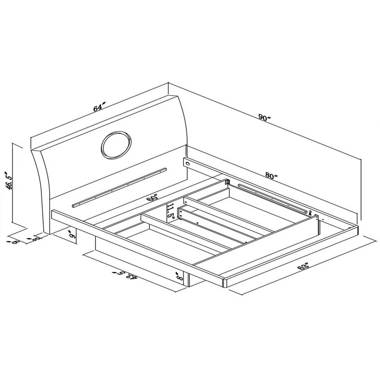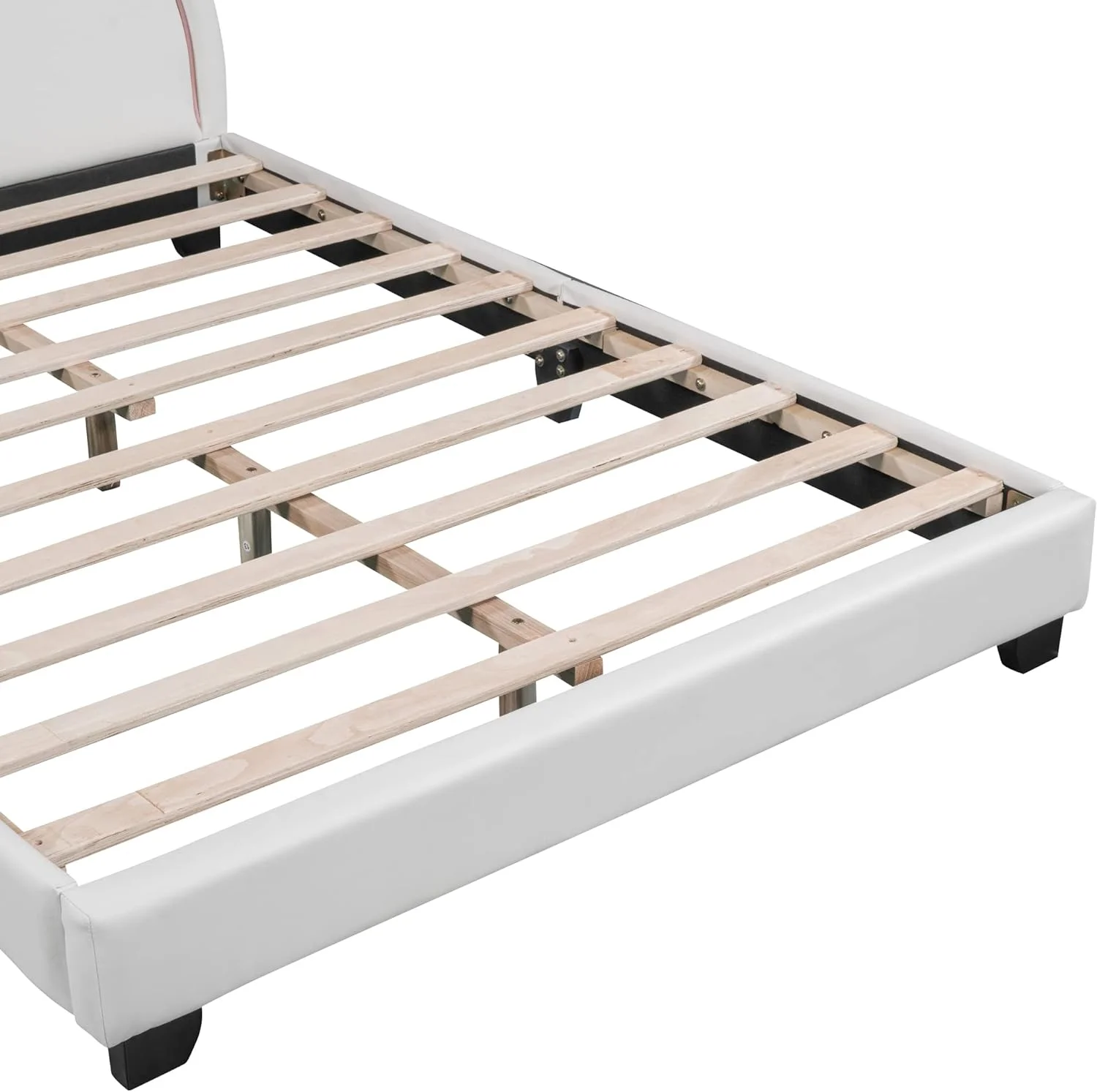 Full Size PU Leaher Upholsered Plaform Bed Wih Rabbi Orame Headboard Ad Woode Sla Suppor, o Sprig Box eeded (Whie)