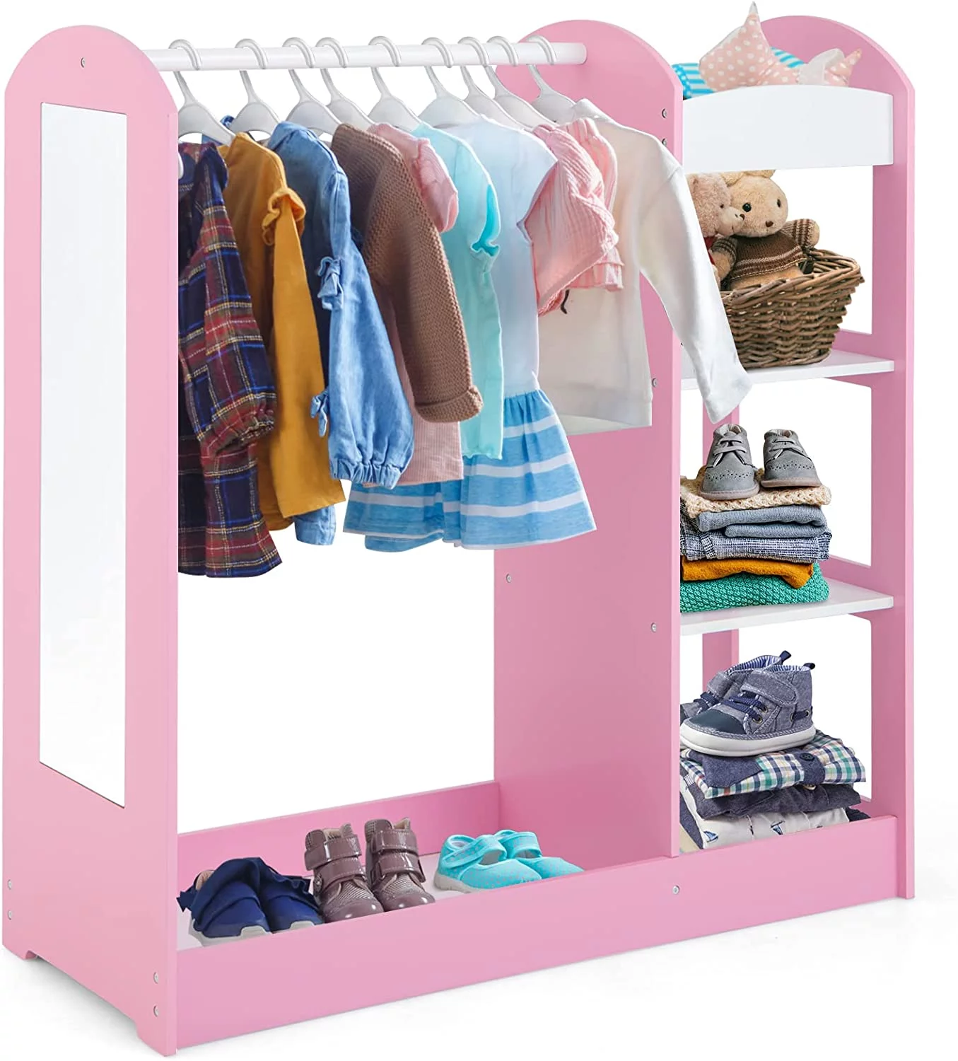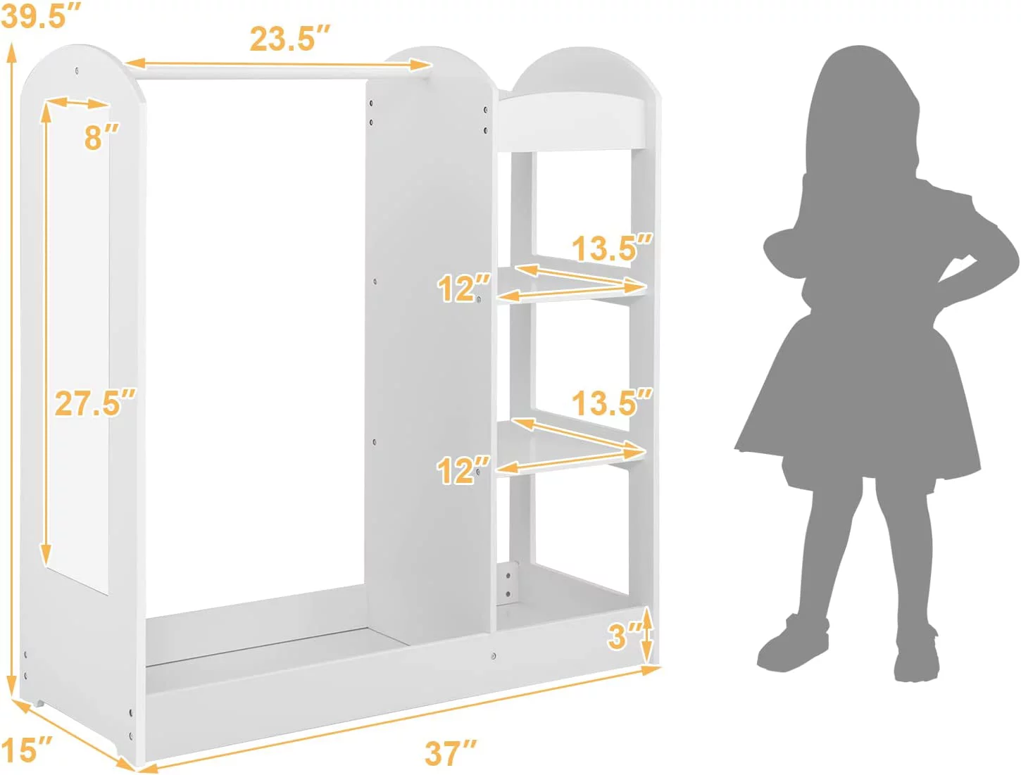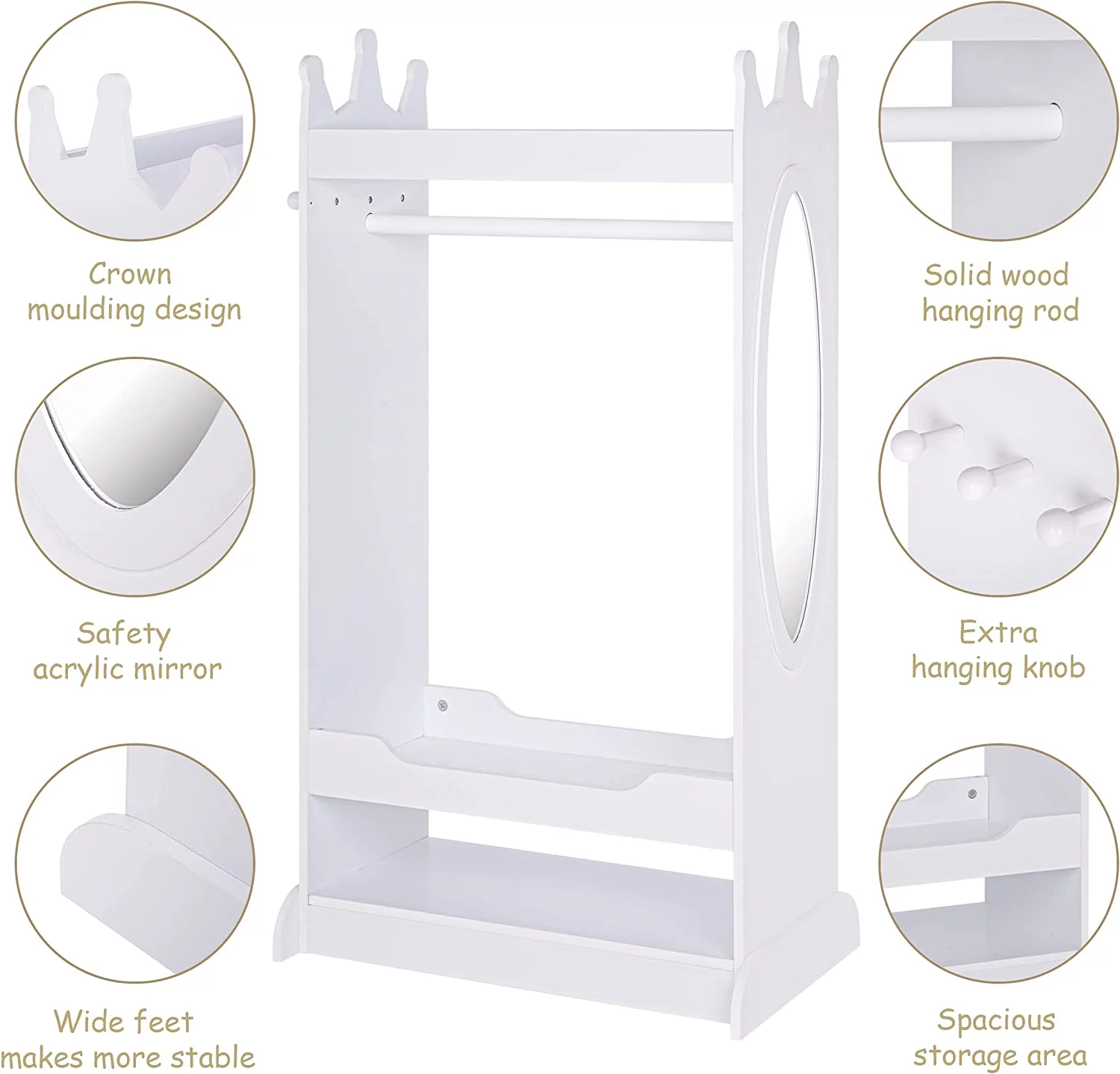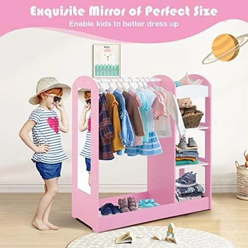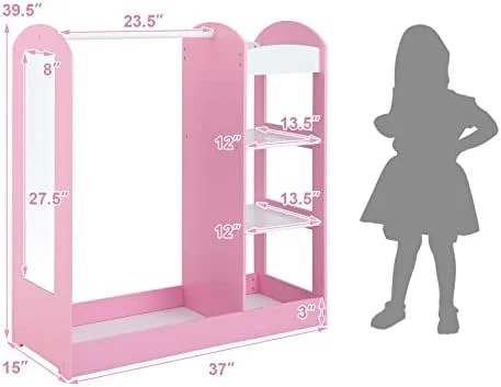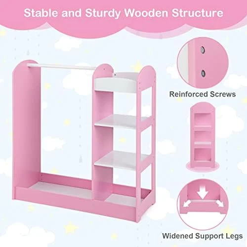SYTHERS Kids Dress up Storage with Storage Drawer, Open Hanging Armoire Closet, Kids Armoire for Bedroom, White
