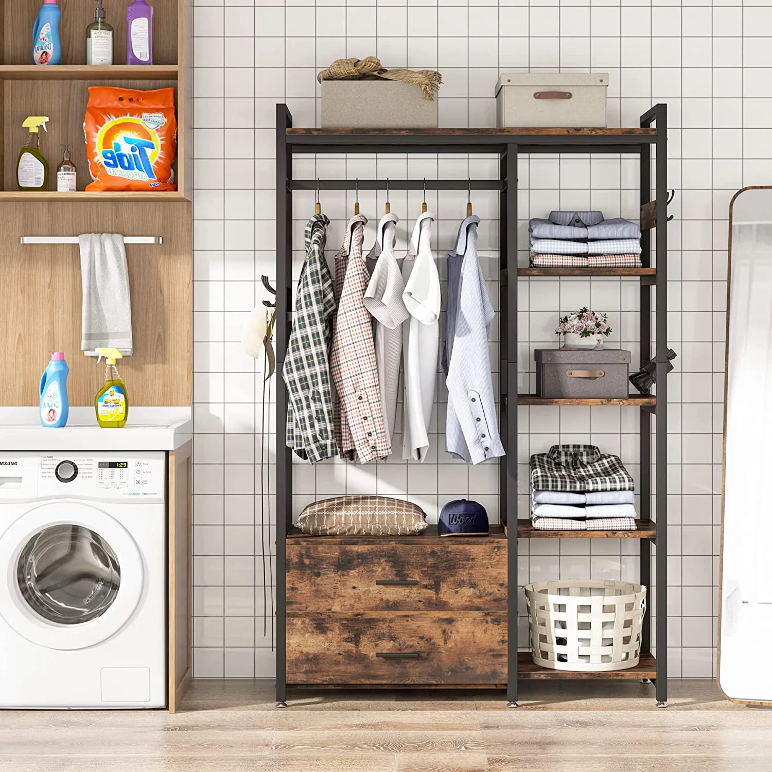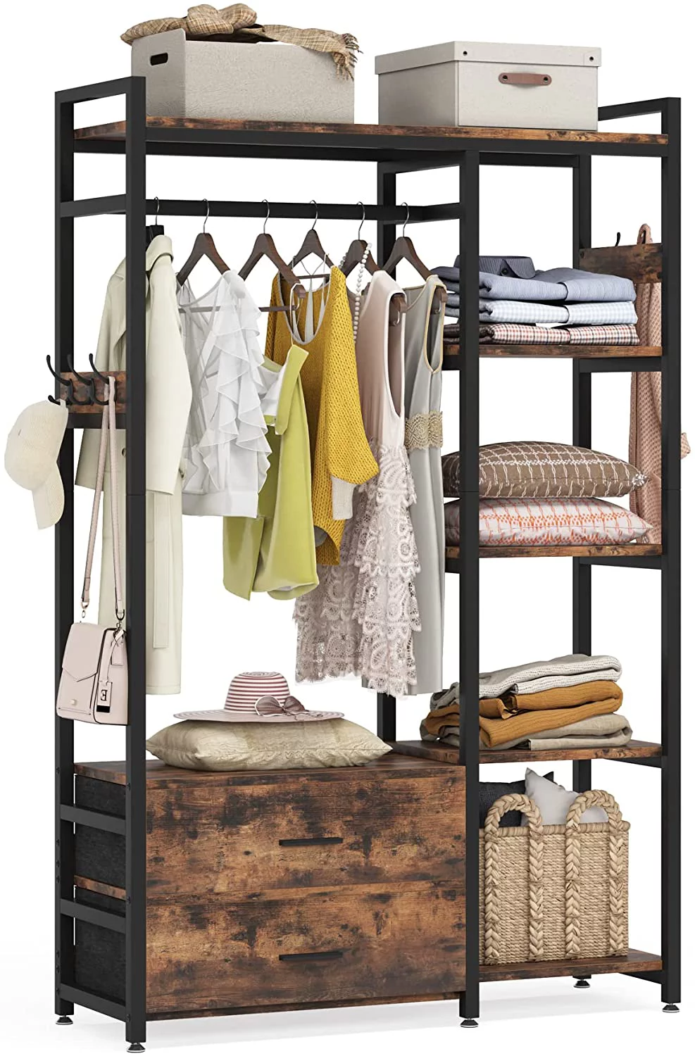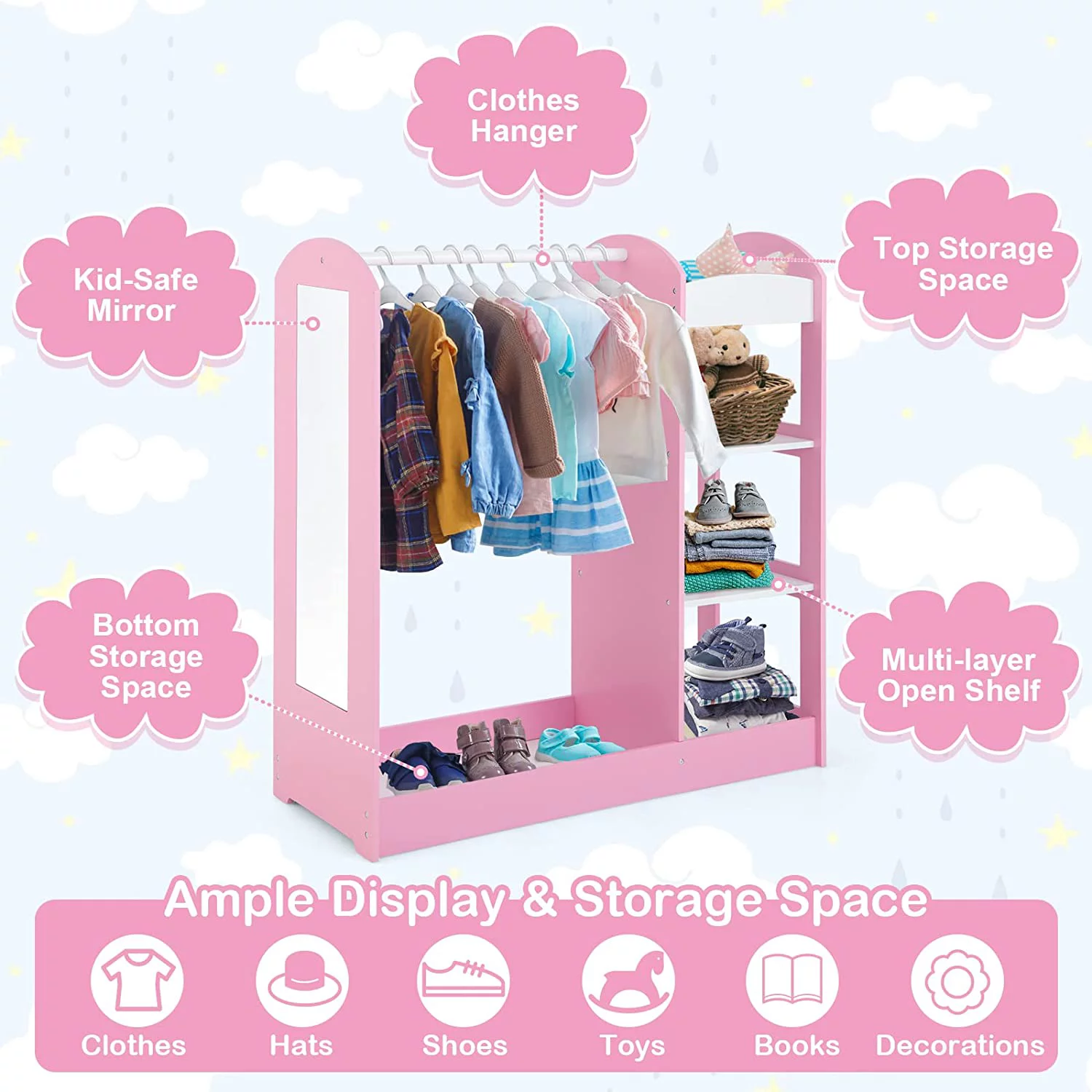 SYTHERS Kids Dress up Storage with Storage Drawer, Open Hanging Armoire Closet, Kids Armoire for Bedroom, White