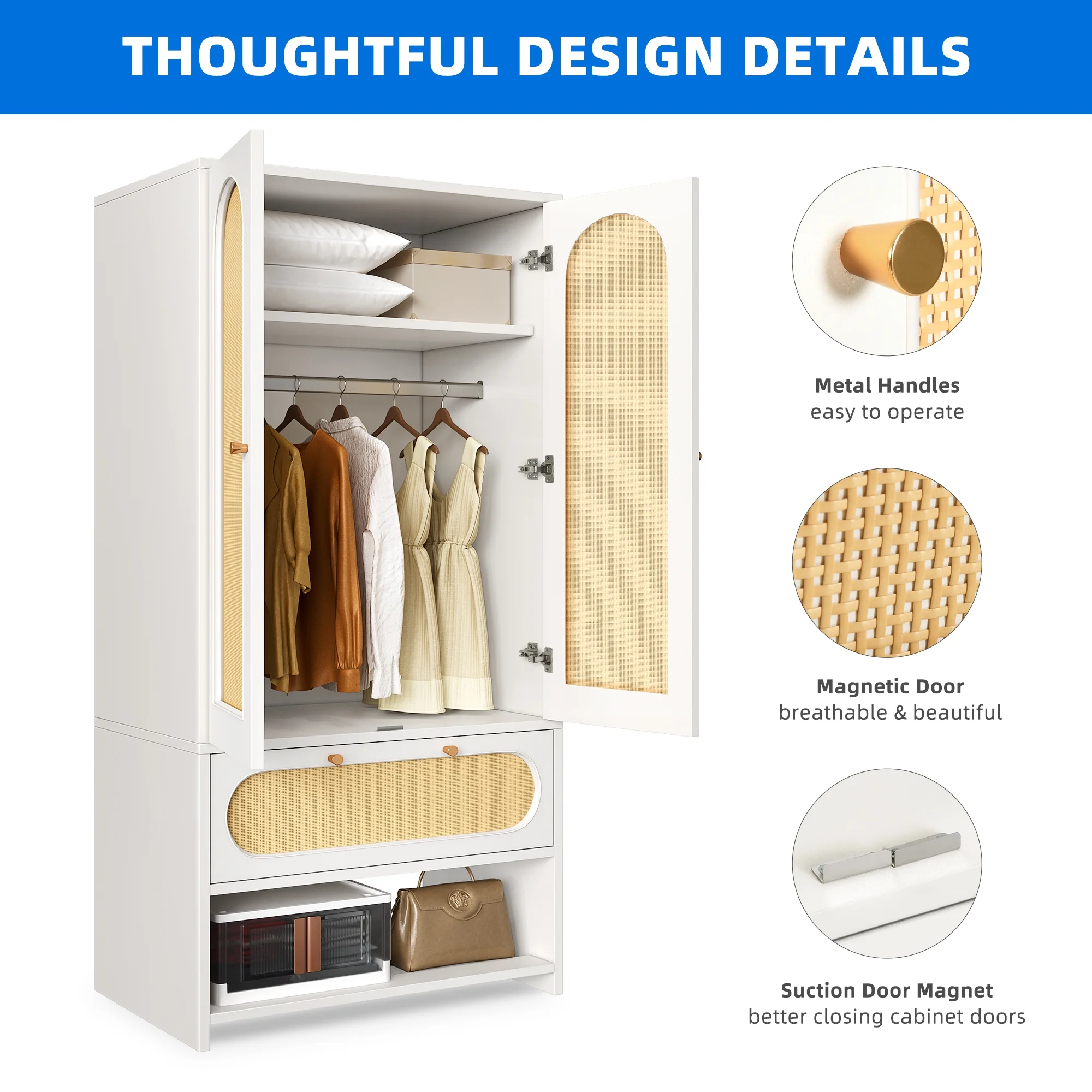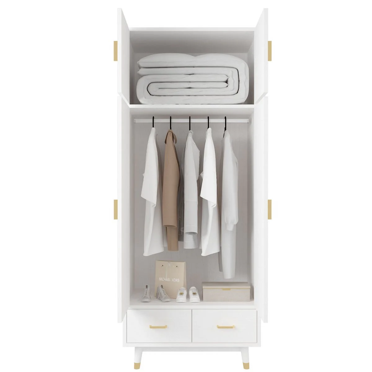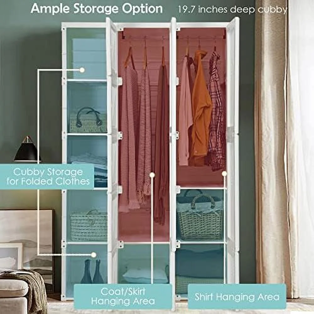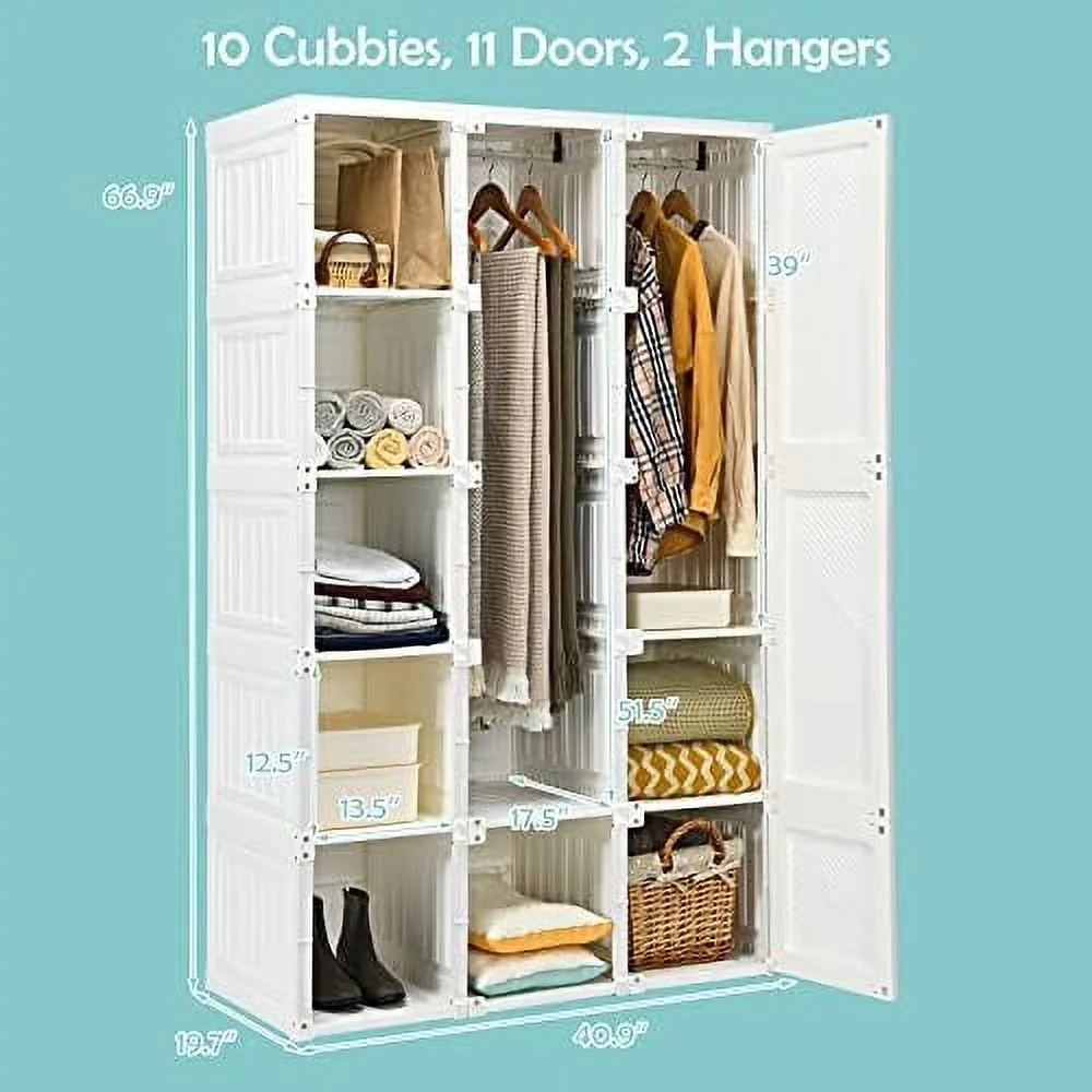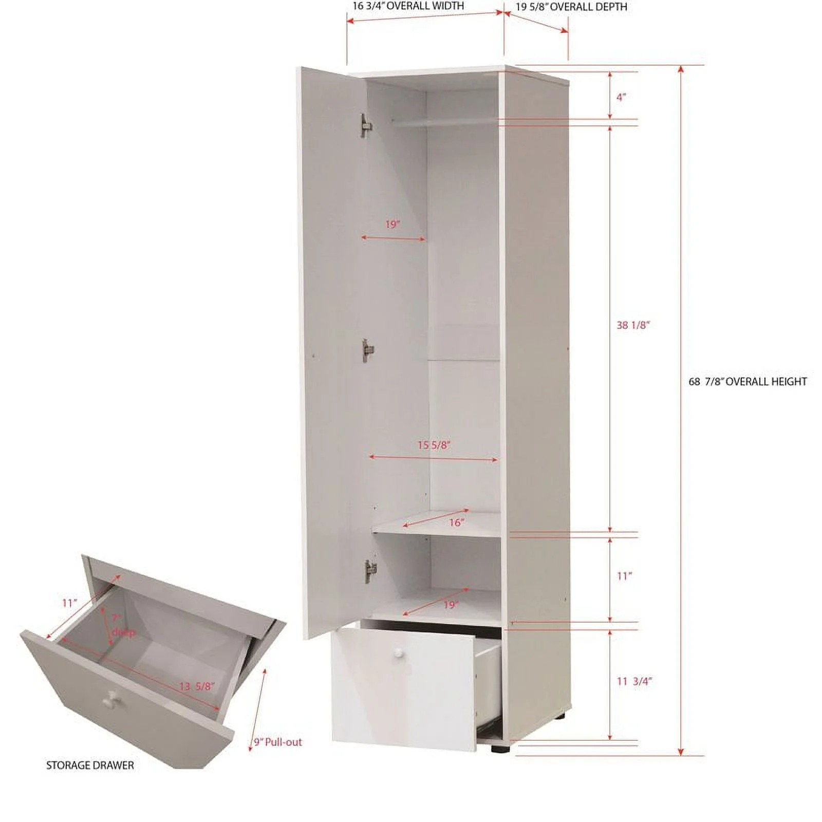 Pilaster Designs Tavish Wood Hanging Storage Wardrobe Armoire Closet in White