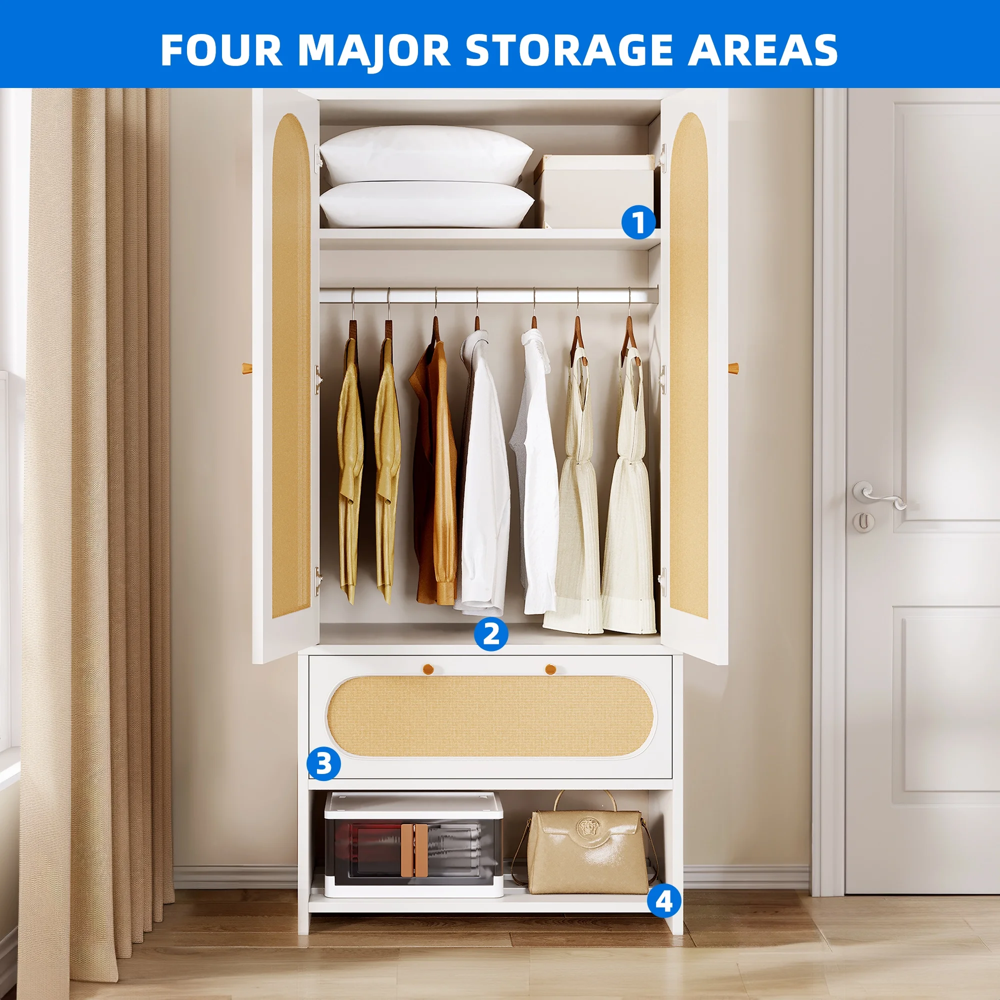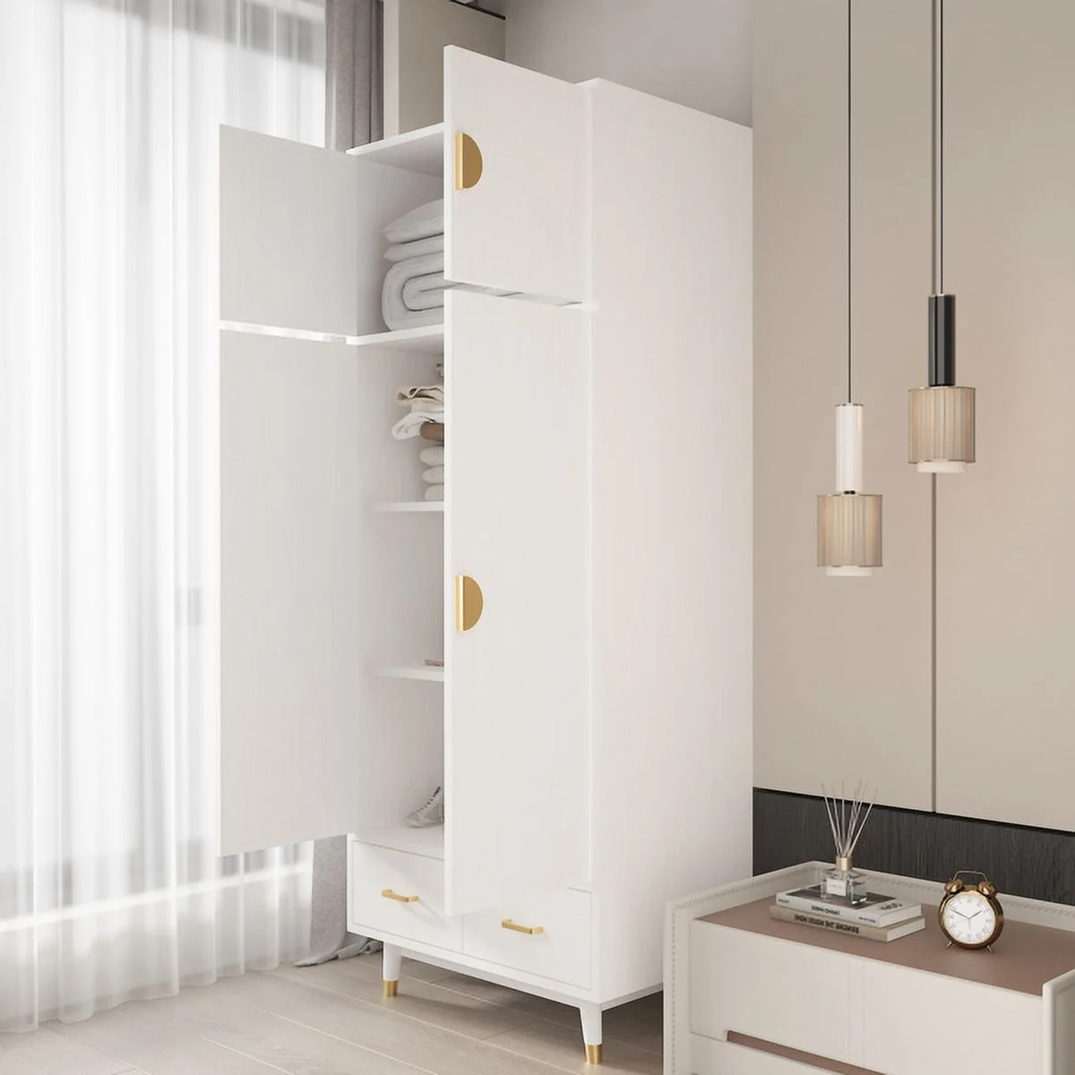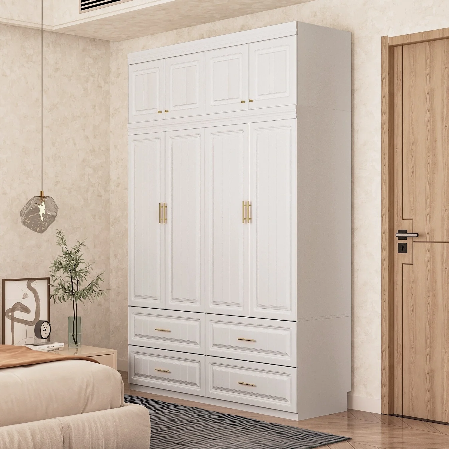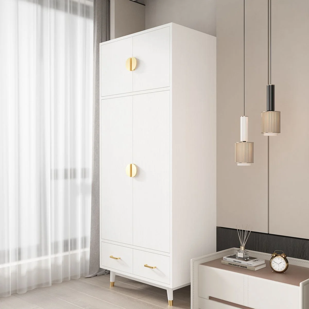 Pilaster Designs Tavish Wood Hanging Storage Wardrobe Armoire Closet in White