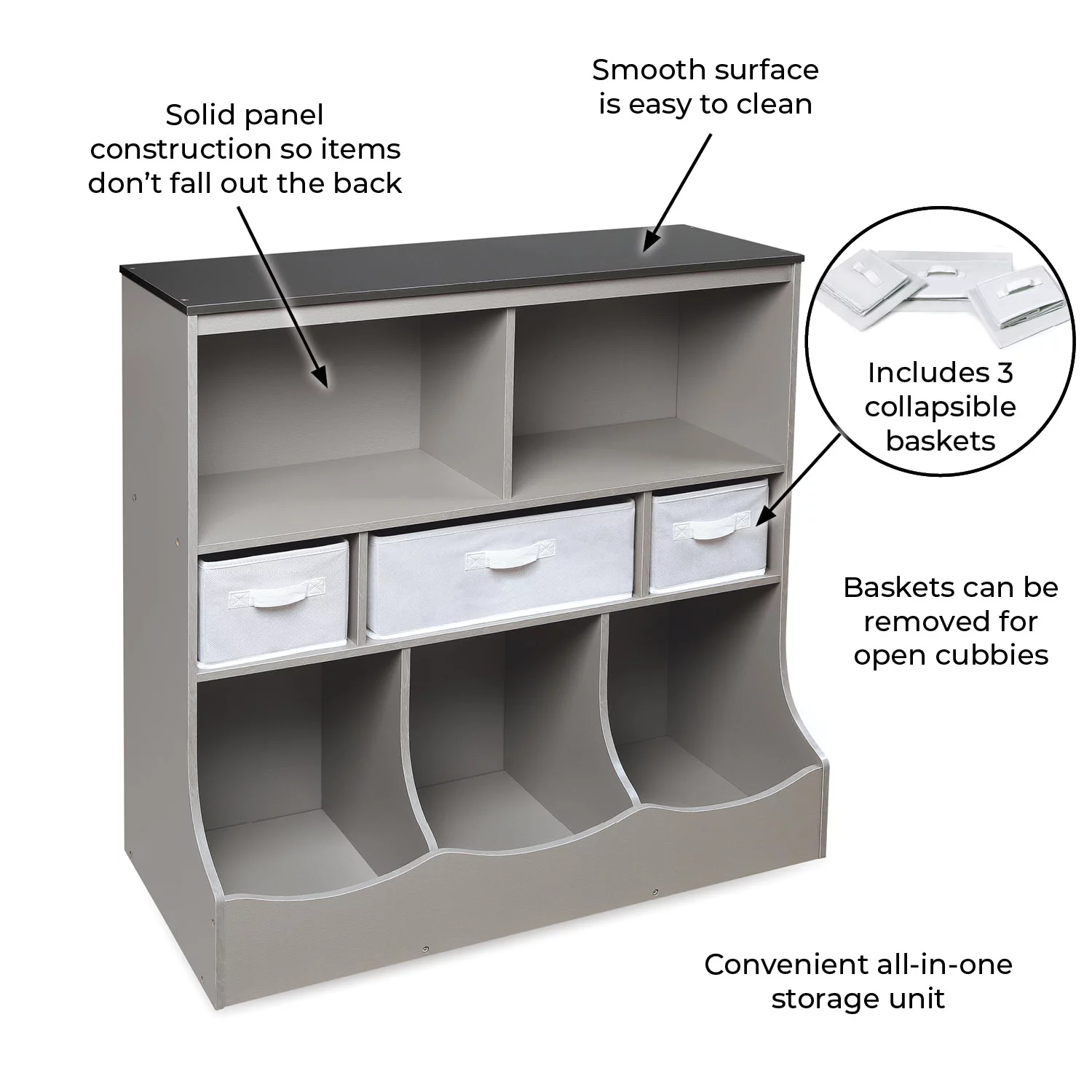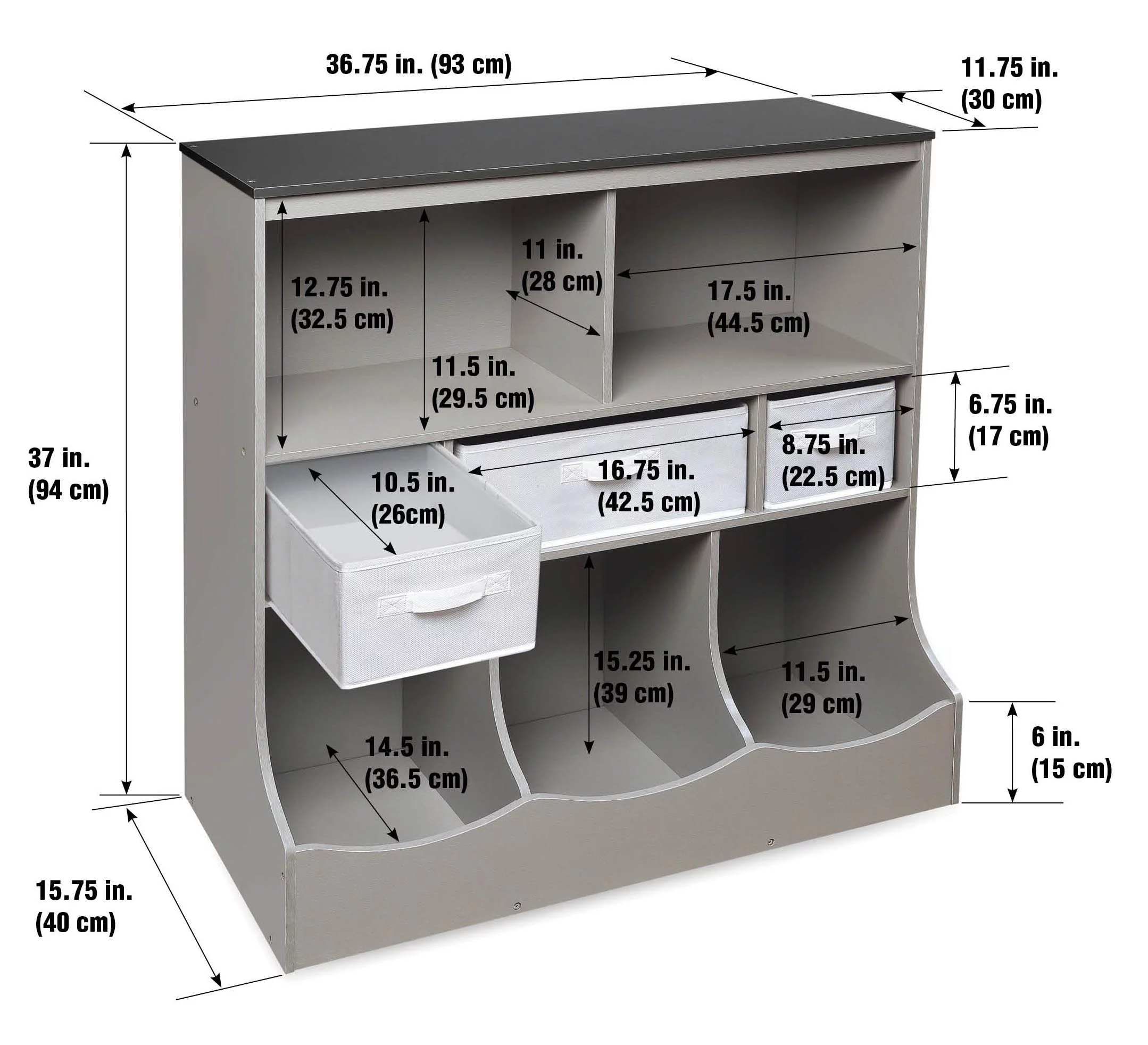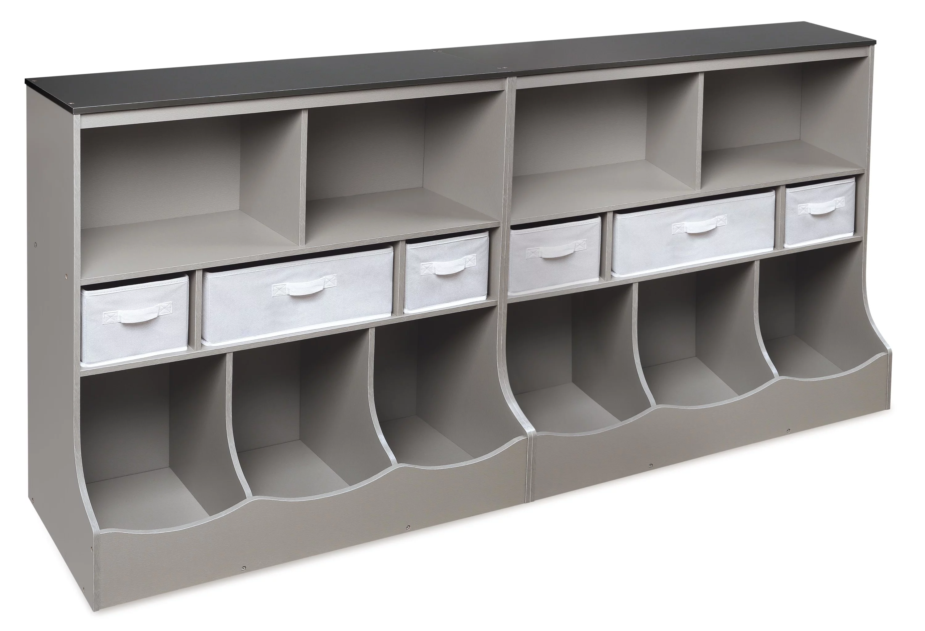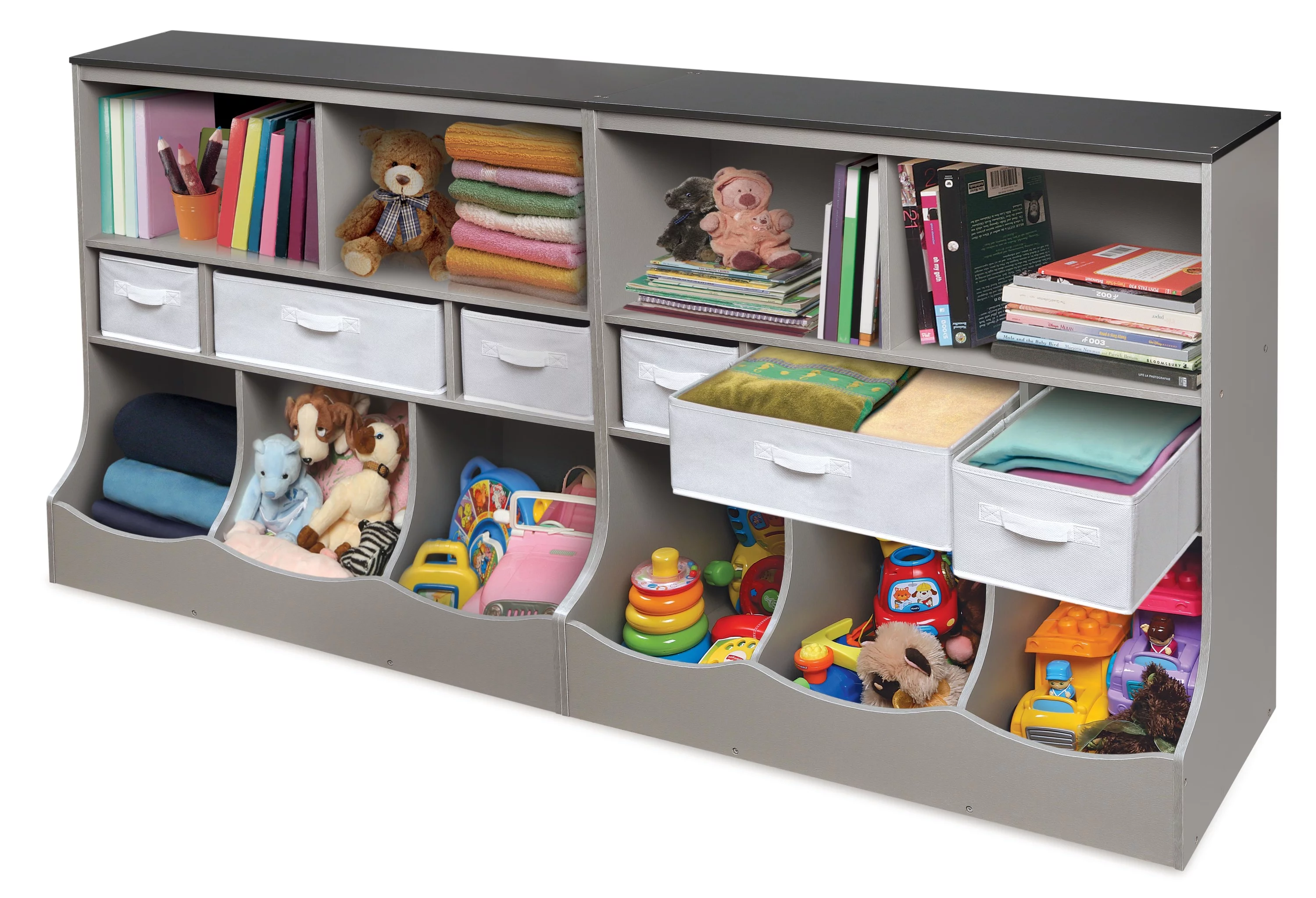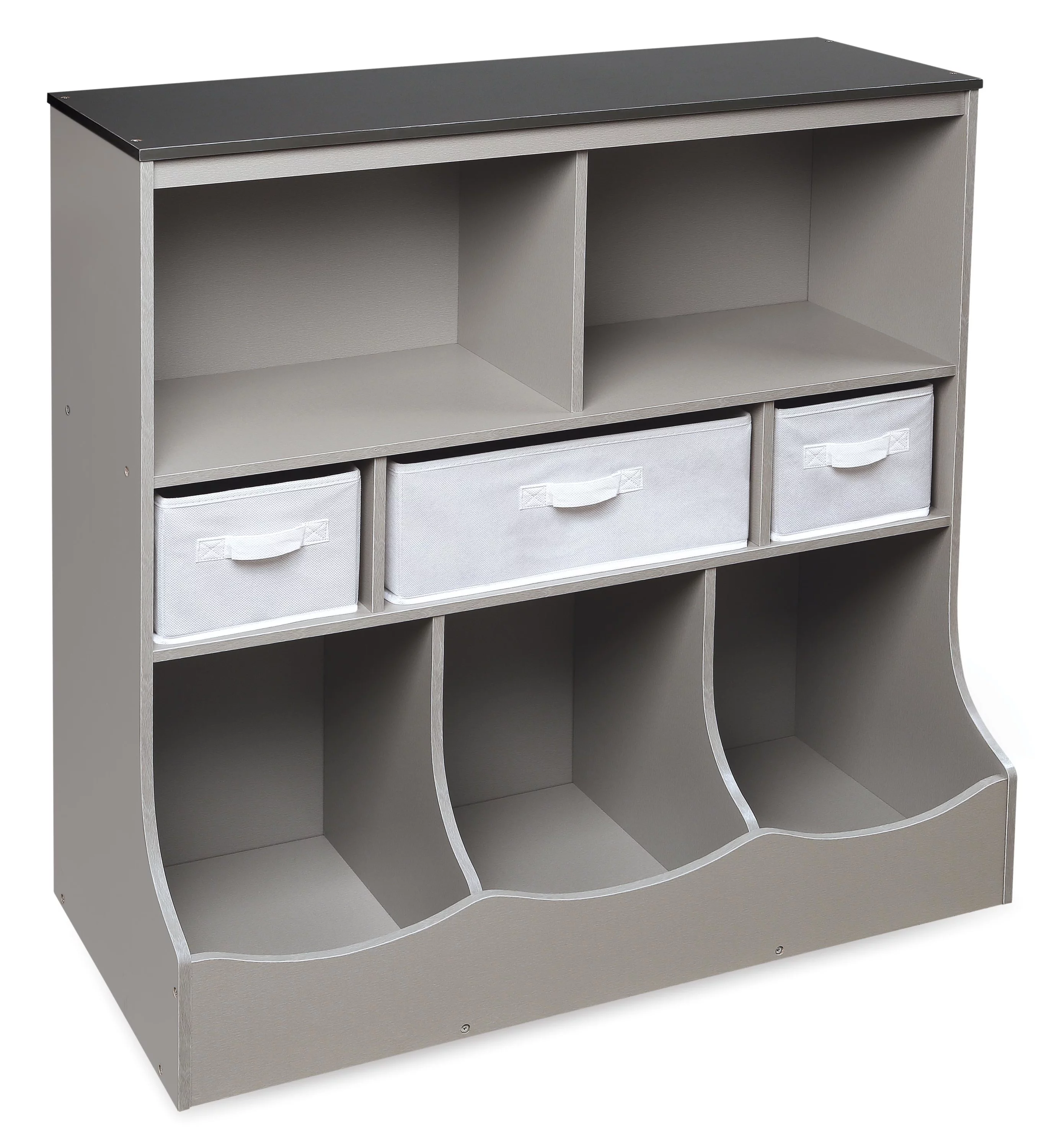 Badger Basket Combo Bin Wood Toy Storage Organizer with Three Baskets 8.6 Cu ft.- Gray