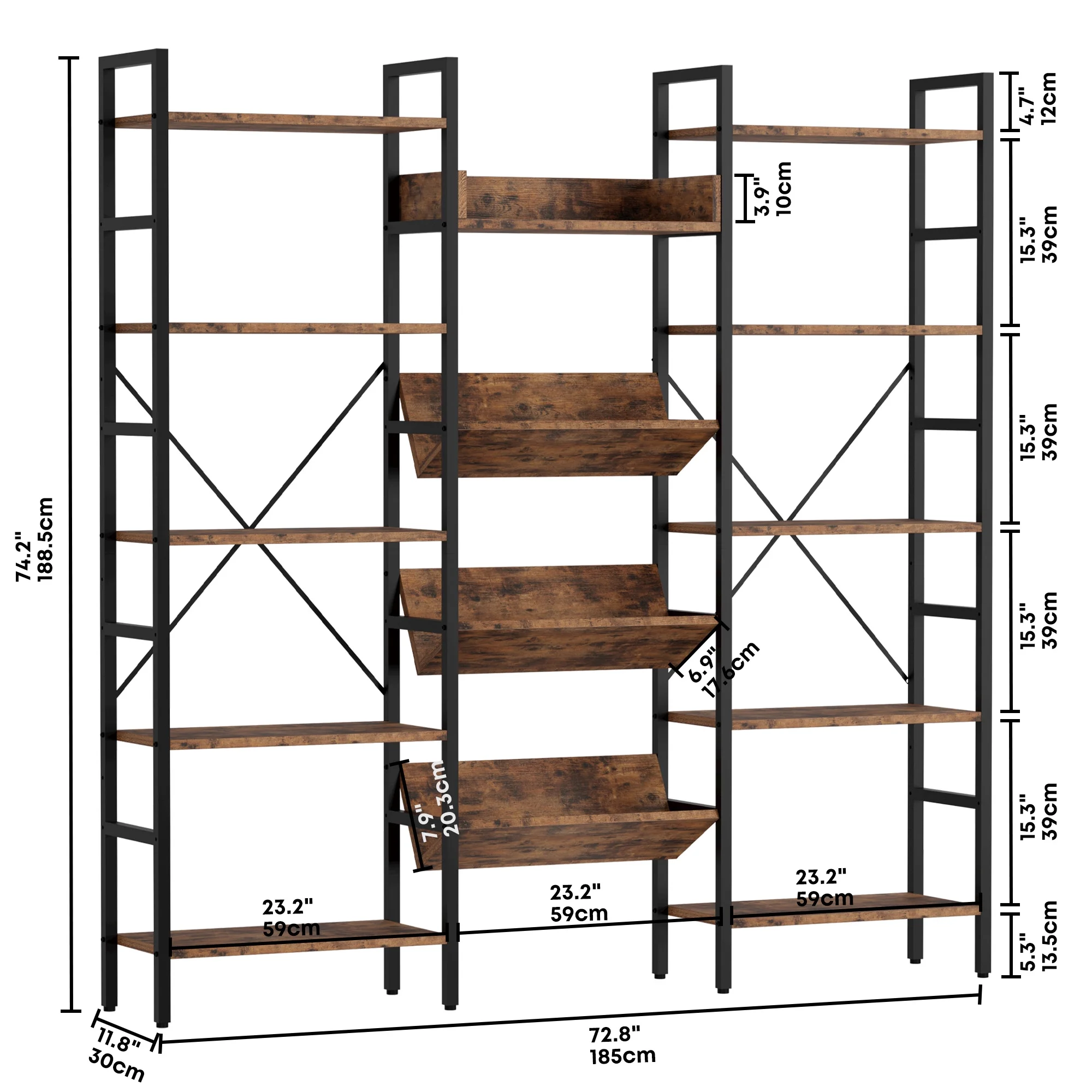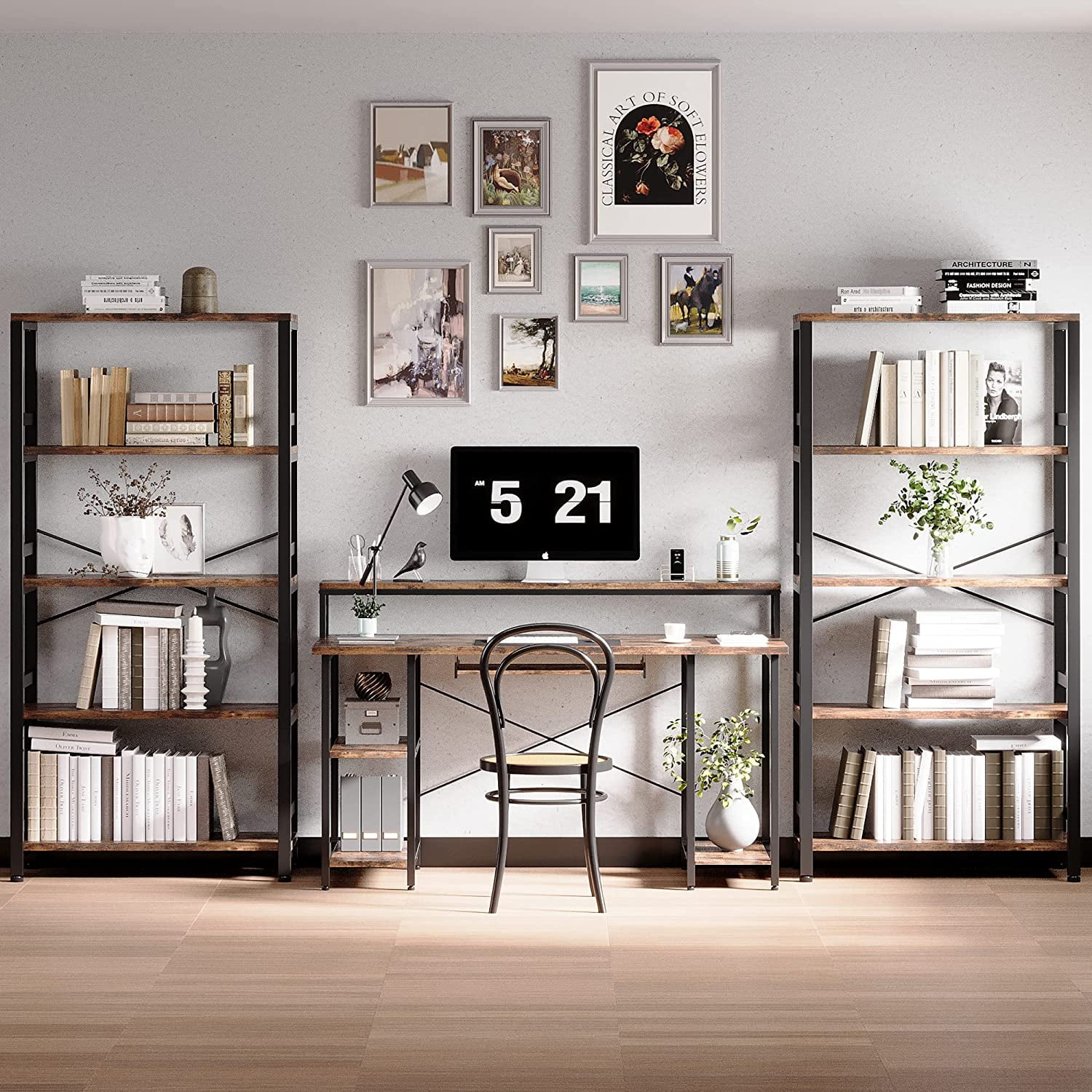 IRONCK 5 Tier Bookshelves and Bookcases, Industrial Shelf for Home Office Decor, Industrial Brown(Vintage Brown)