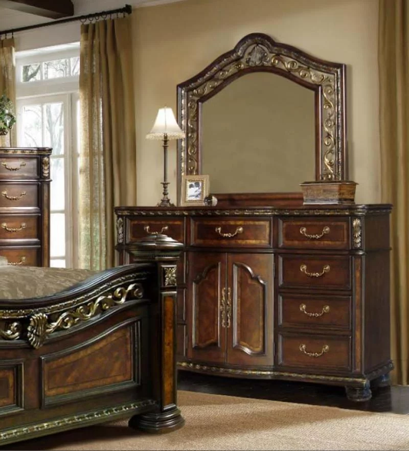McFerran B163-Q Antique Brass Cherry Wood Finish Queen Bedroom Set 5Pcs