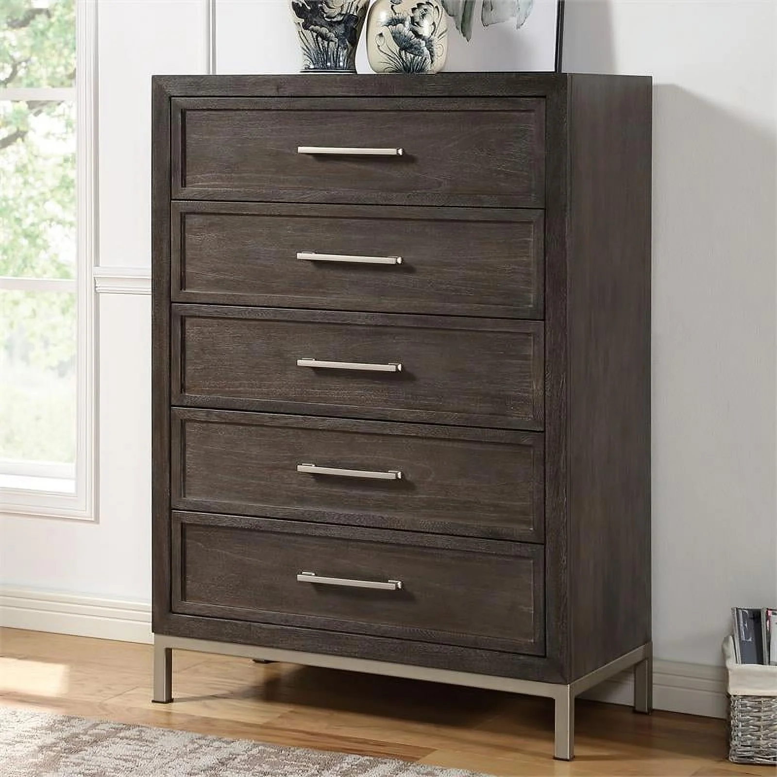 Sunset Trading Rustic City 5-Piece Contemporary Wood Queen Bedroom Set in Oak