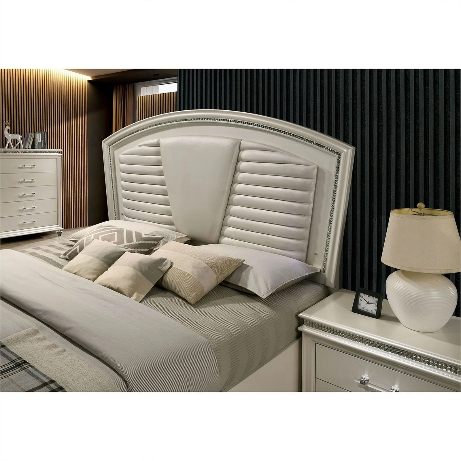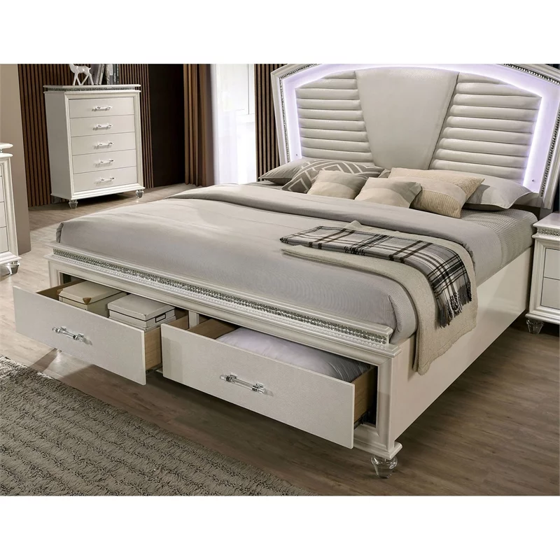 FOA Plumley 3-Piece White Wood Bedroom Set - Queen + 2 Nightstands