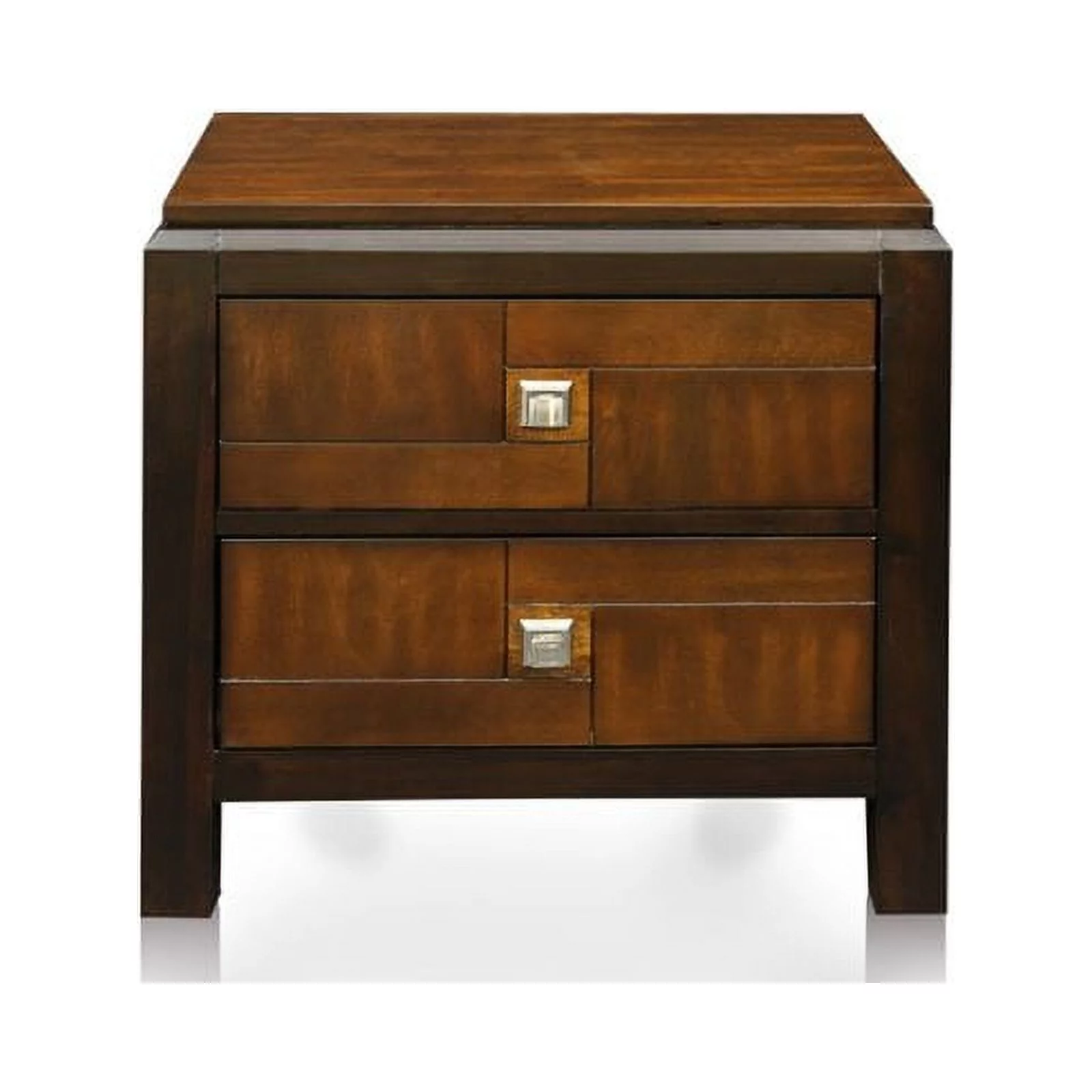 FOA Delia 2pc Walnut Transitional Wood Panel Bedroom Set - Queen + Nightstand