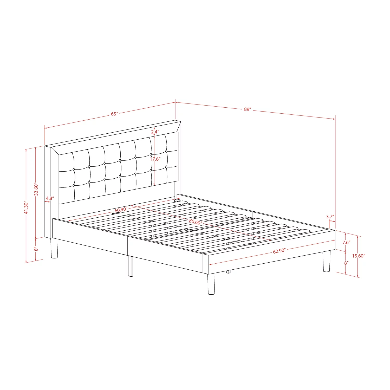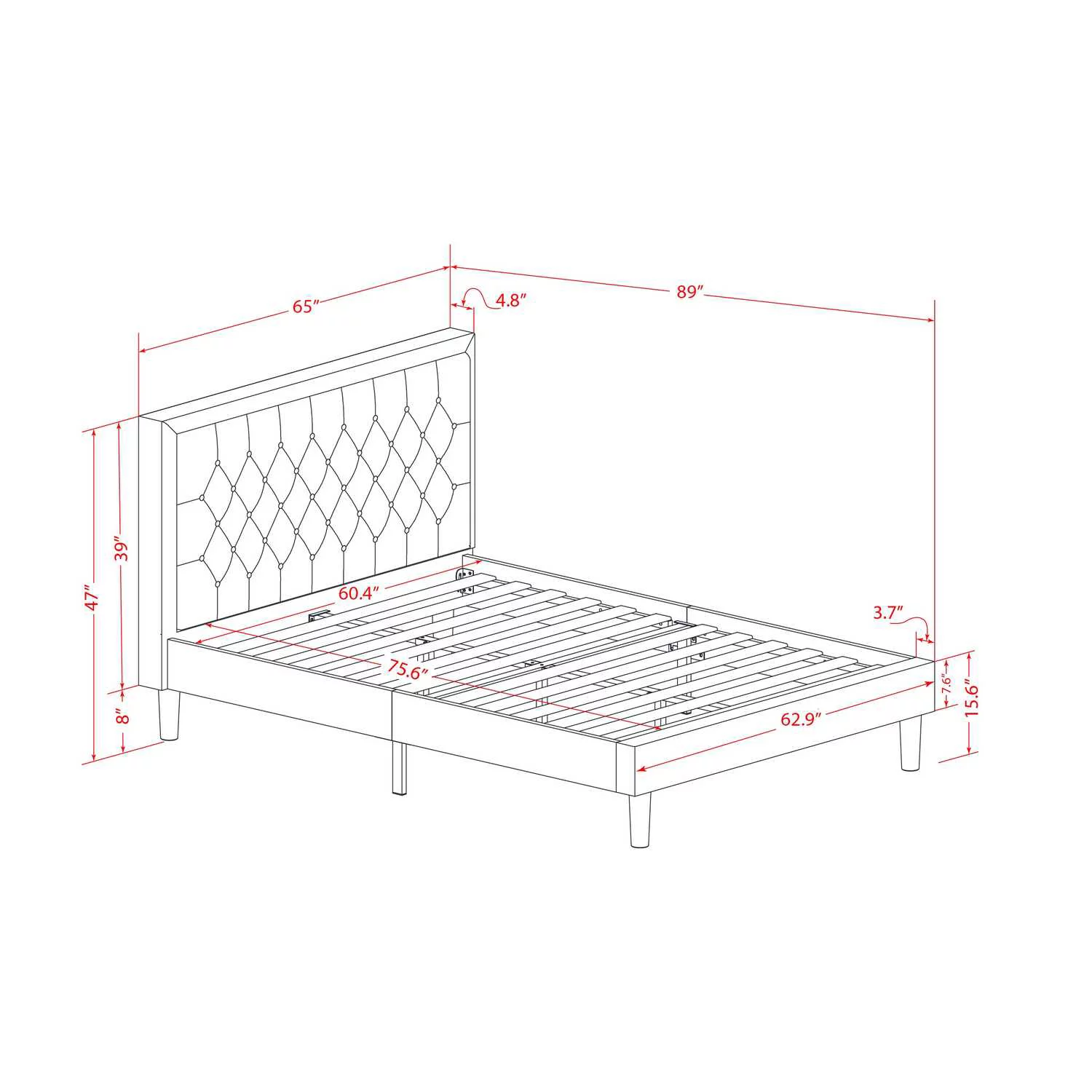 HBBOOMLIFE Annabel Tufted Button Faux Leather Upholstered Full Headboard in White