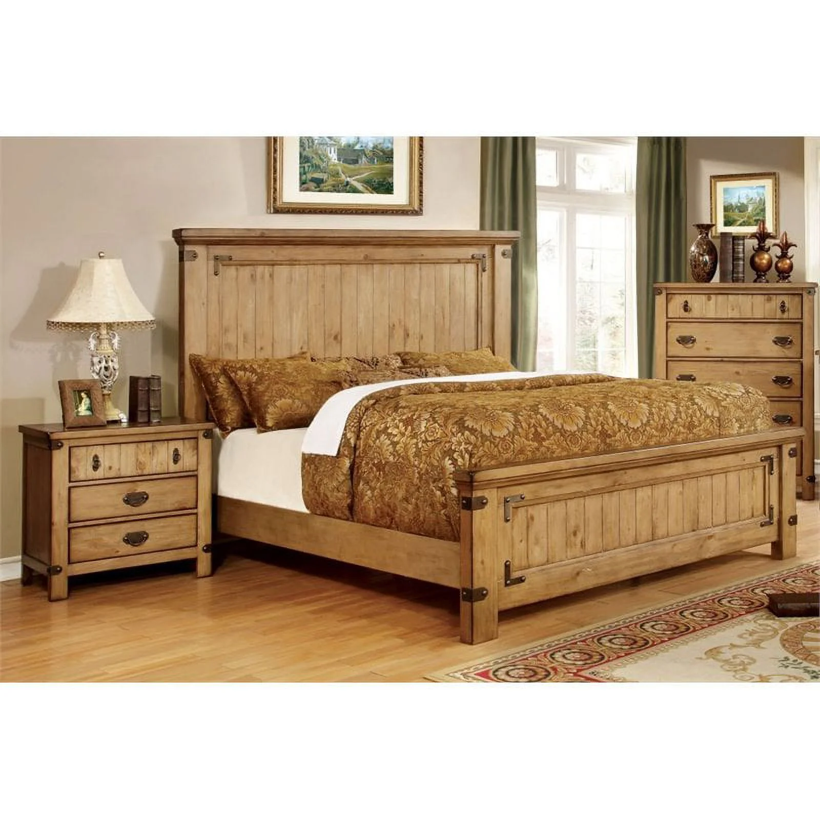 FOA Sesco 2pc Weathered Brown Elm Wood Bedroom Set - Queen + Nightstand