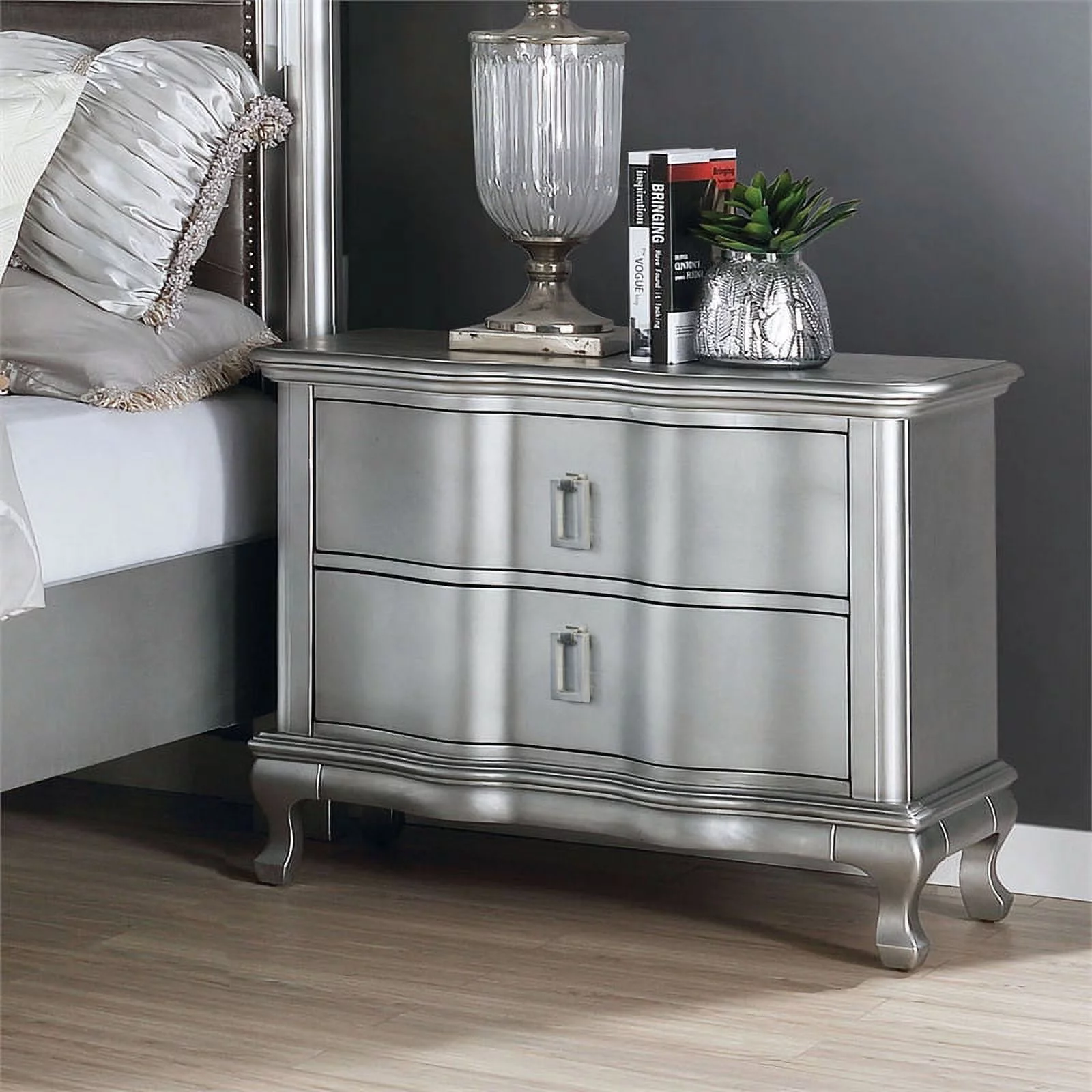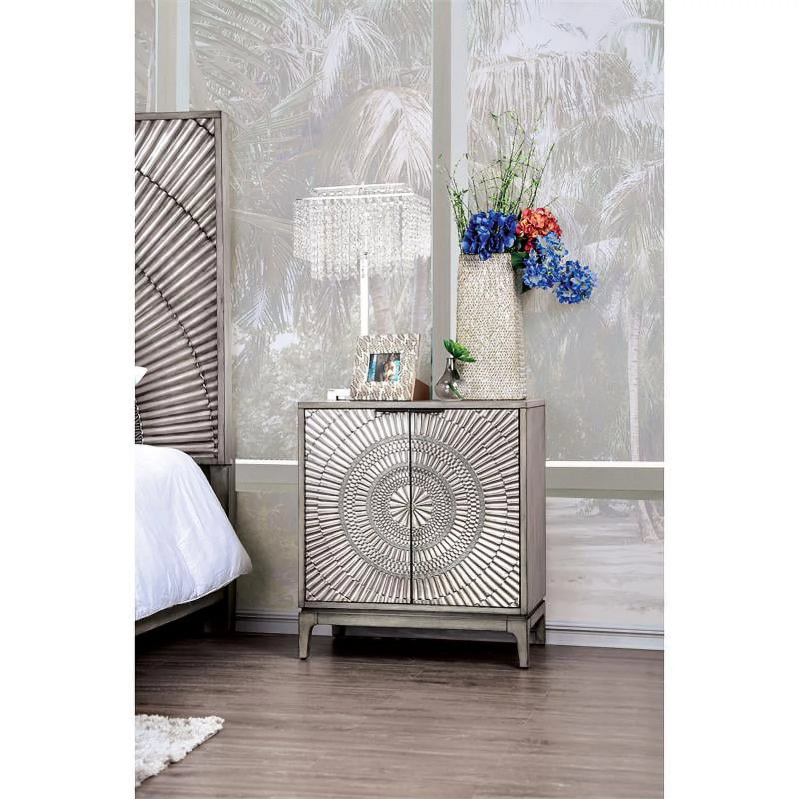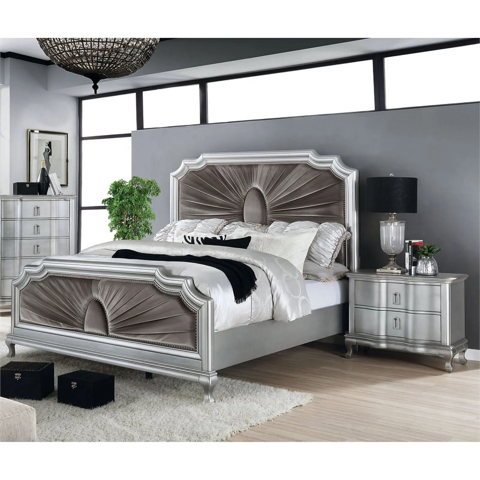 FOA Pappa Glam 3-Piece Silver Wood Bedroom Set - Queen + 2 Nightstands