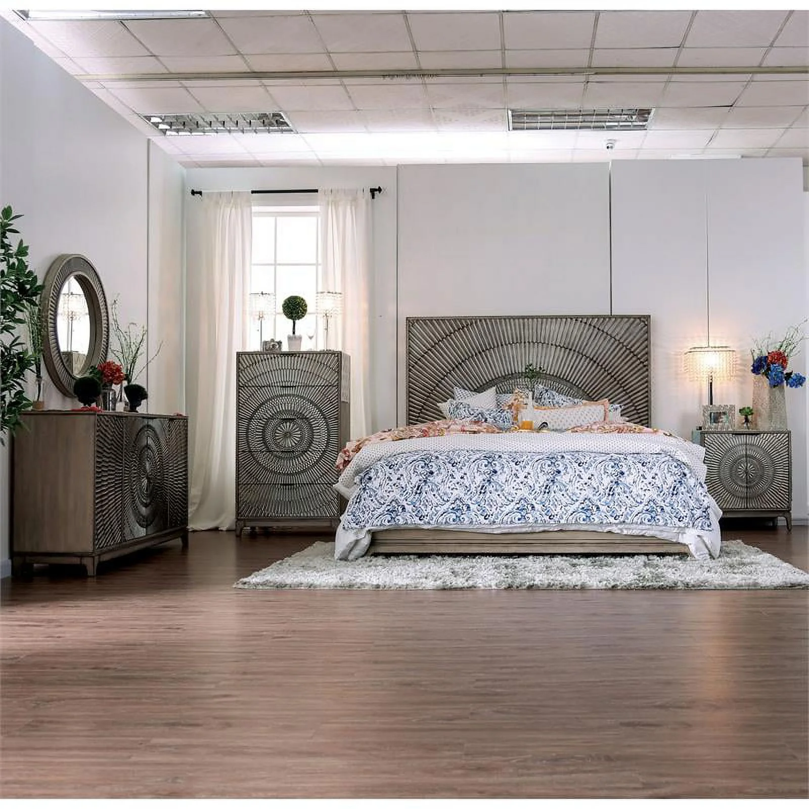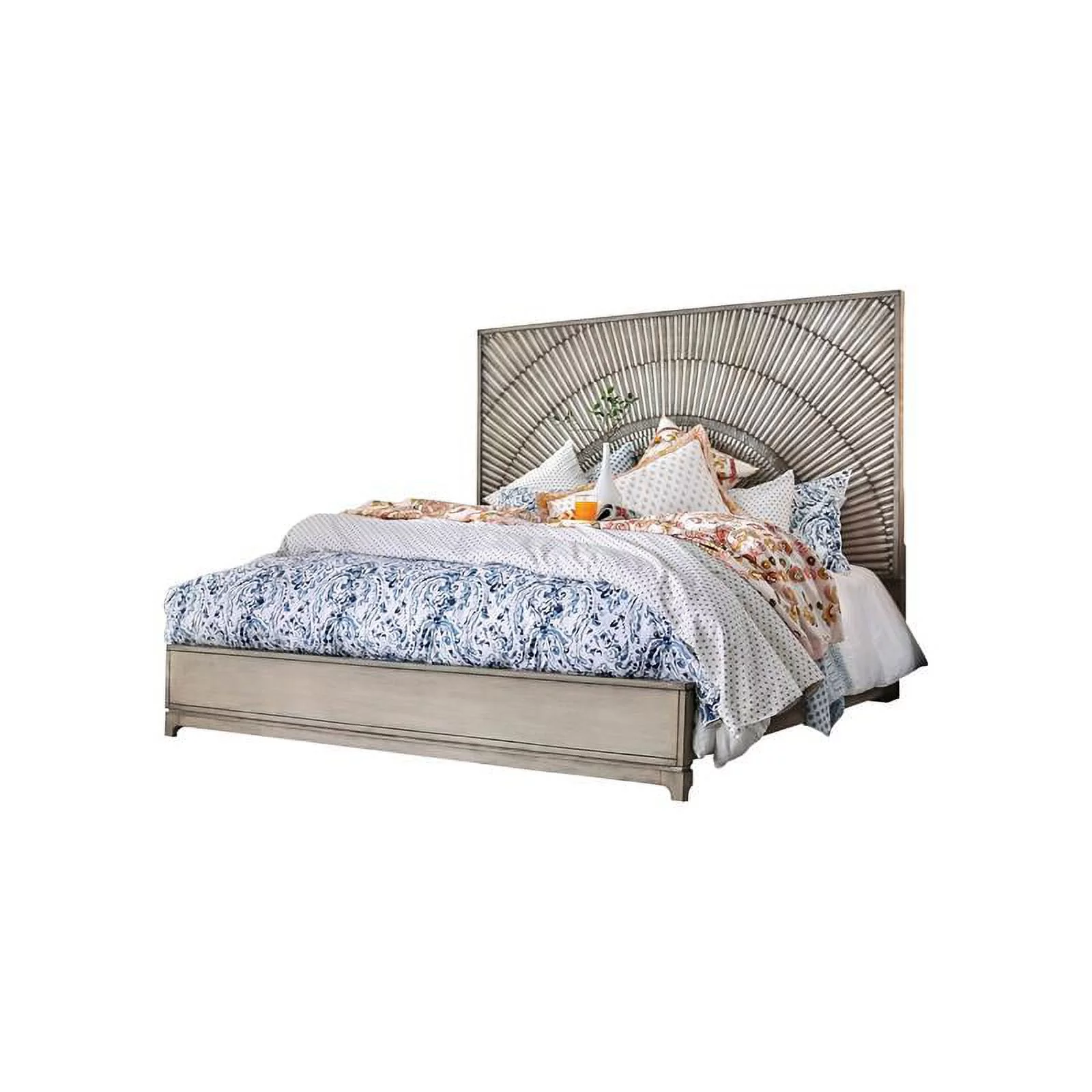 FOA Drummond 2-Piece Gray Wood Panel Bedroom Set - Queen + 1 Nightstand