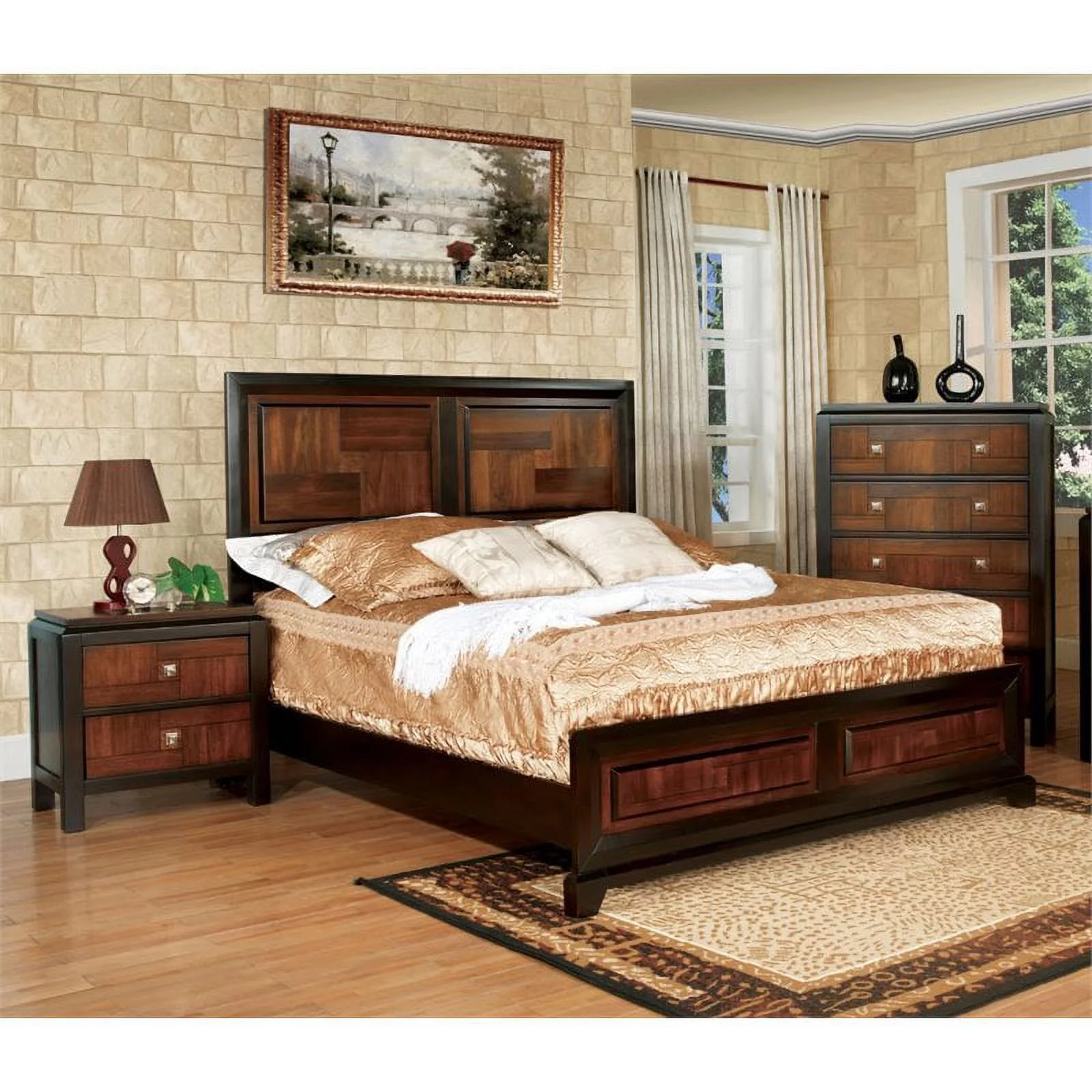 East West Furniture Granbury 3-Piece Wood Queen Bedroom Set in Brown/Jacobean