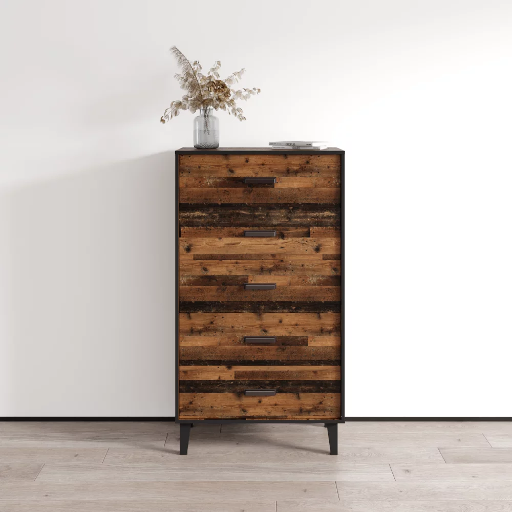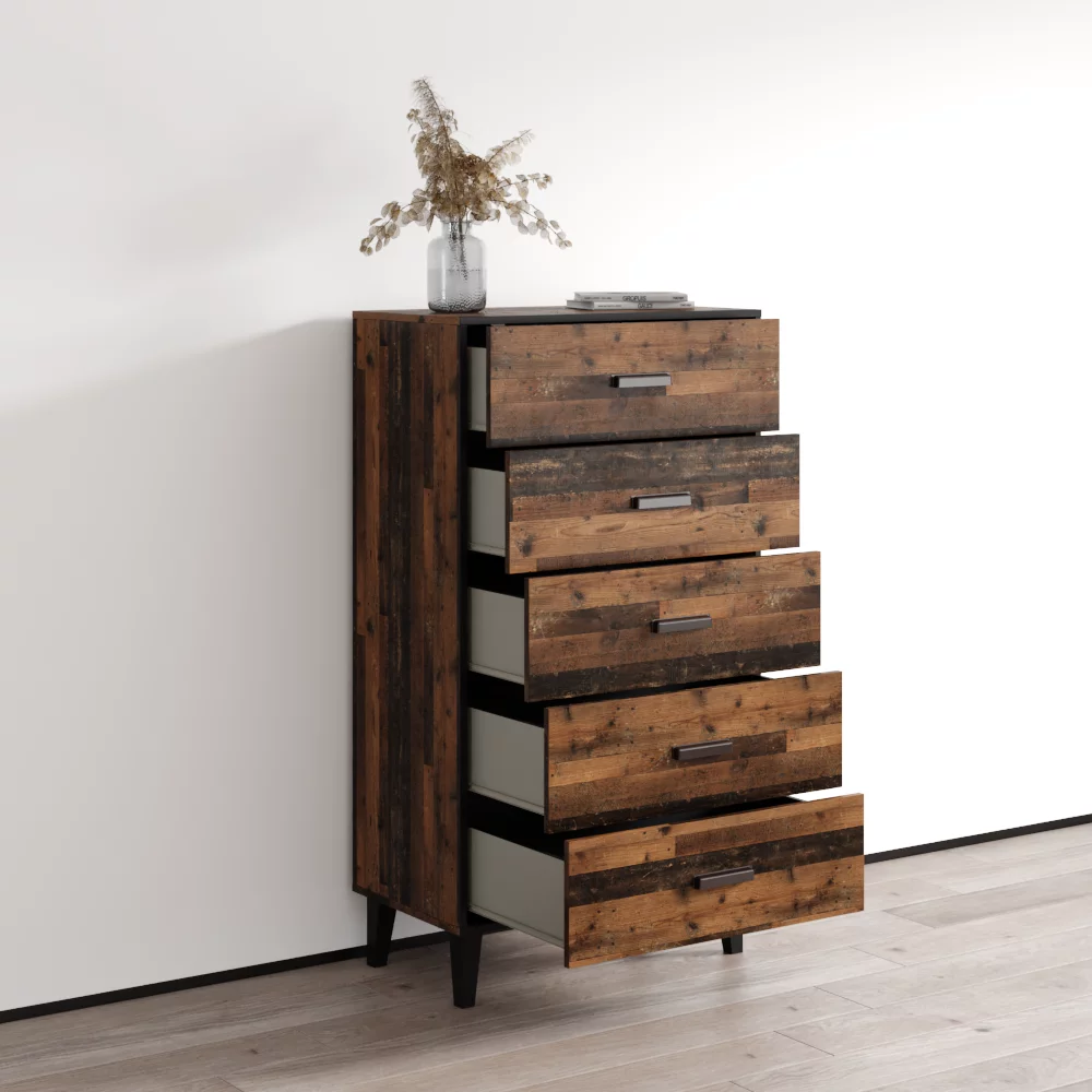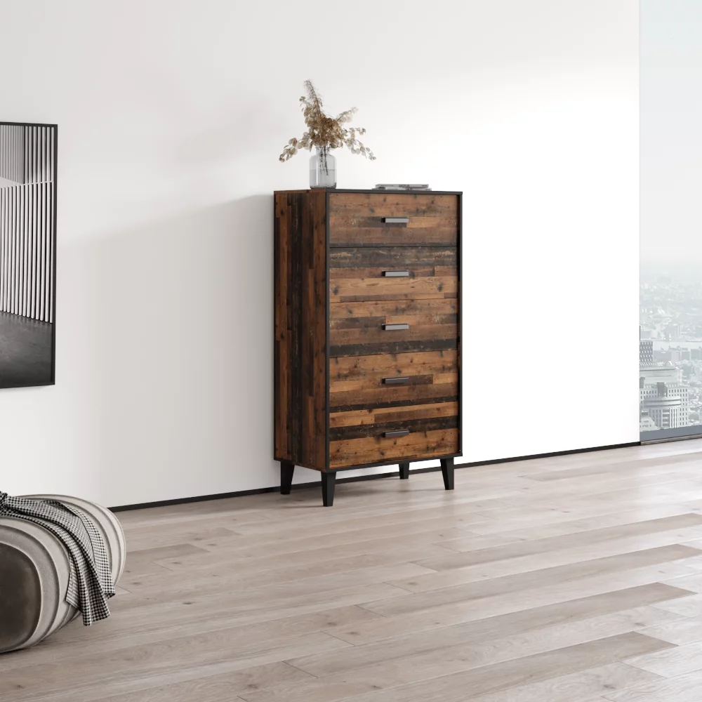 NLIBOOMLife Versa Collection 5-Drawer Dresser Winter Oak with Antique Handles