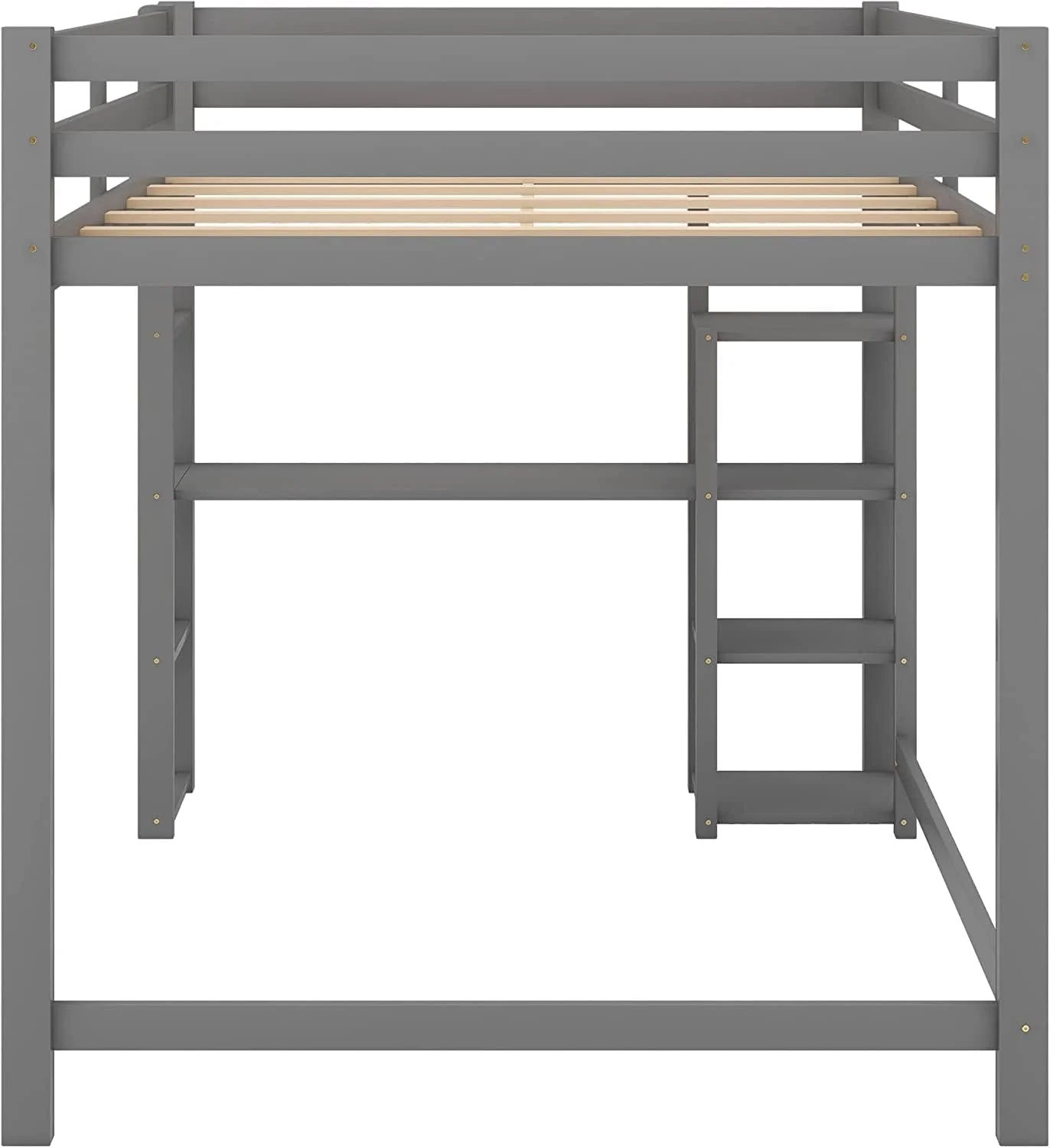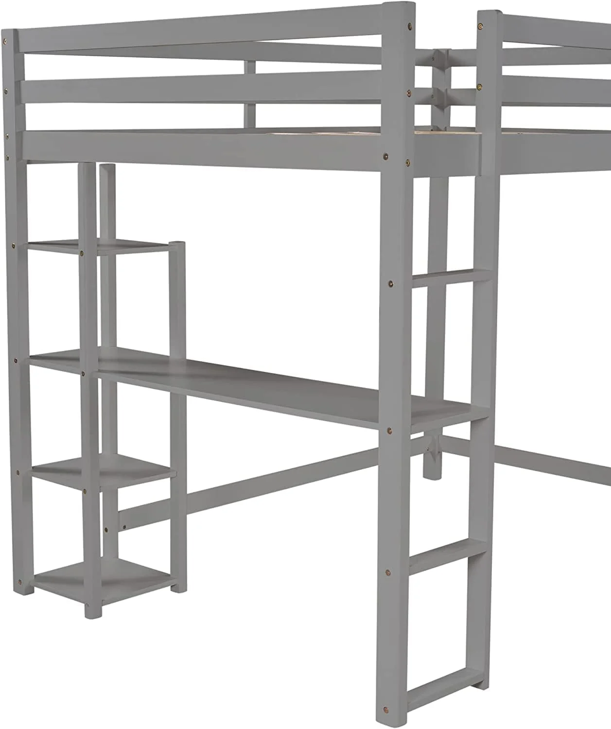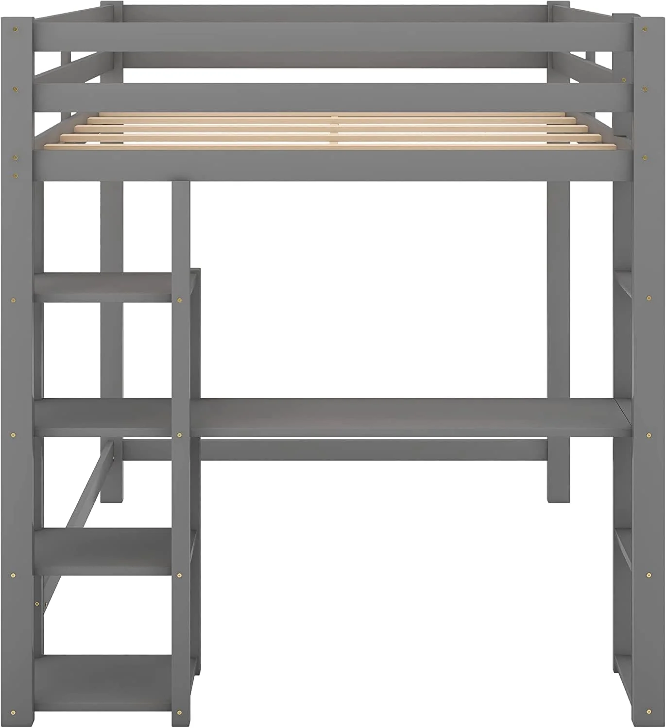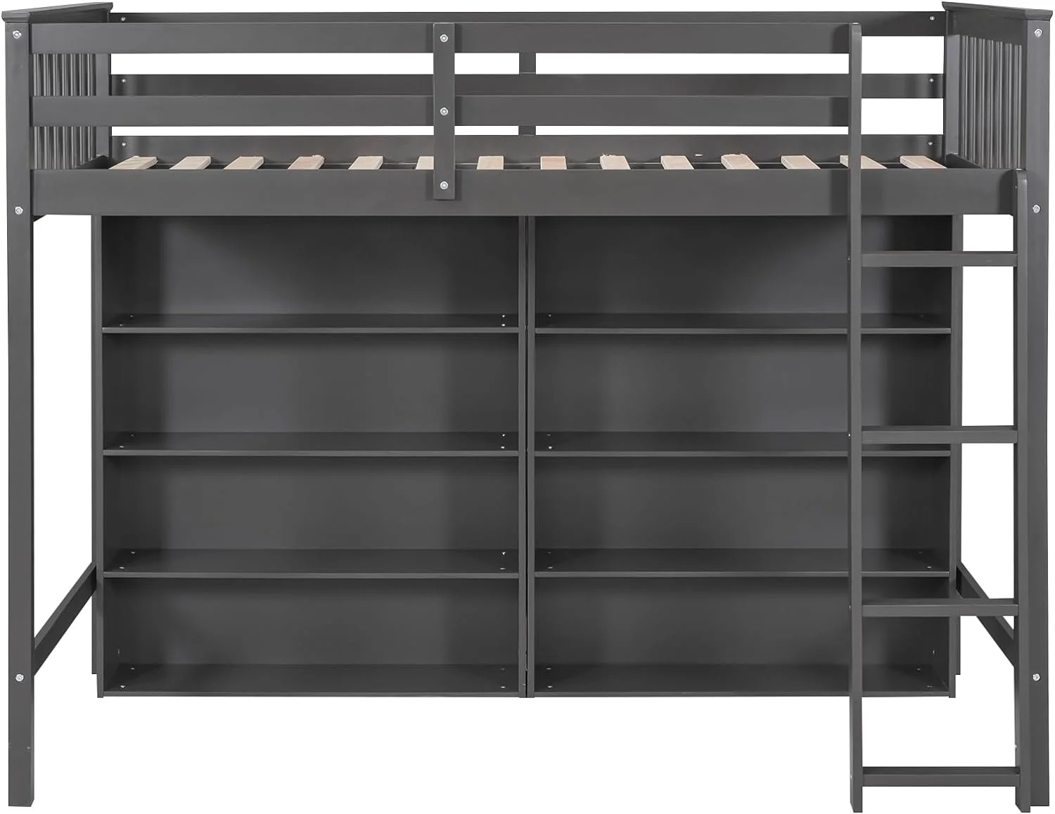 Lof Bed Wih Sorage Shelves, Size Lof Beds Frame Wih Bookcase, Wood High Lof Bed Wih Ladder For Kids Boys Girls ees, Gray