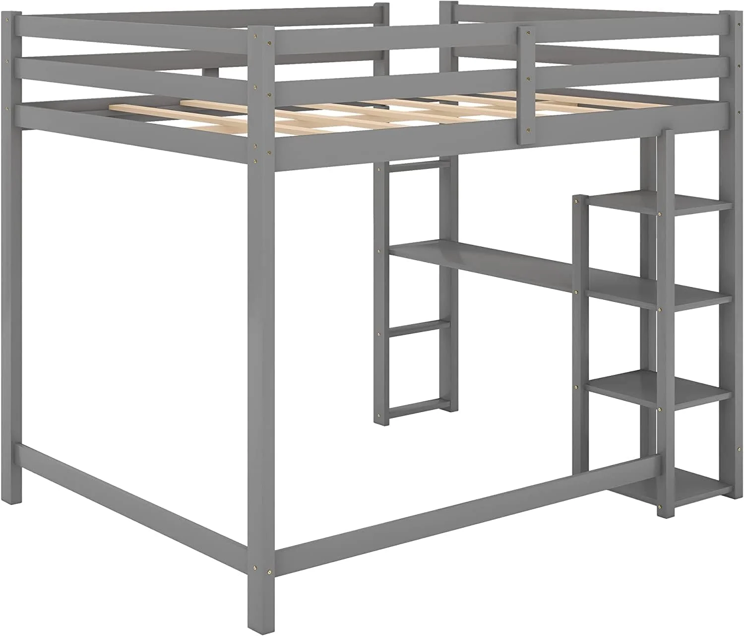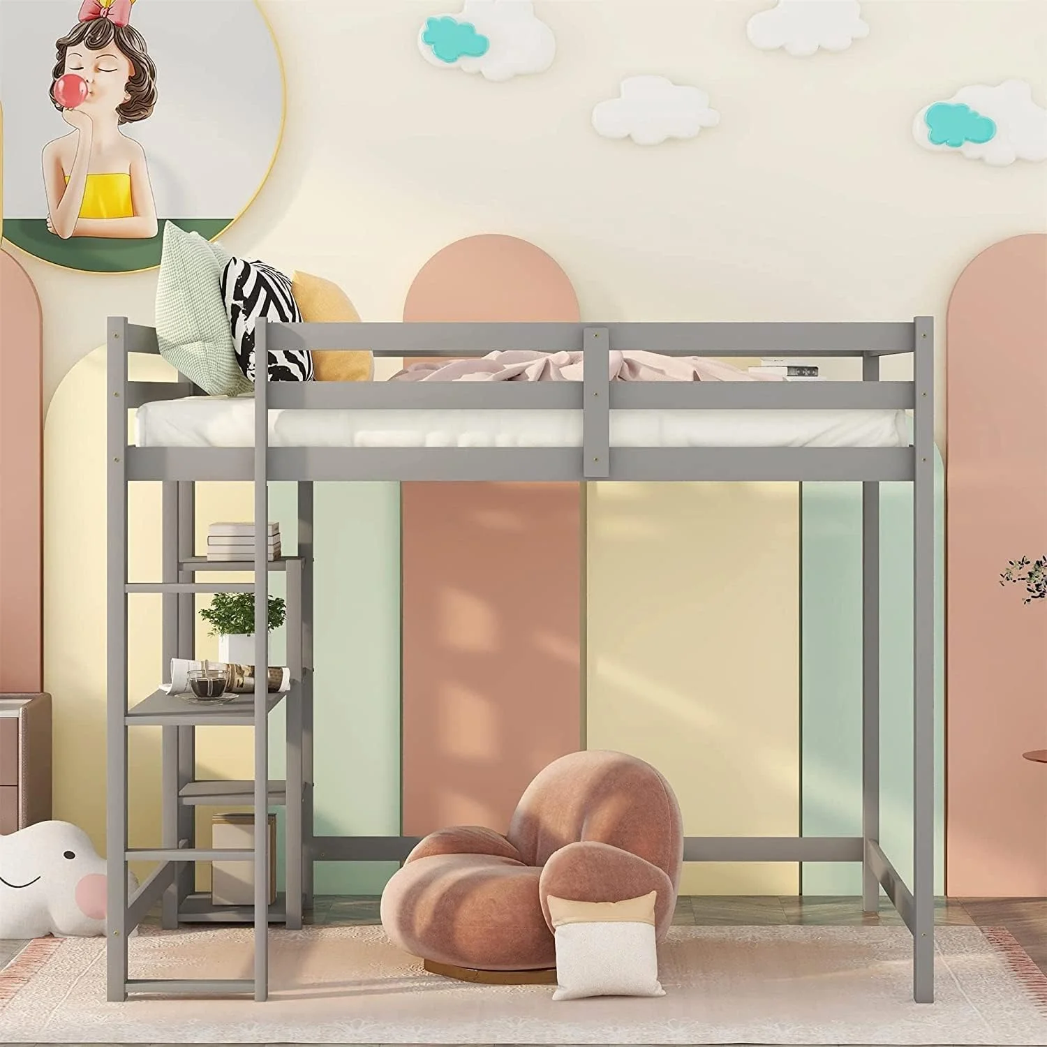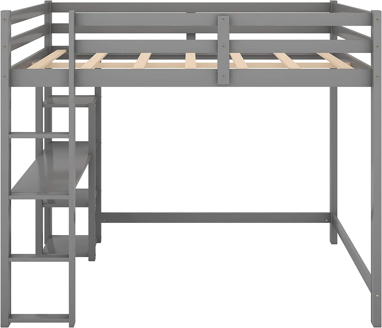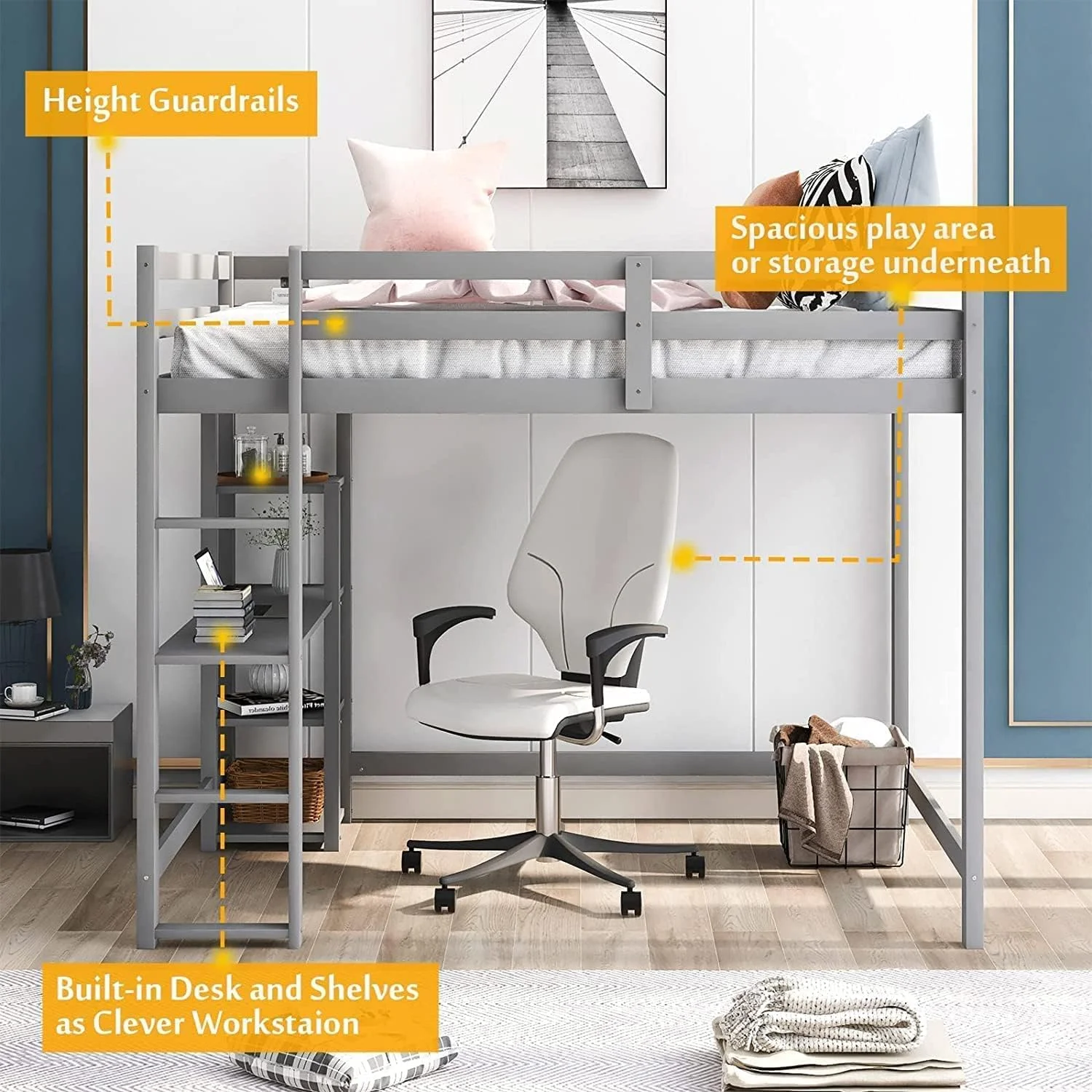 Lof Bed Wih Sorage Shelves, Size Lof Beds Frame Wih Bookcase, Wood High Lof Bed Wih Ladder For Kids Boys Girls ees, Gray
