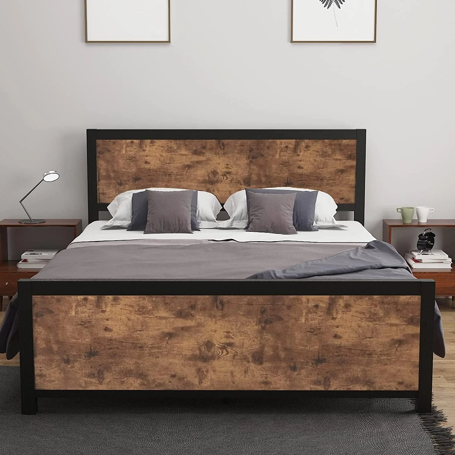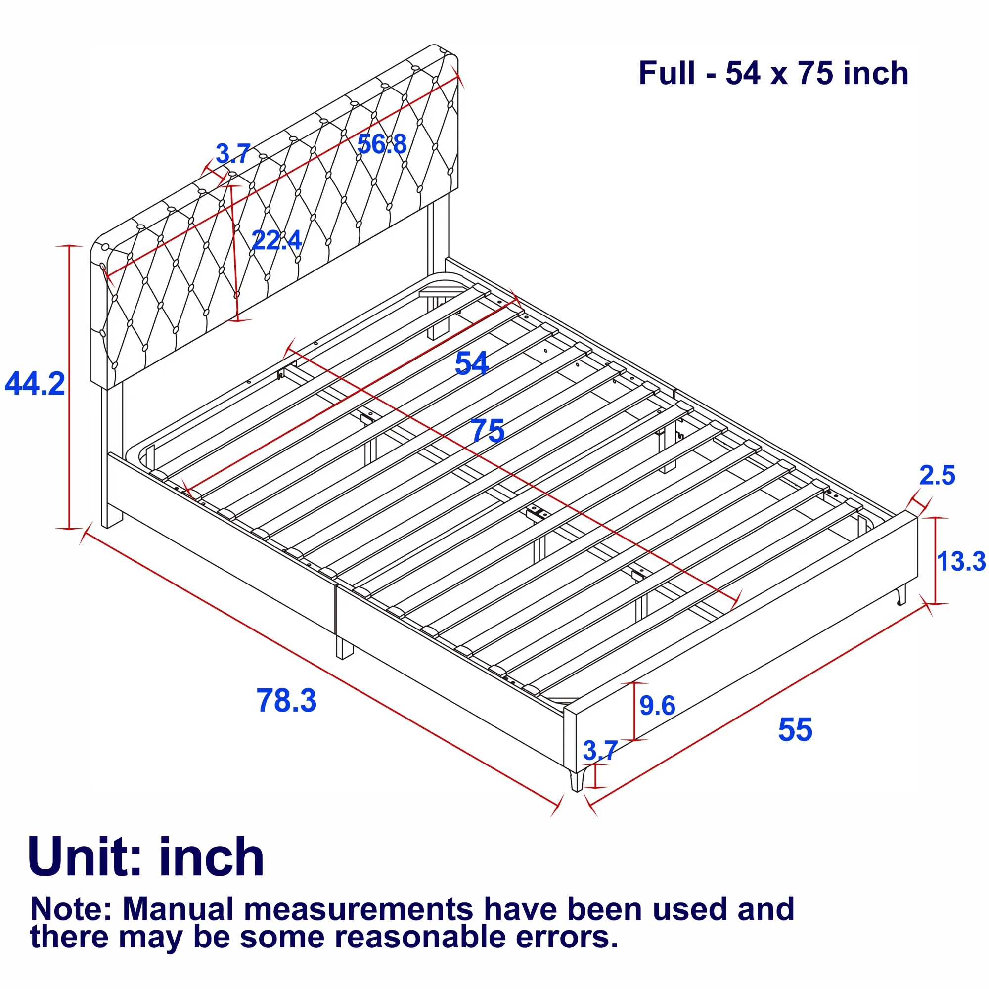 Kodiak Furniture Monterey Full Frame with Linen Fabric Mattress in Espresso/Blue
