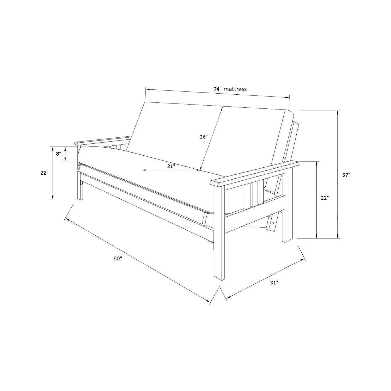 Homestock Earthy Elegance Futon Frame-Butternut Finish-Linen Charcoal Full Size Mattress