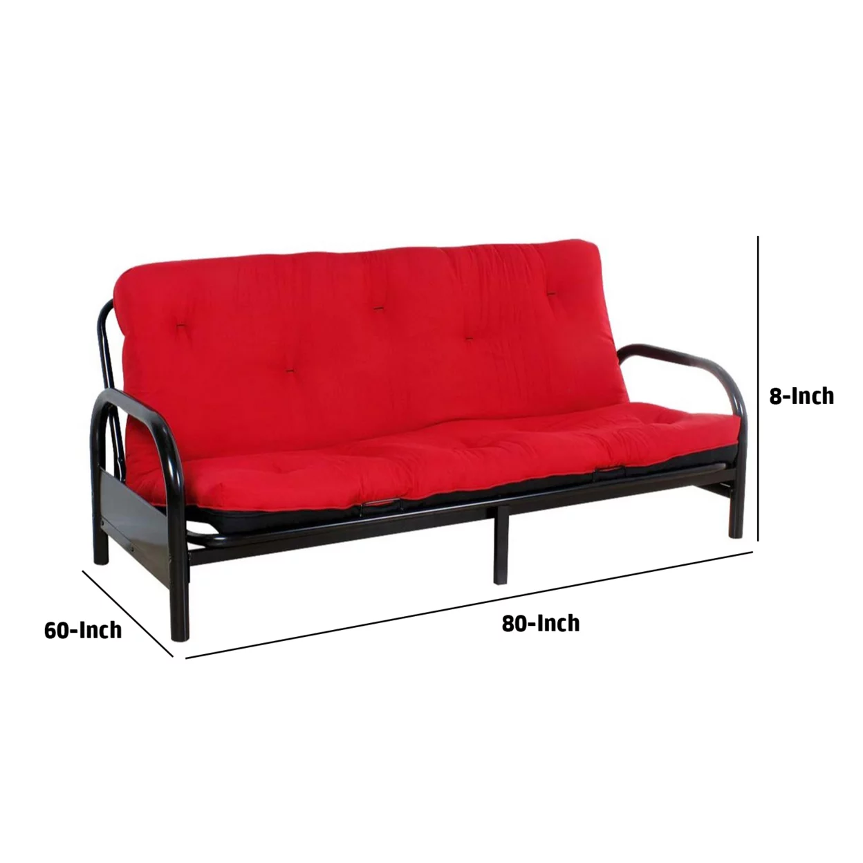 Nab Full Size Futon Sofa, Tufted, Poplin Fabric Mattress, Red- Saltoro Sherpi