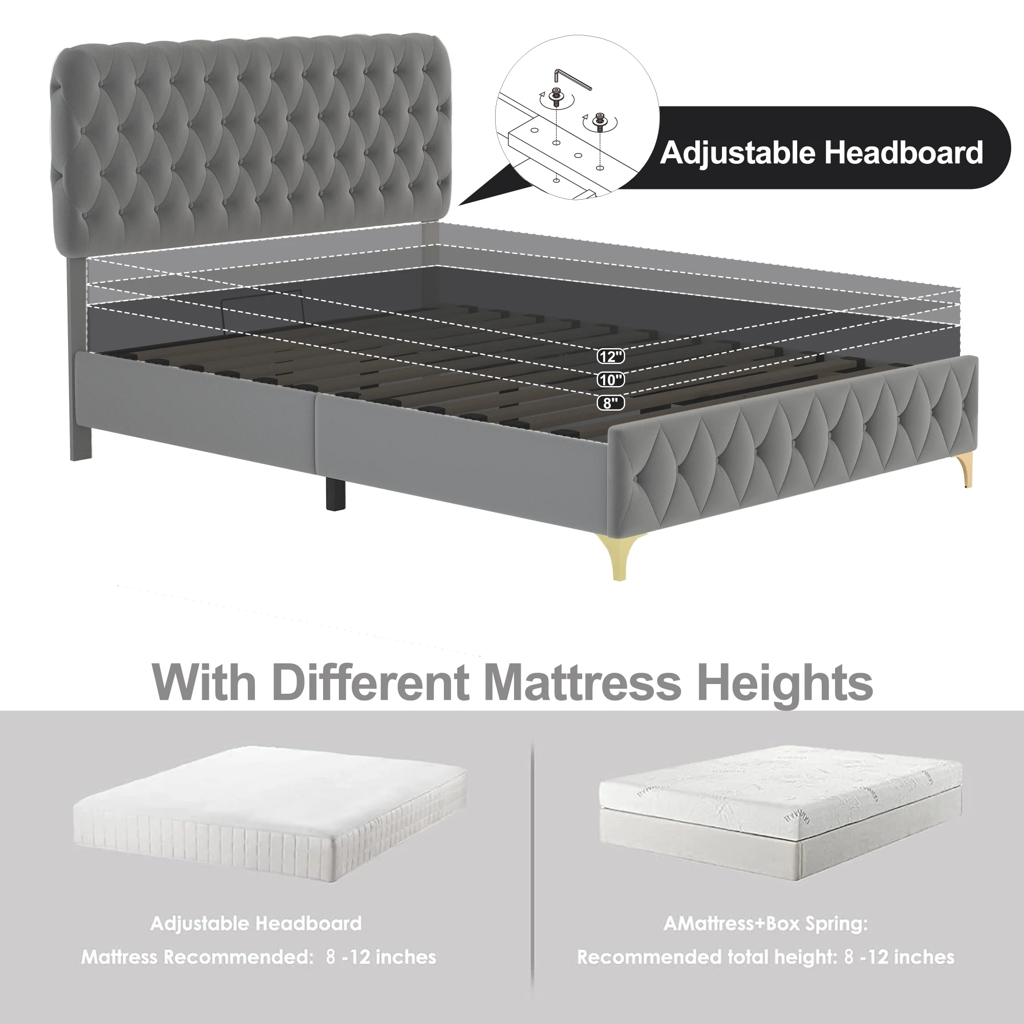 BSD National Supplies Marlin Traditional Charcoal Fabric Button Tufted Full Size Walnut Wooden Headboard
