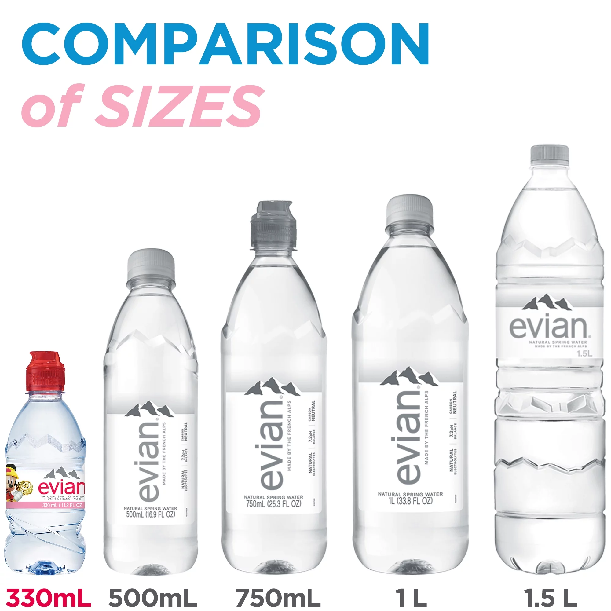 evian Natural Spring Water Bottles, Naturally Filtered Spring Water, 330 ML (11.15 fl oz) bottles, 12 pack