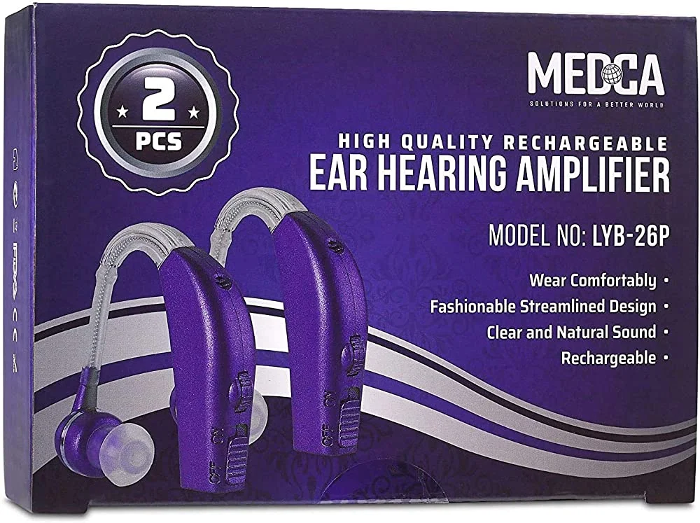MEDca Digital Hearing Rechargeable Amplifier Single Ear Set - Pair, Purple Color
