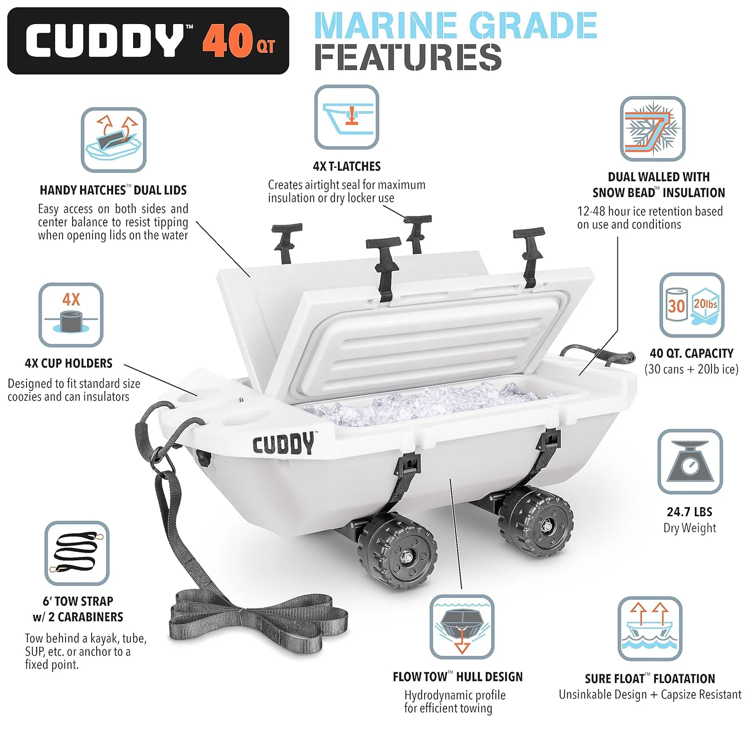 CUDDY Crawler Cooler with Wheels – 40 QT Amphibious Floating Cooler and Dry Storage Vessel - White