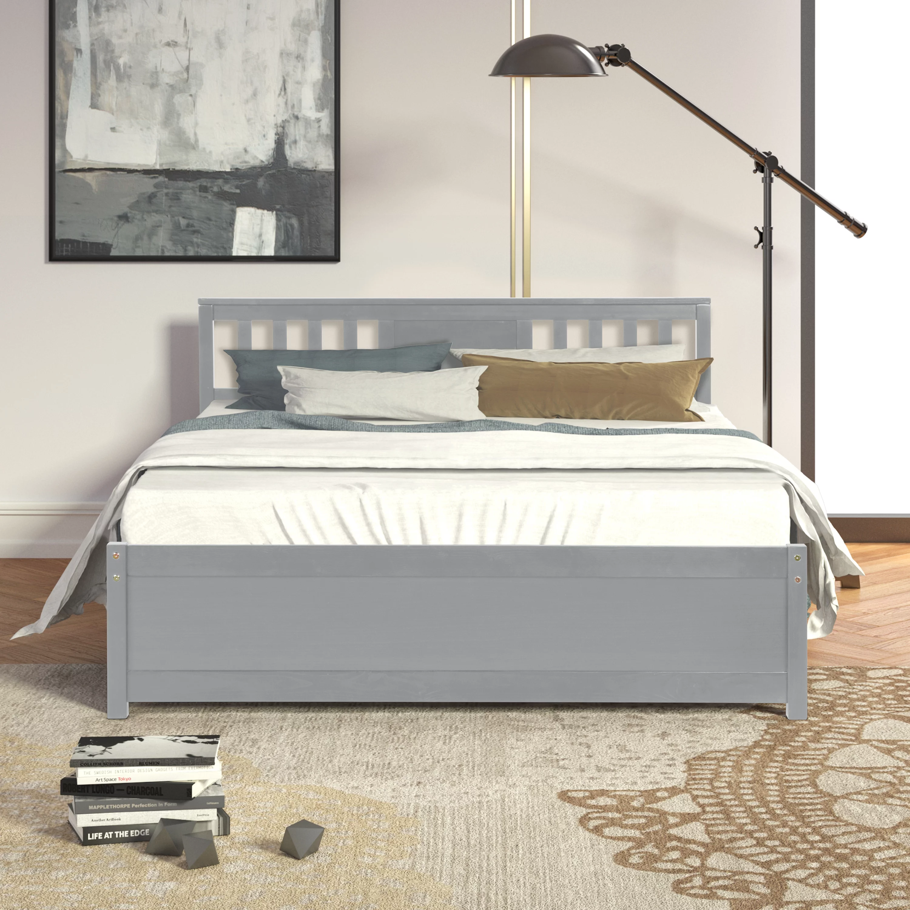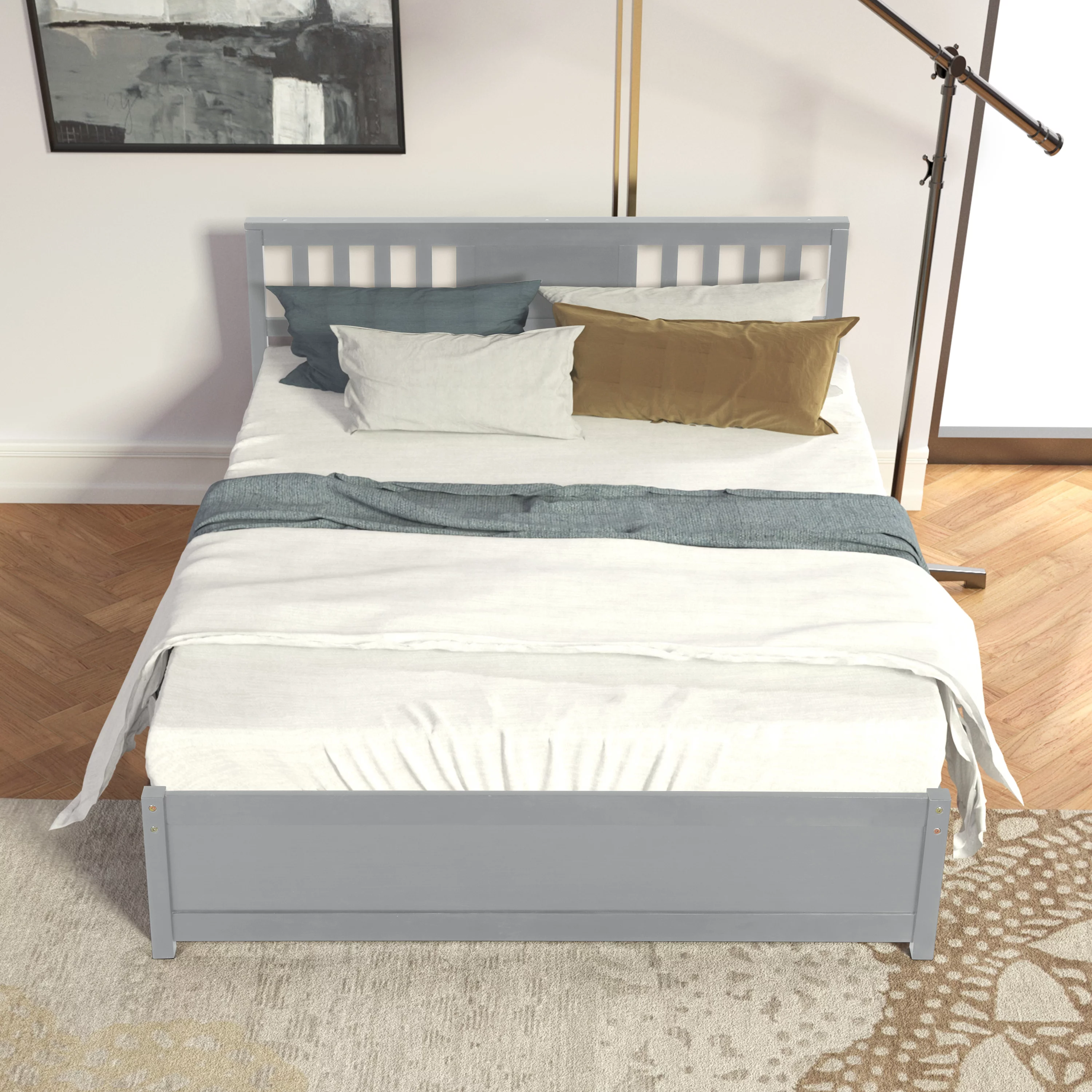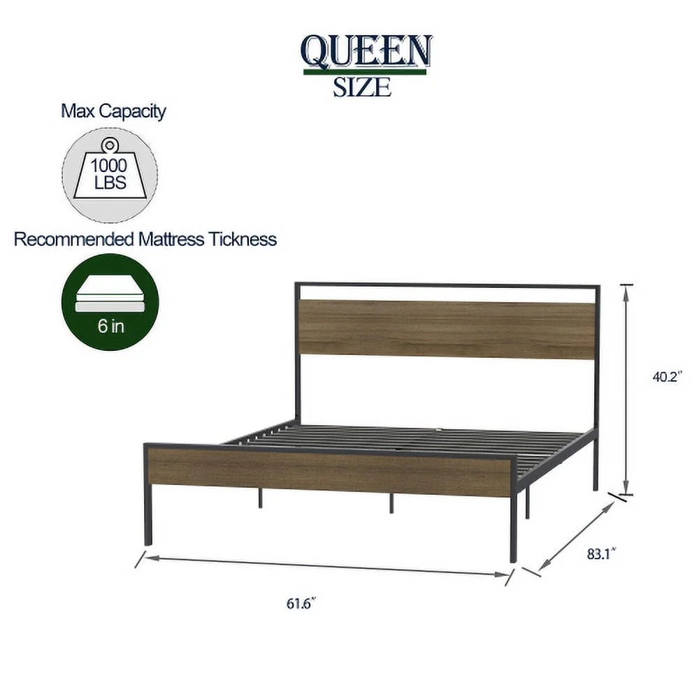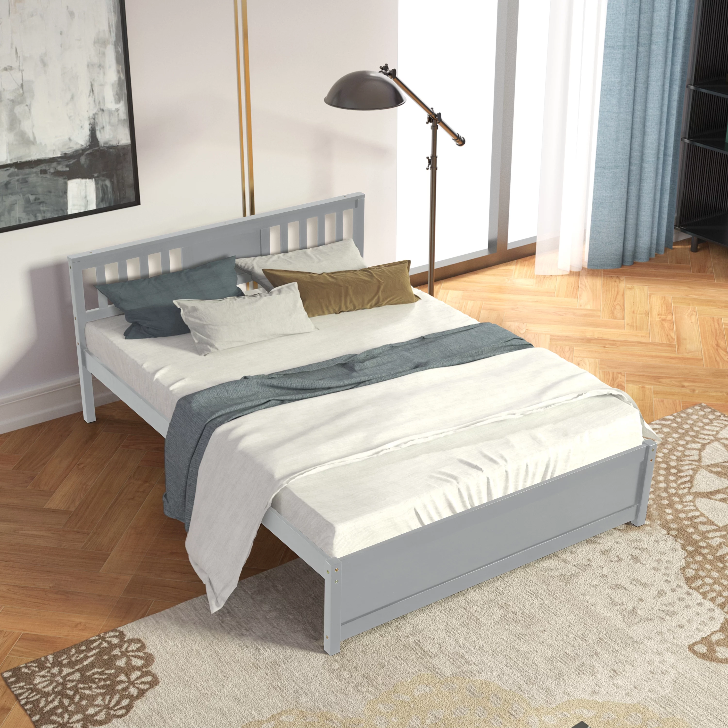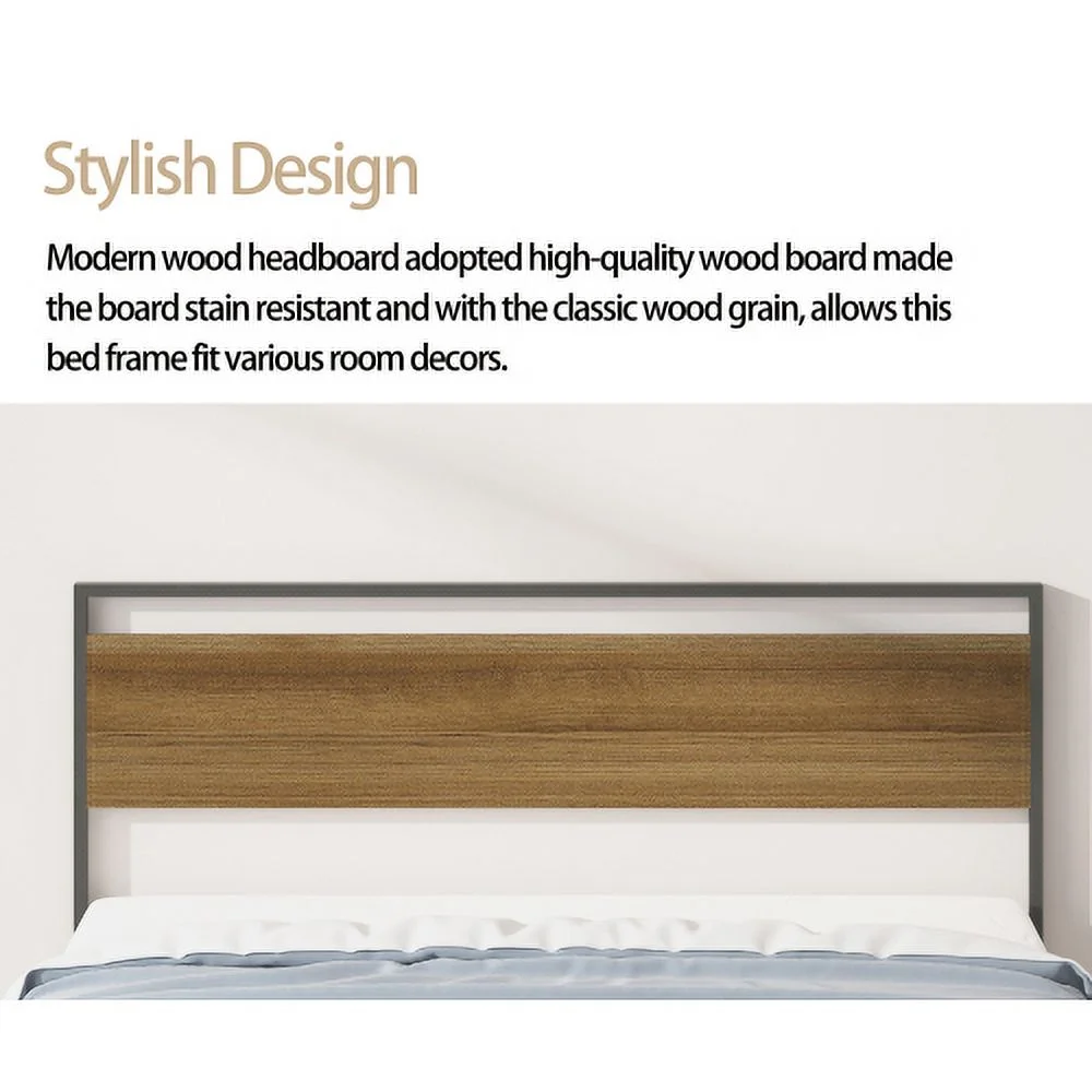 Modern design Wood Platform Queen Bed Frame with Headboard for Gray color