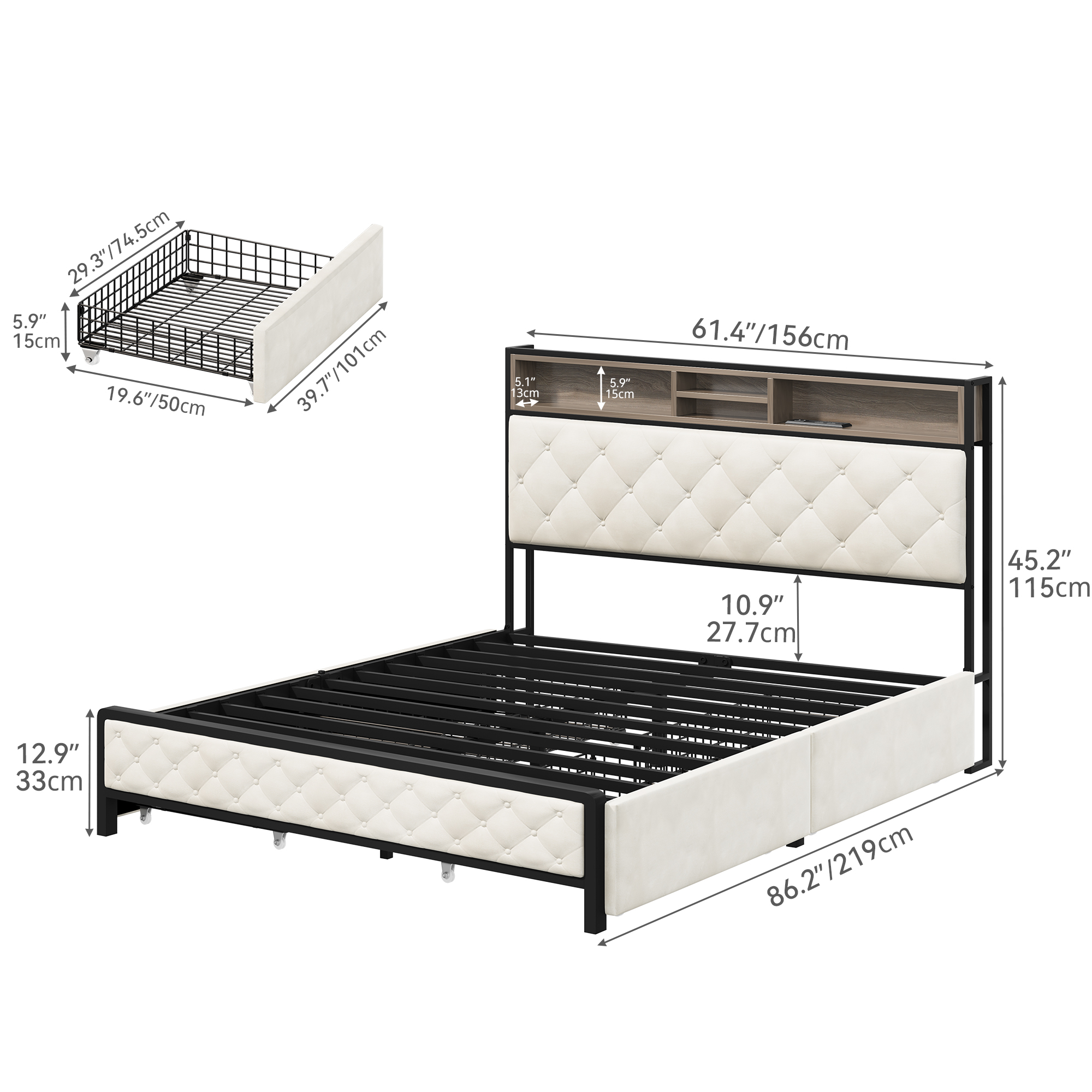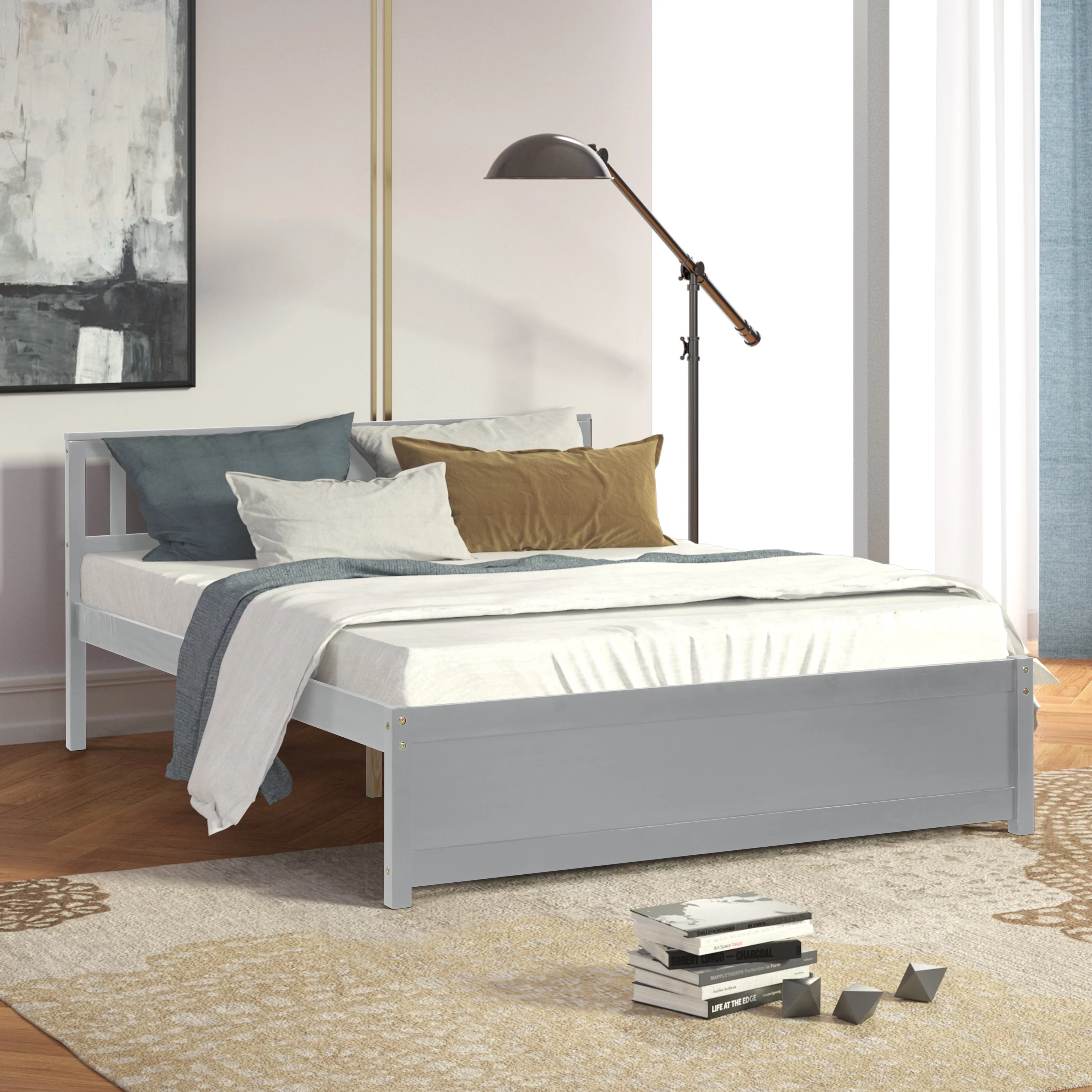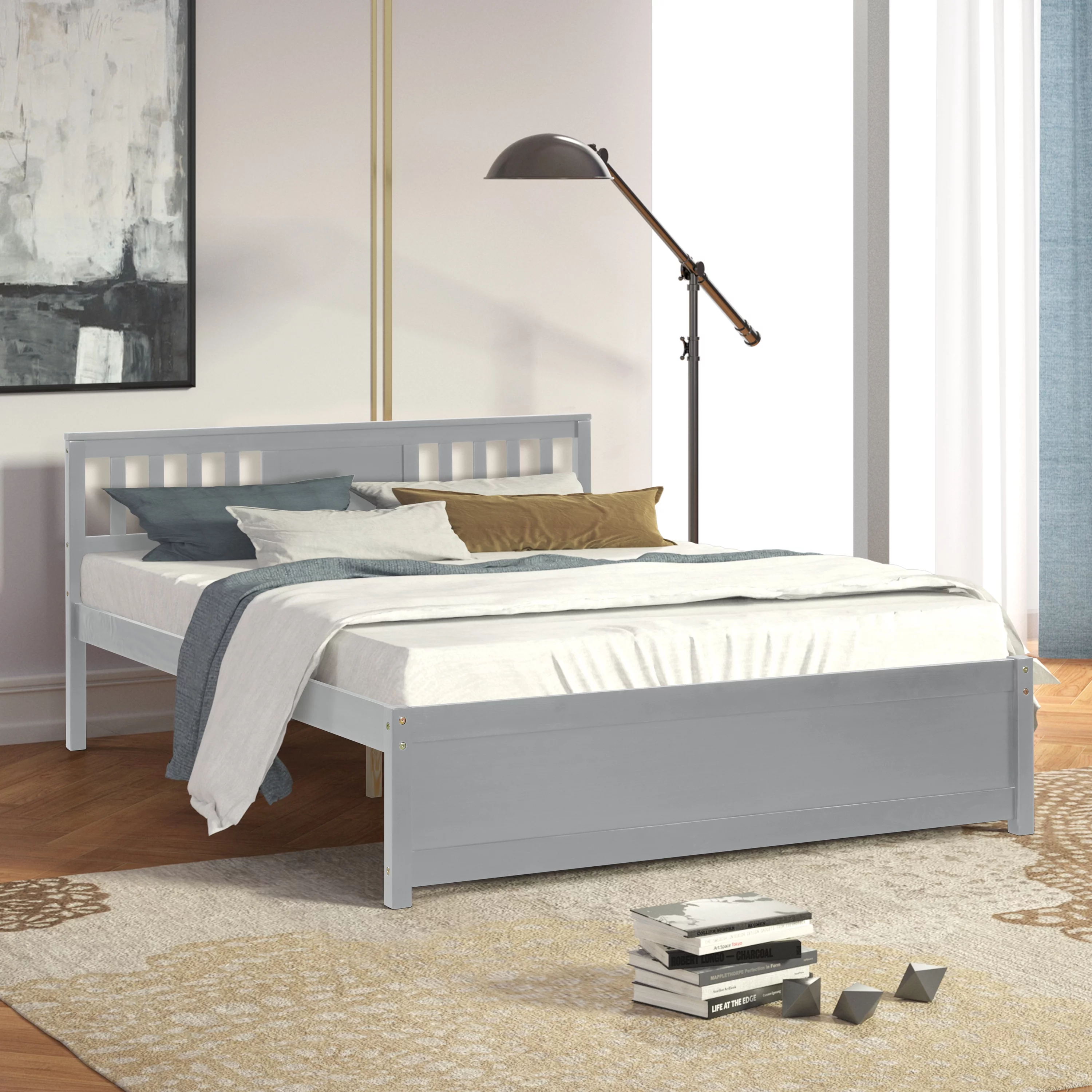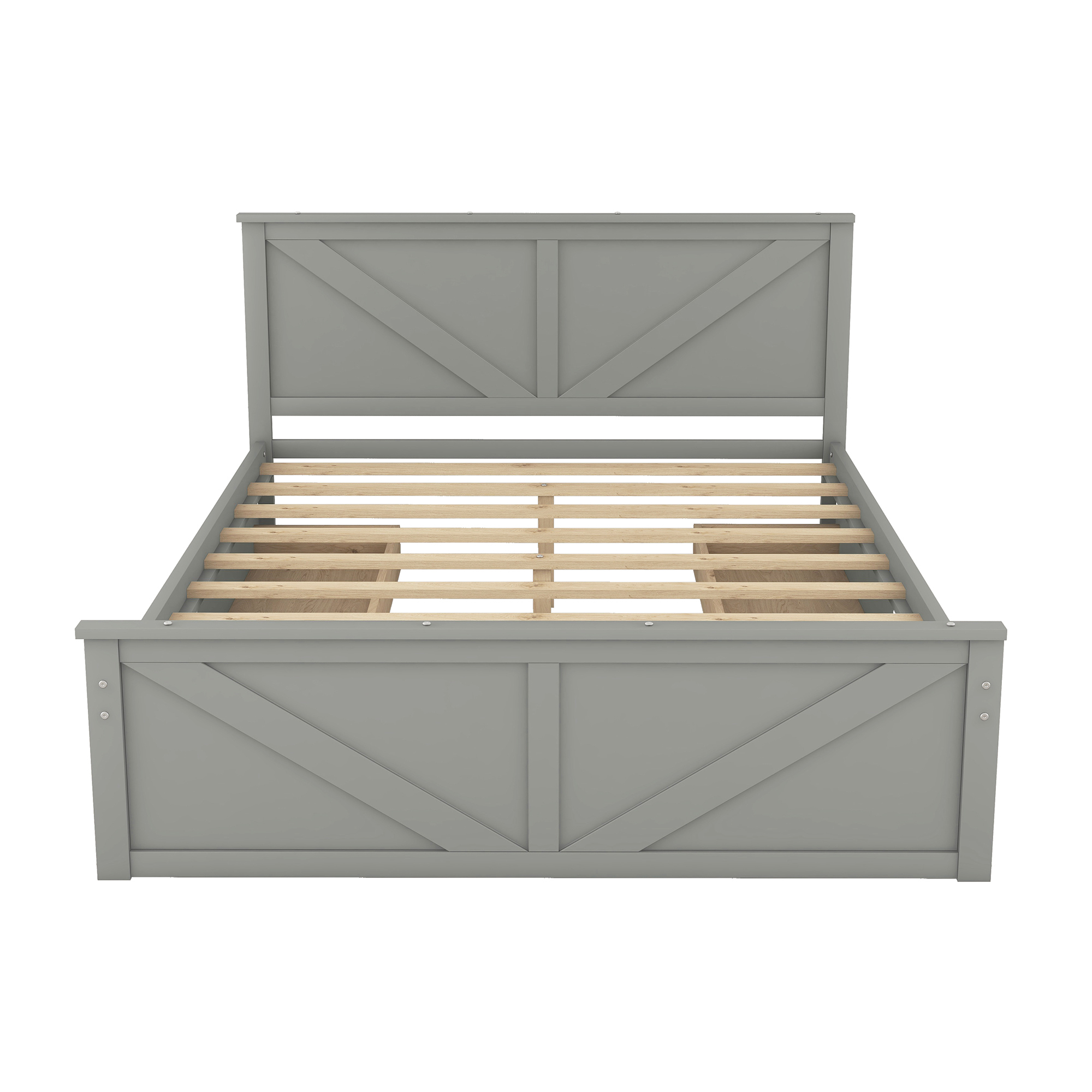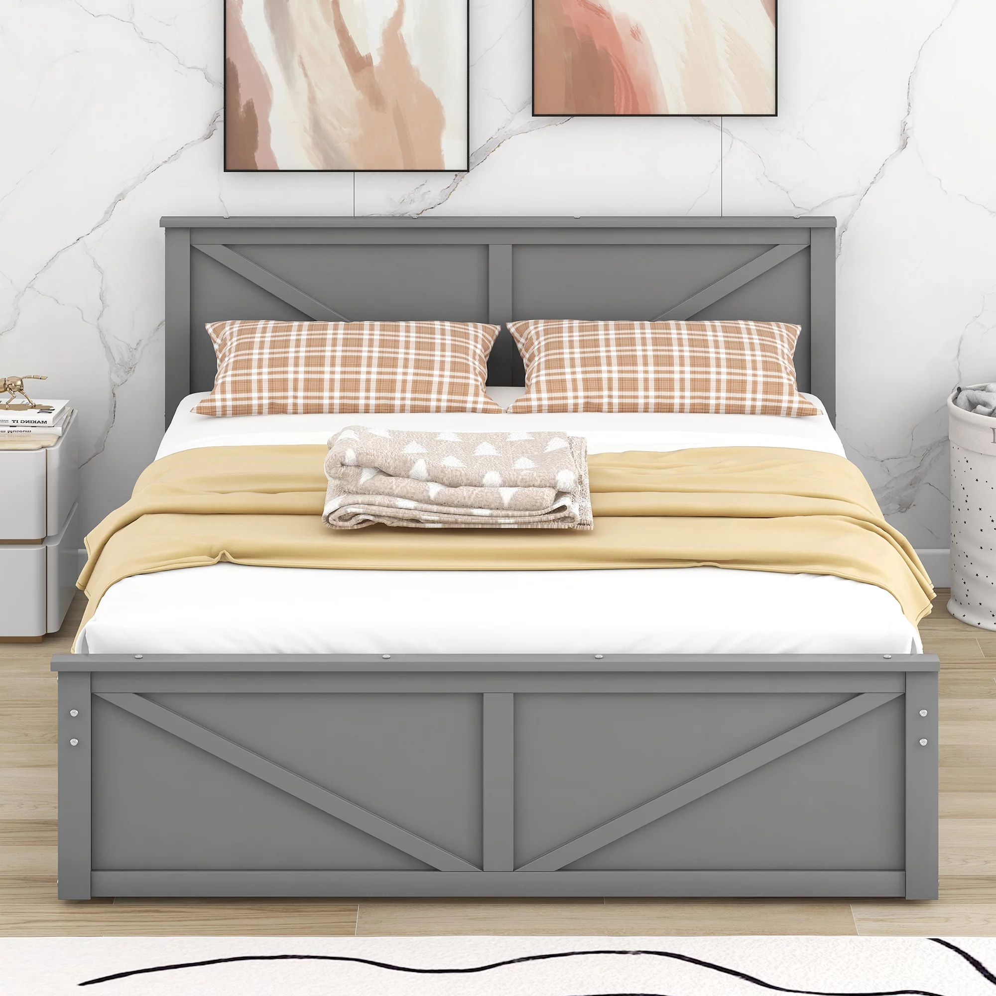 Modern design Wood Platform Queen Bed Frame with Headboard for Gray color