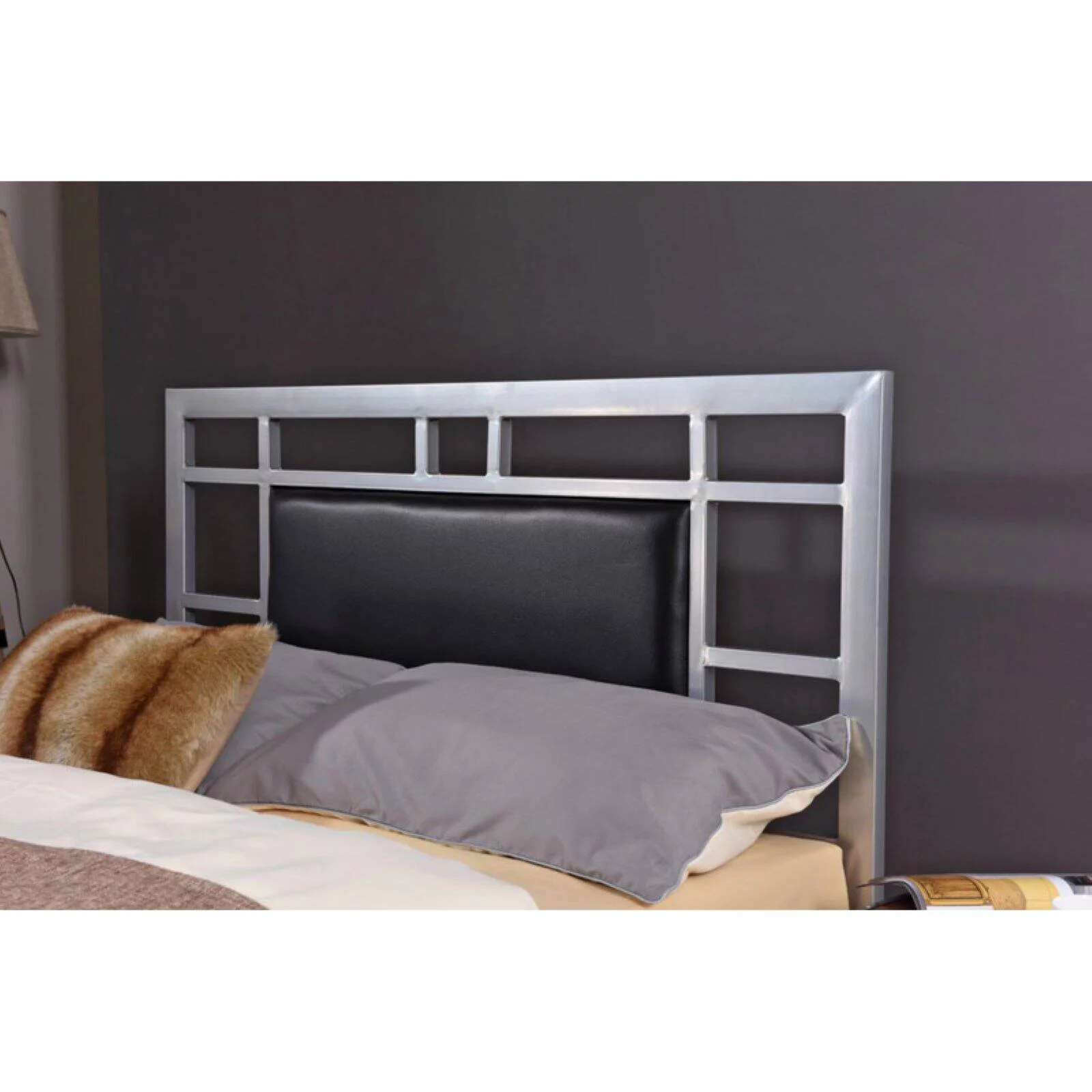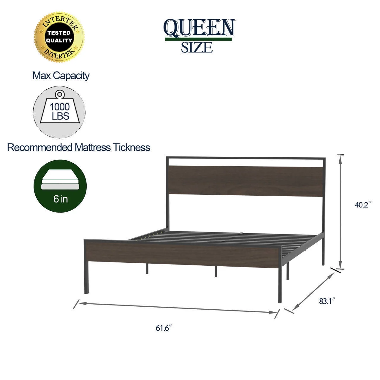 Wood Panel Sections On Headboard & Footboard Acy Queen Size Bed, Dark Gray