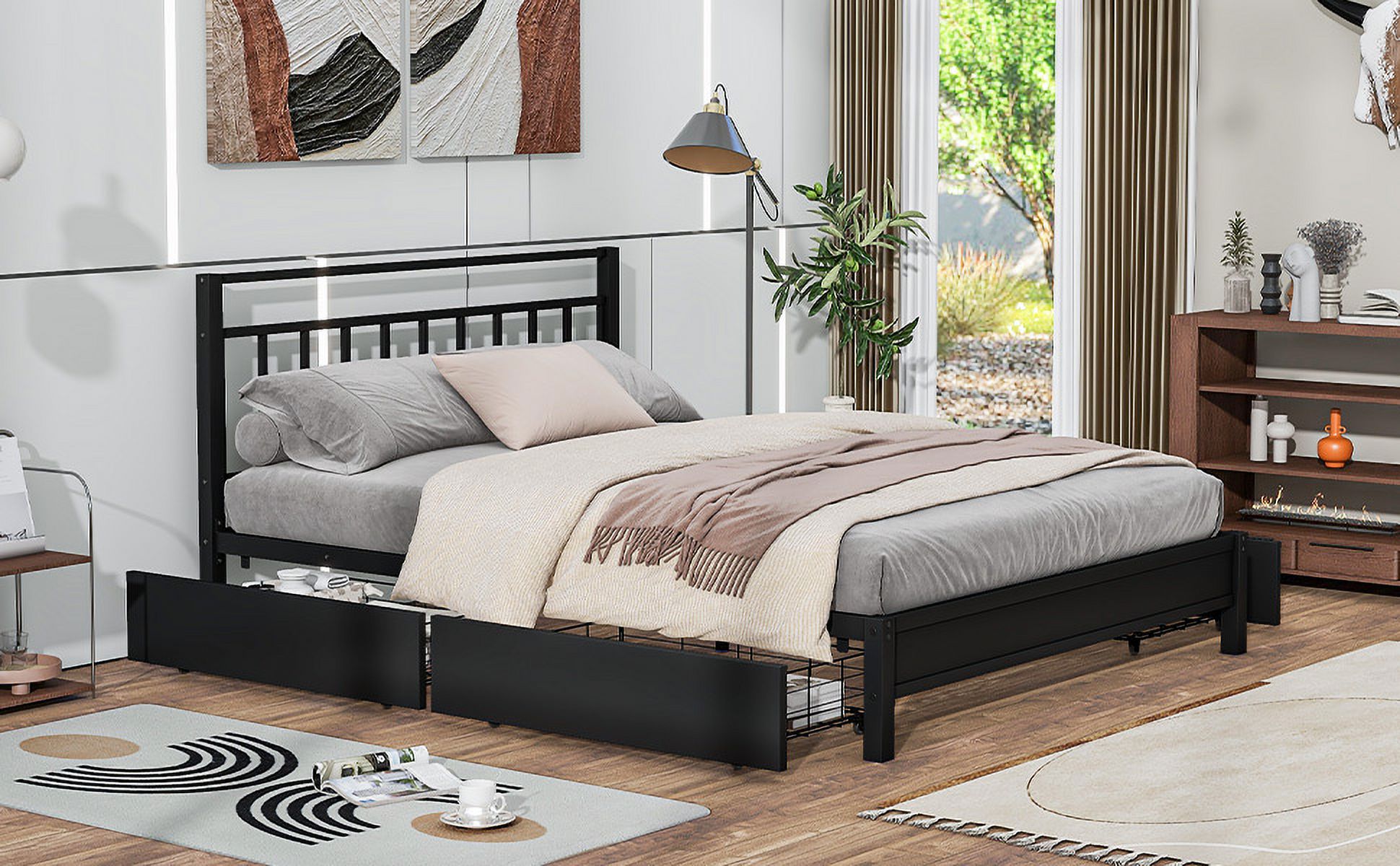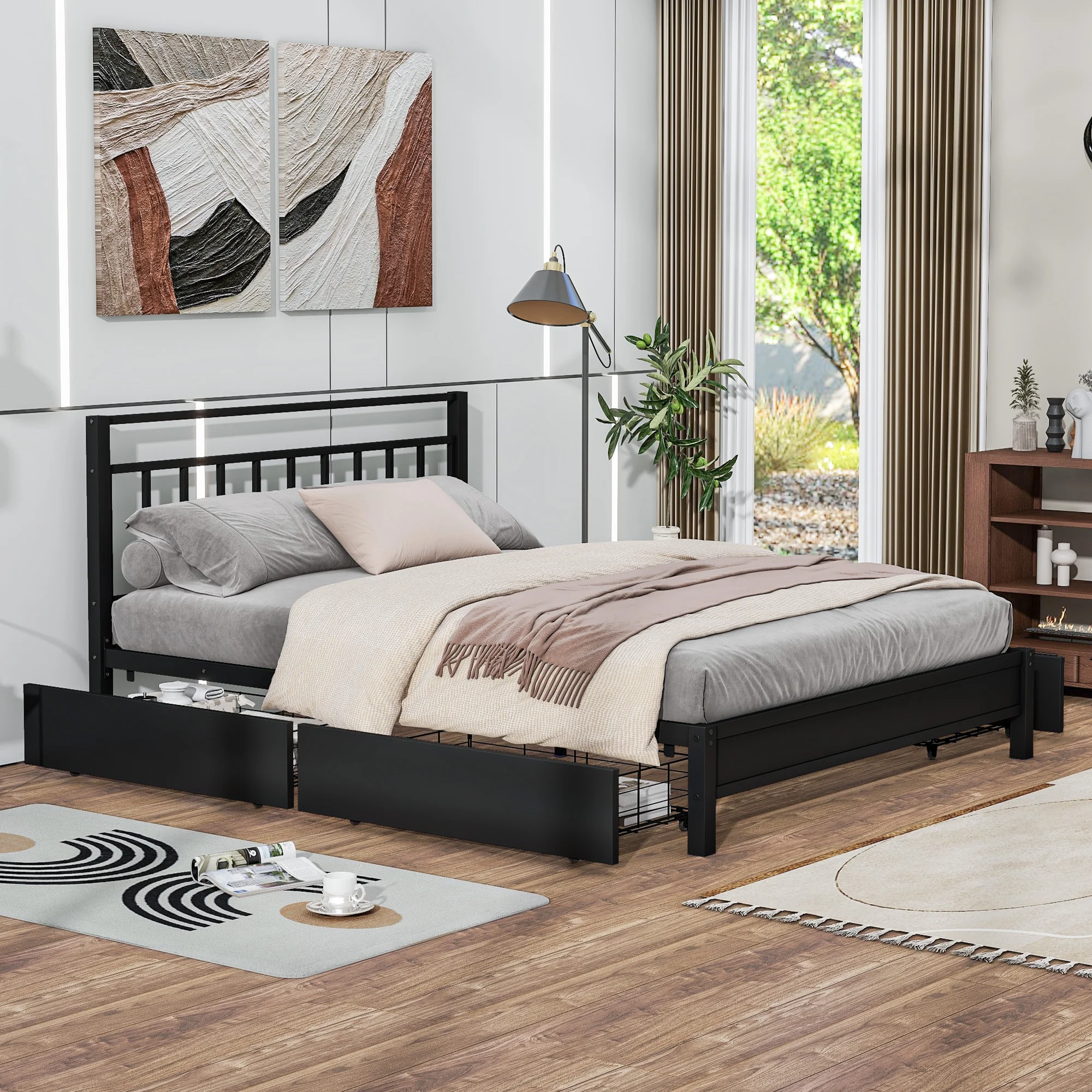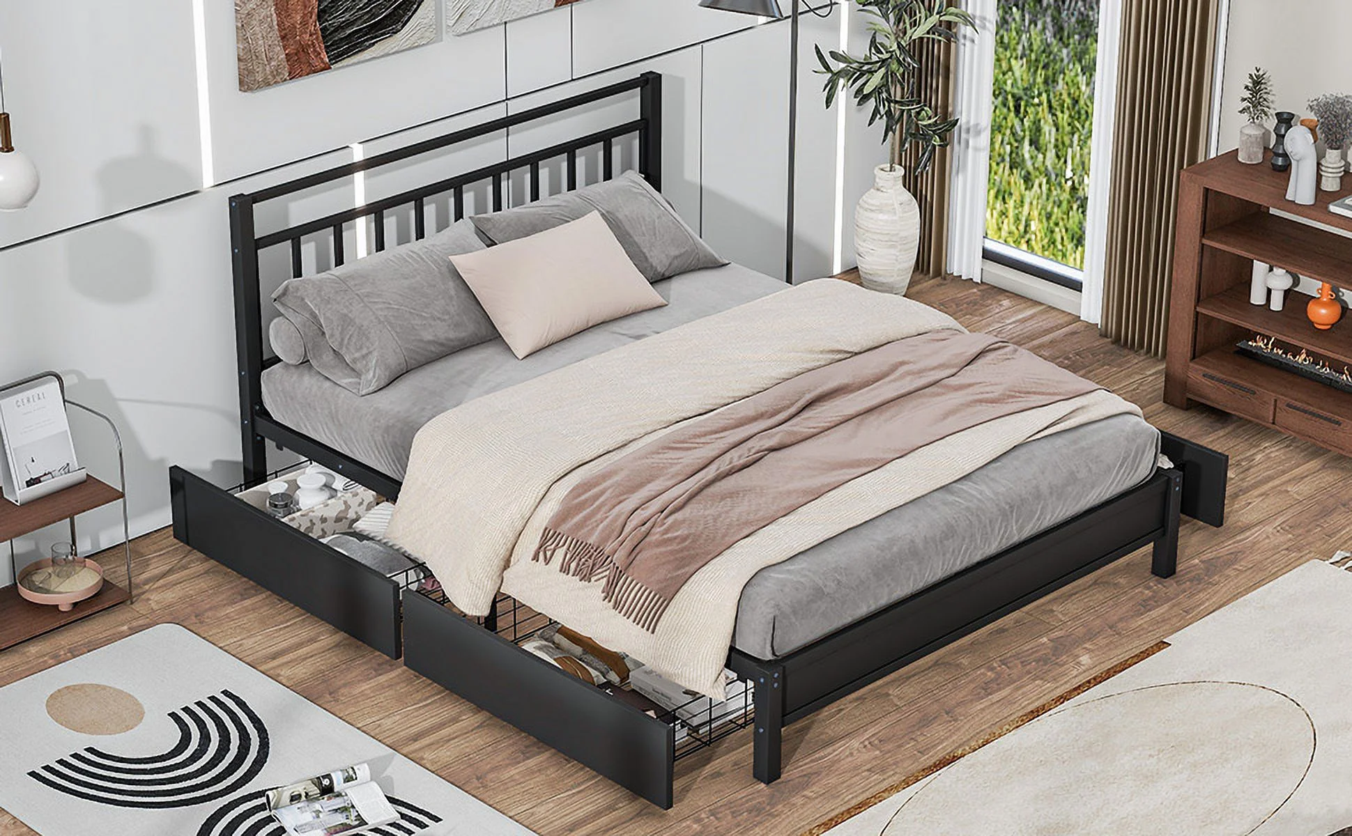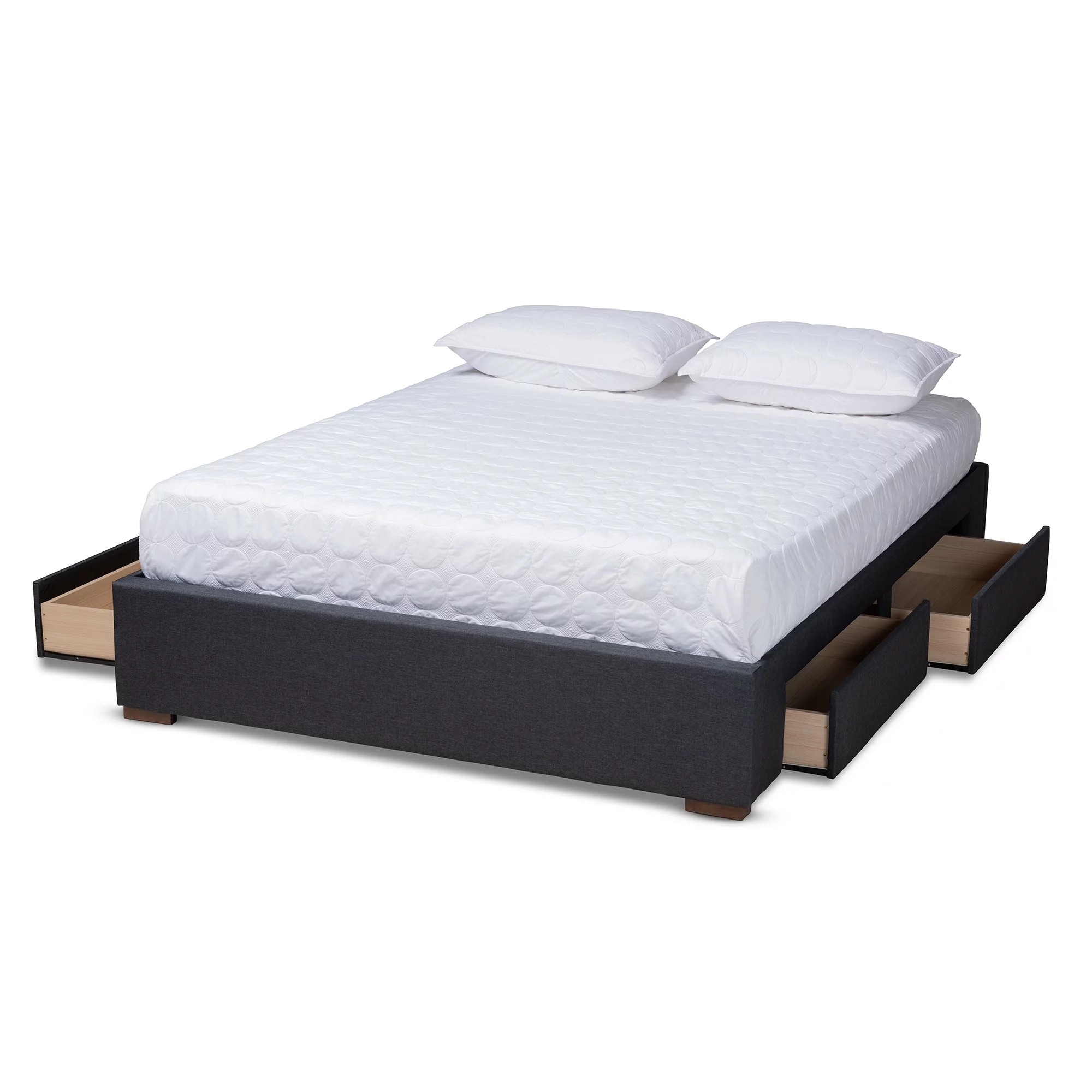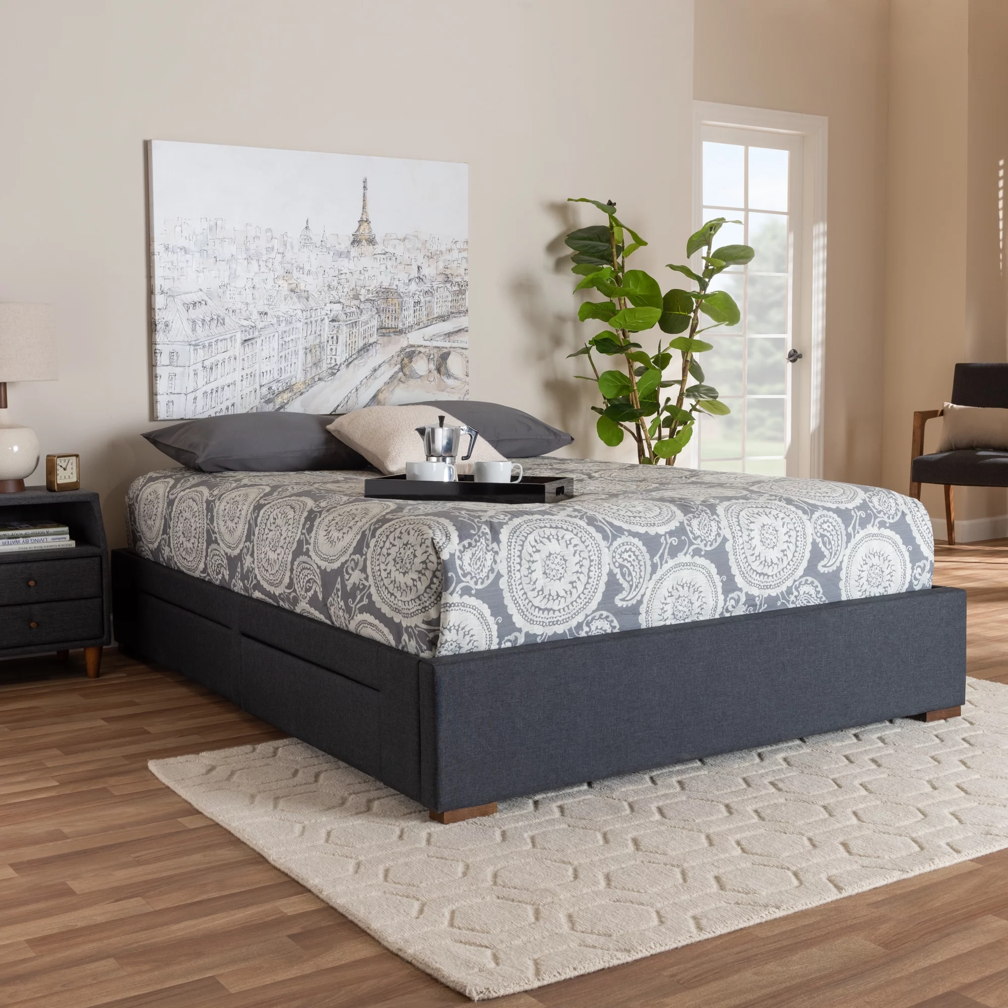 Baxton Studio Leni Modern and Contemporary Dark Grey Fabric Upholstered 4-Drawer Queen Size Platform Storage Bed Frame