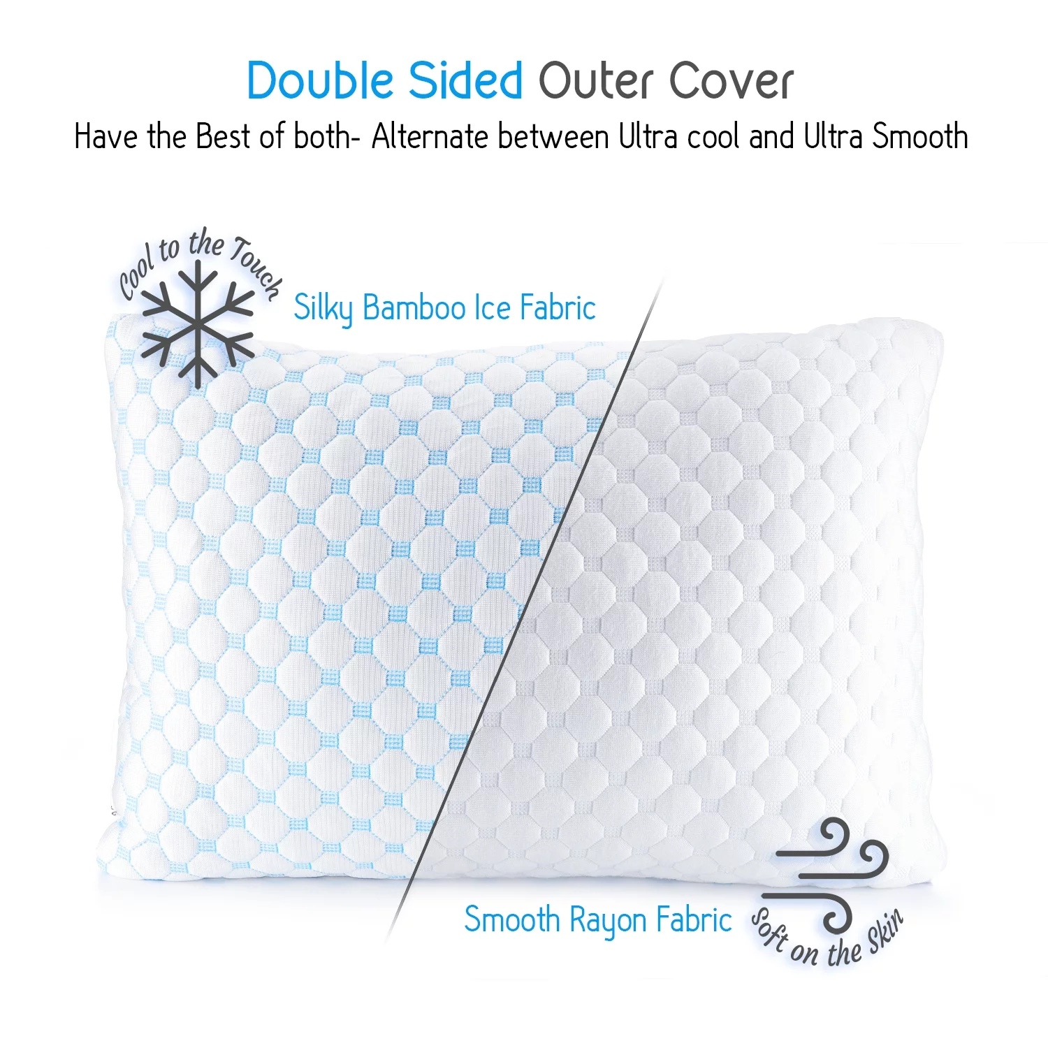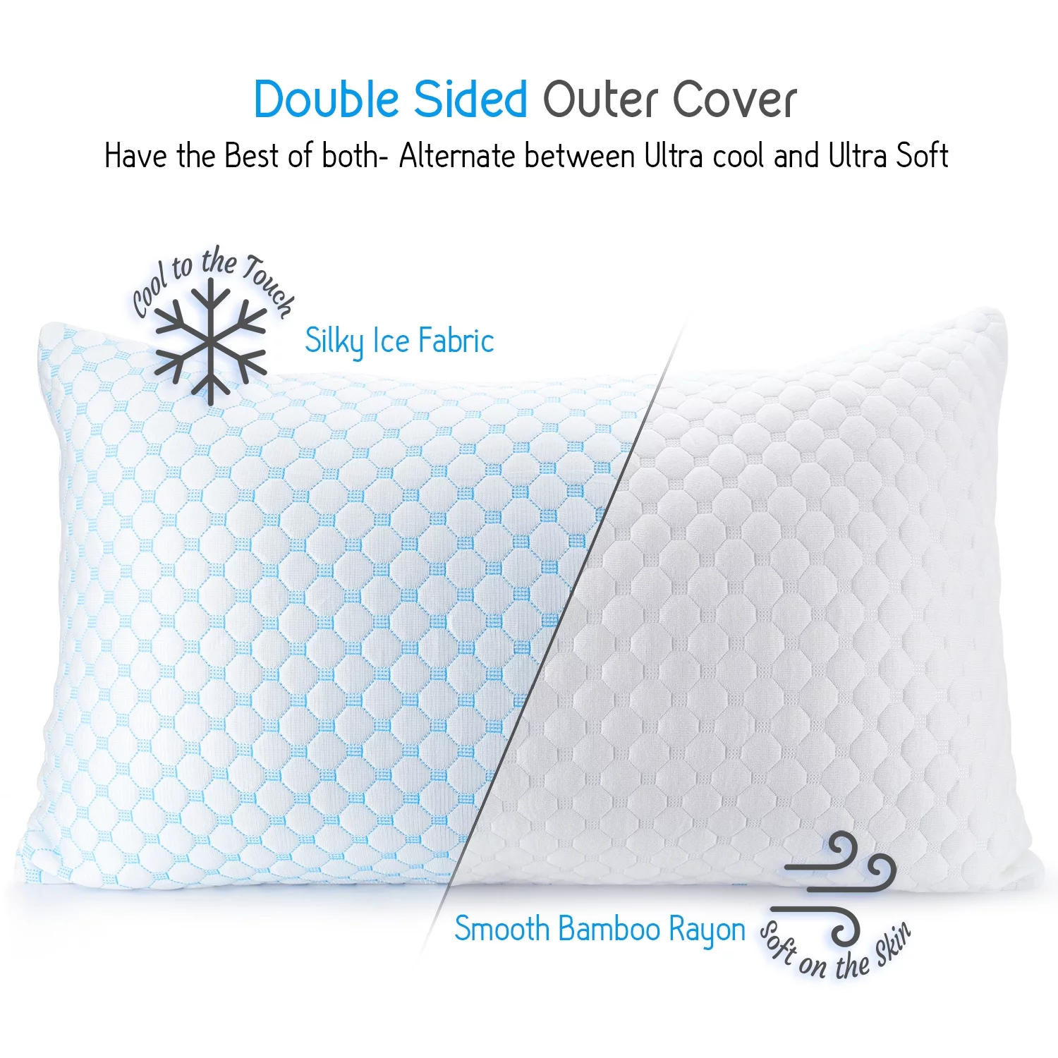 Hearth & Harbor Temperature Regulating Reversible Cooling Pillow, Memory Foam Pillow, King Pillows 20" X 36", 2 Pack