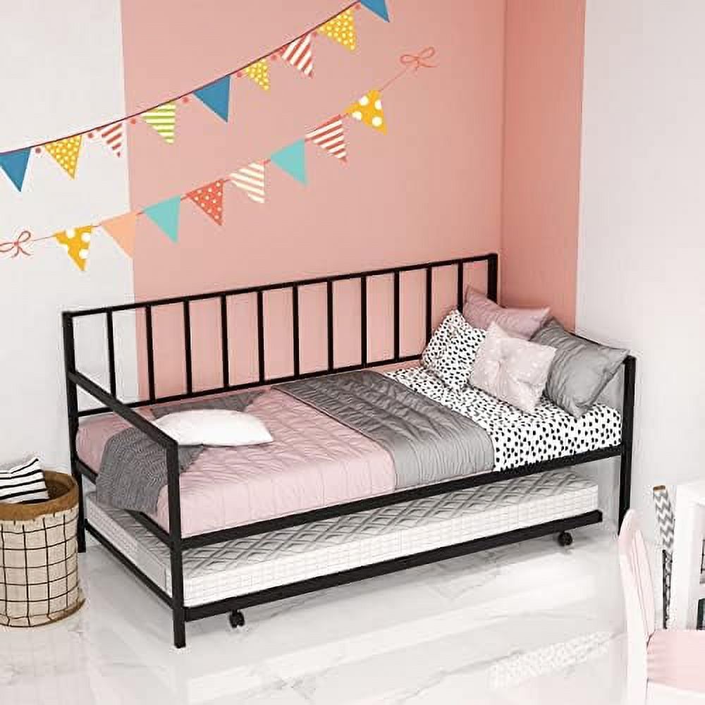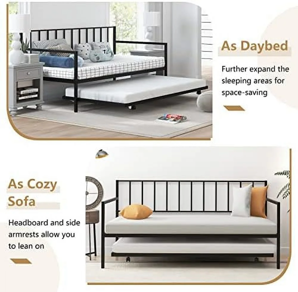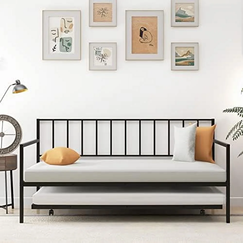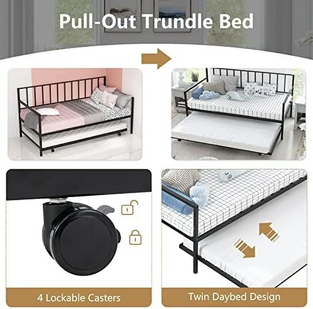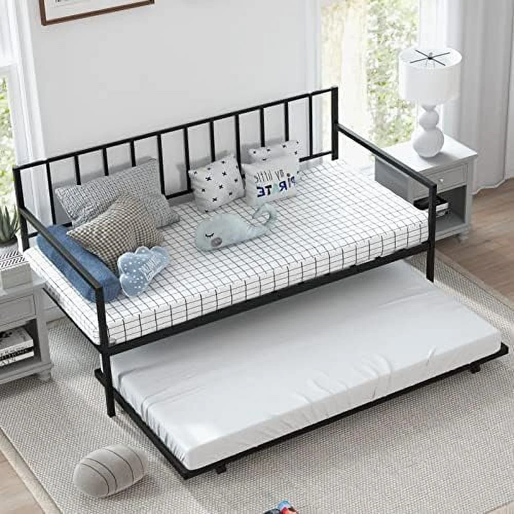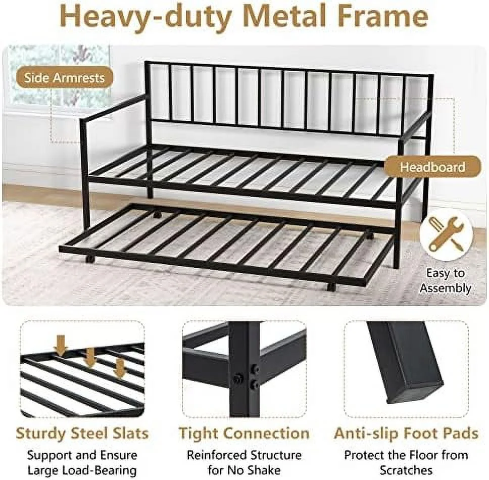 Hodedah Complete Metal Queen-Size Bed with Headboard-Footboard in Black Finish