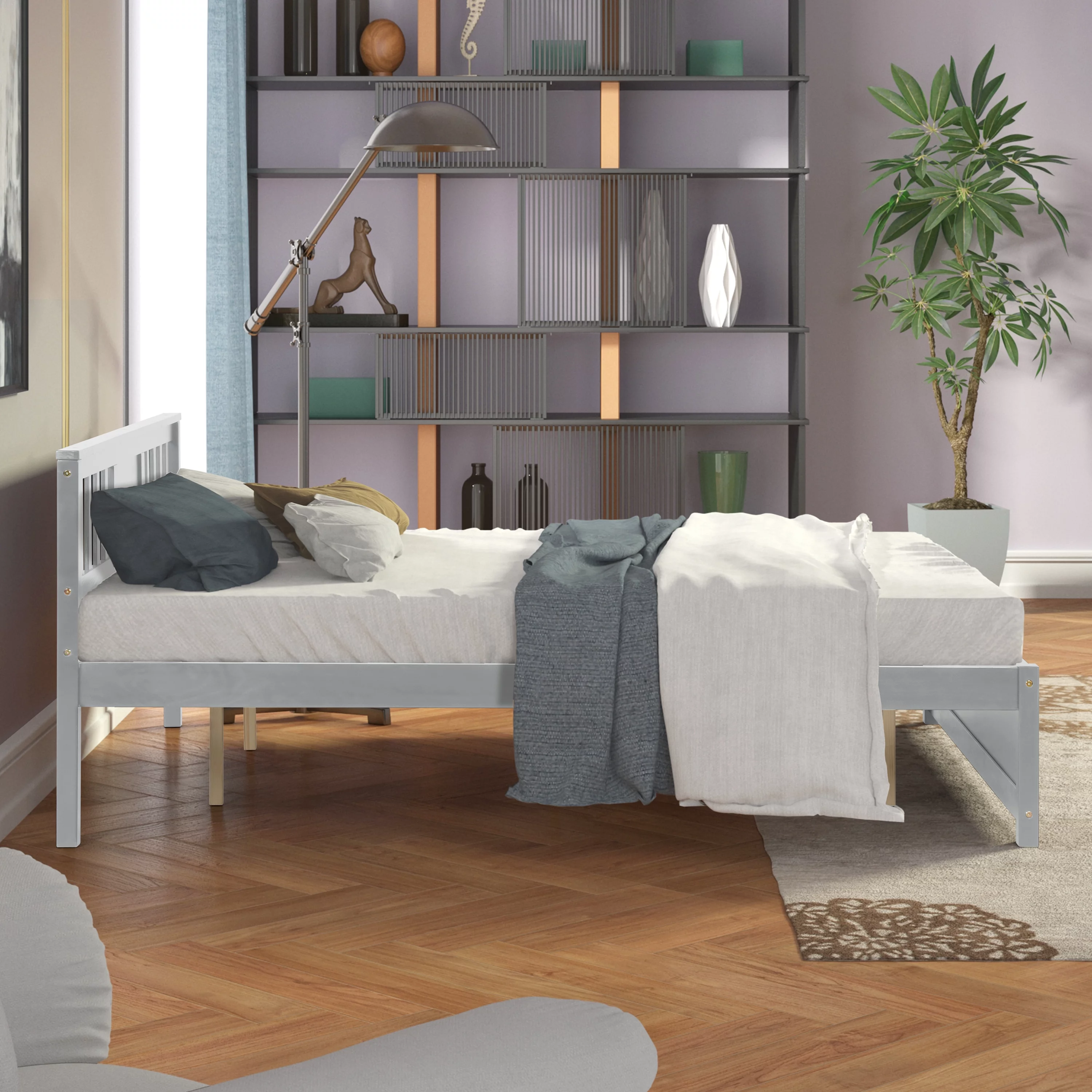 Maykoosh Antique Appeal Platform Bed And Bookcase Headboard Set Gray Oak