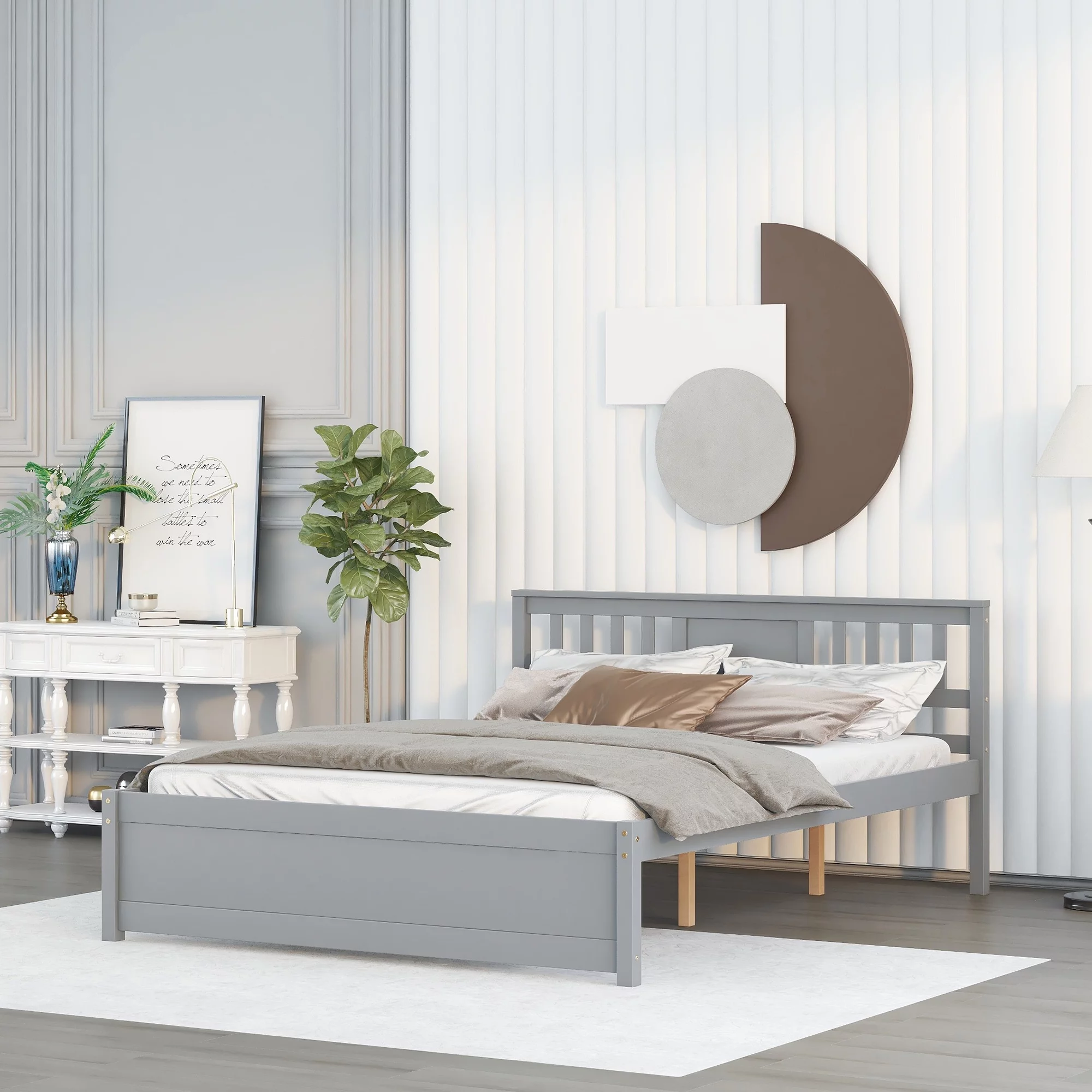CoSoTower Modern Concise Style Solid Wood Grain Platform Bed Frame, Queen, Stone Gray