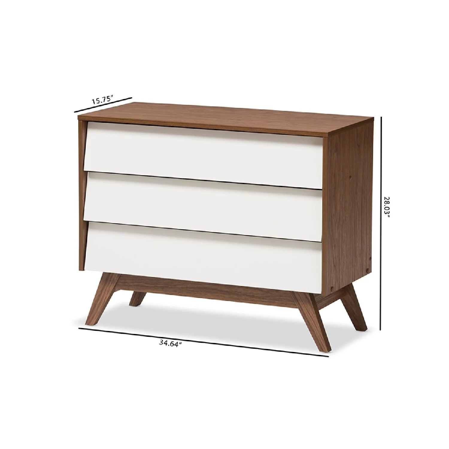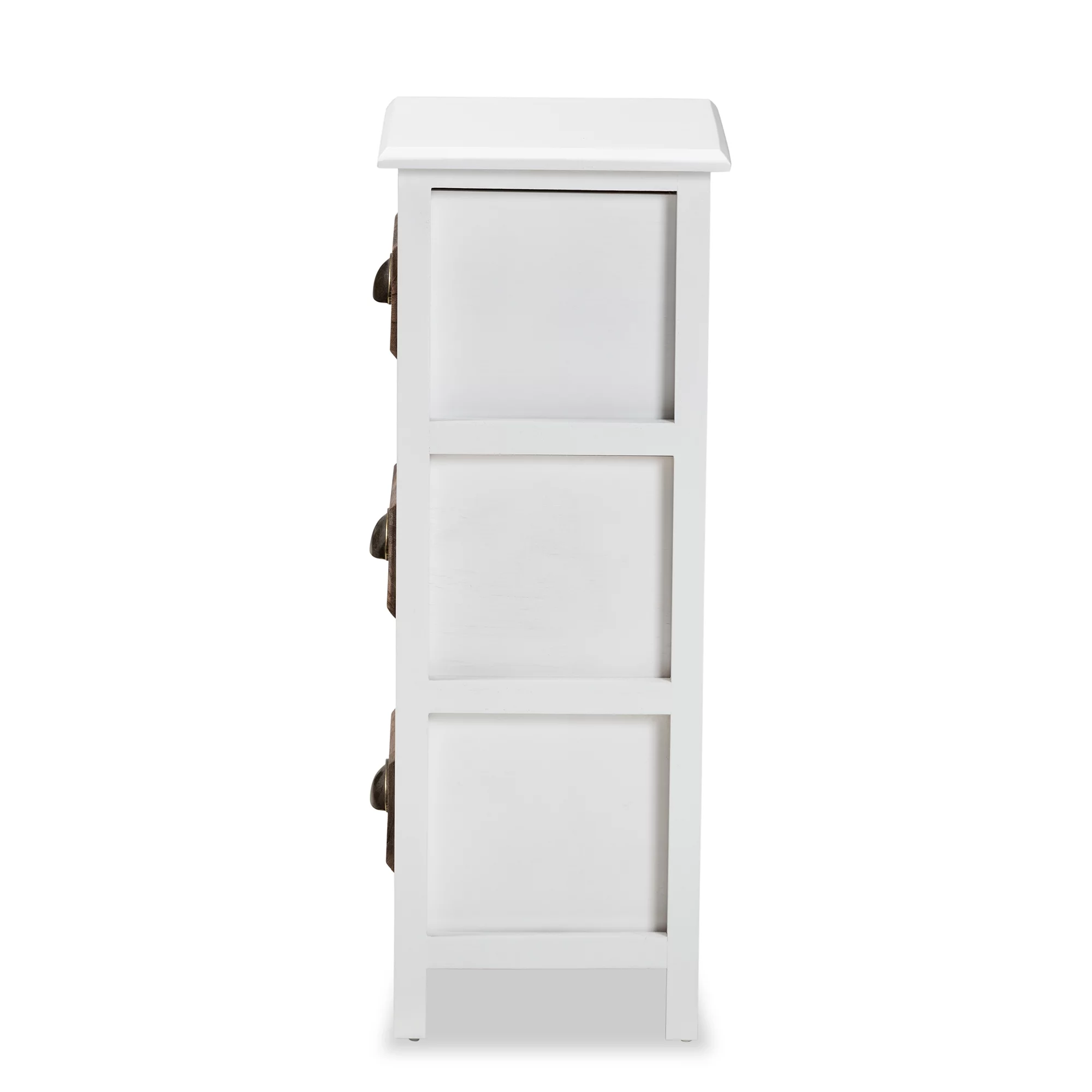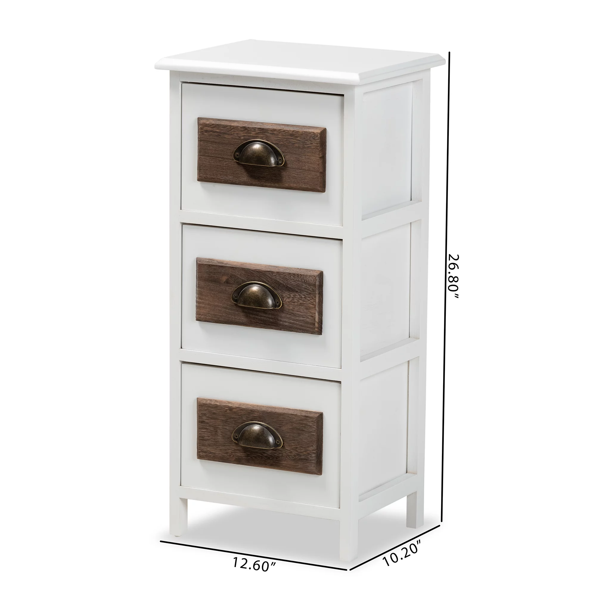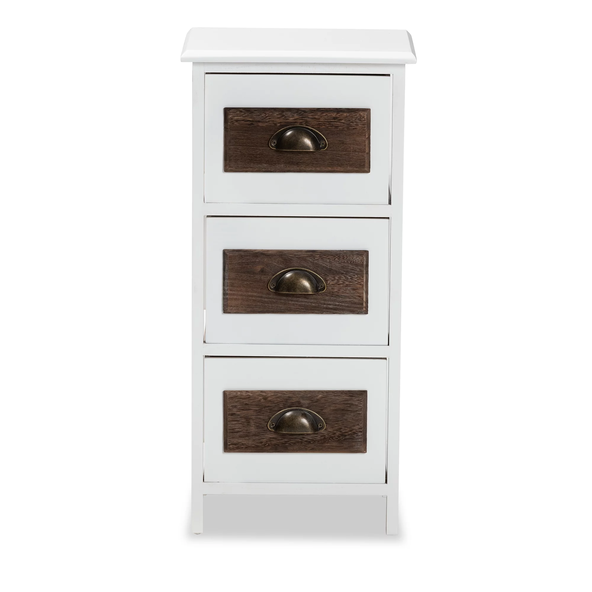 Baxton Studio Hildon Mid-Century Modern White and Walnut Wood 3-Drawer Storage Chest