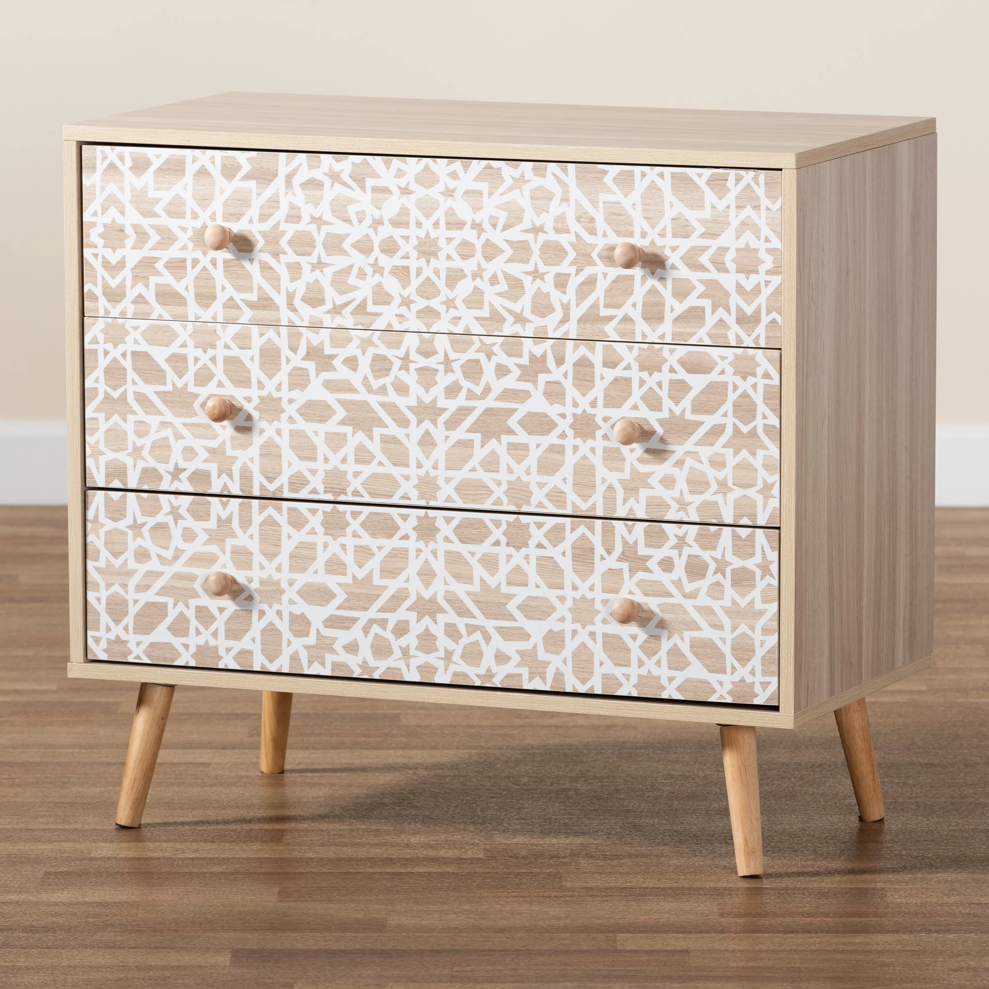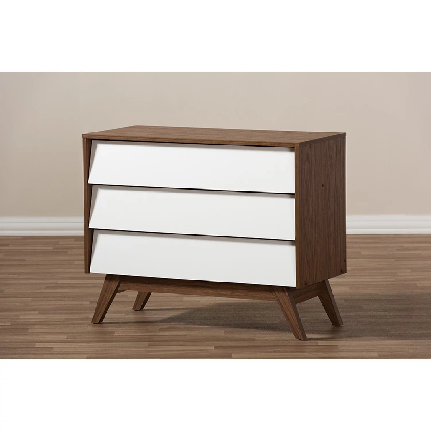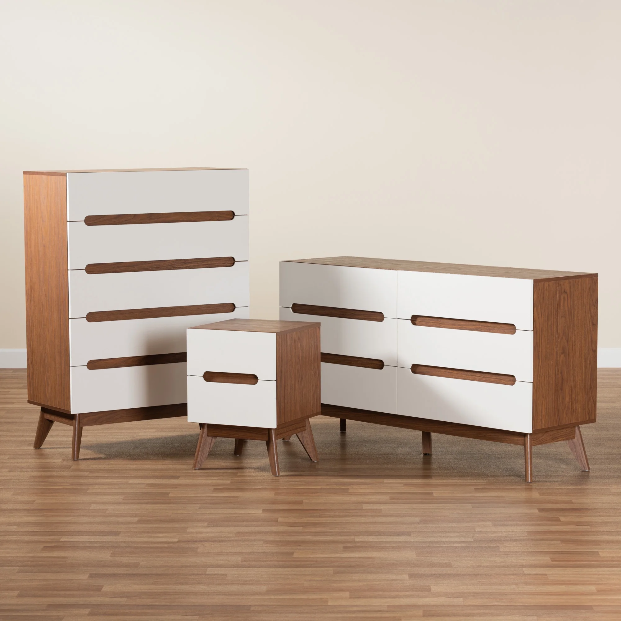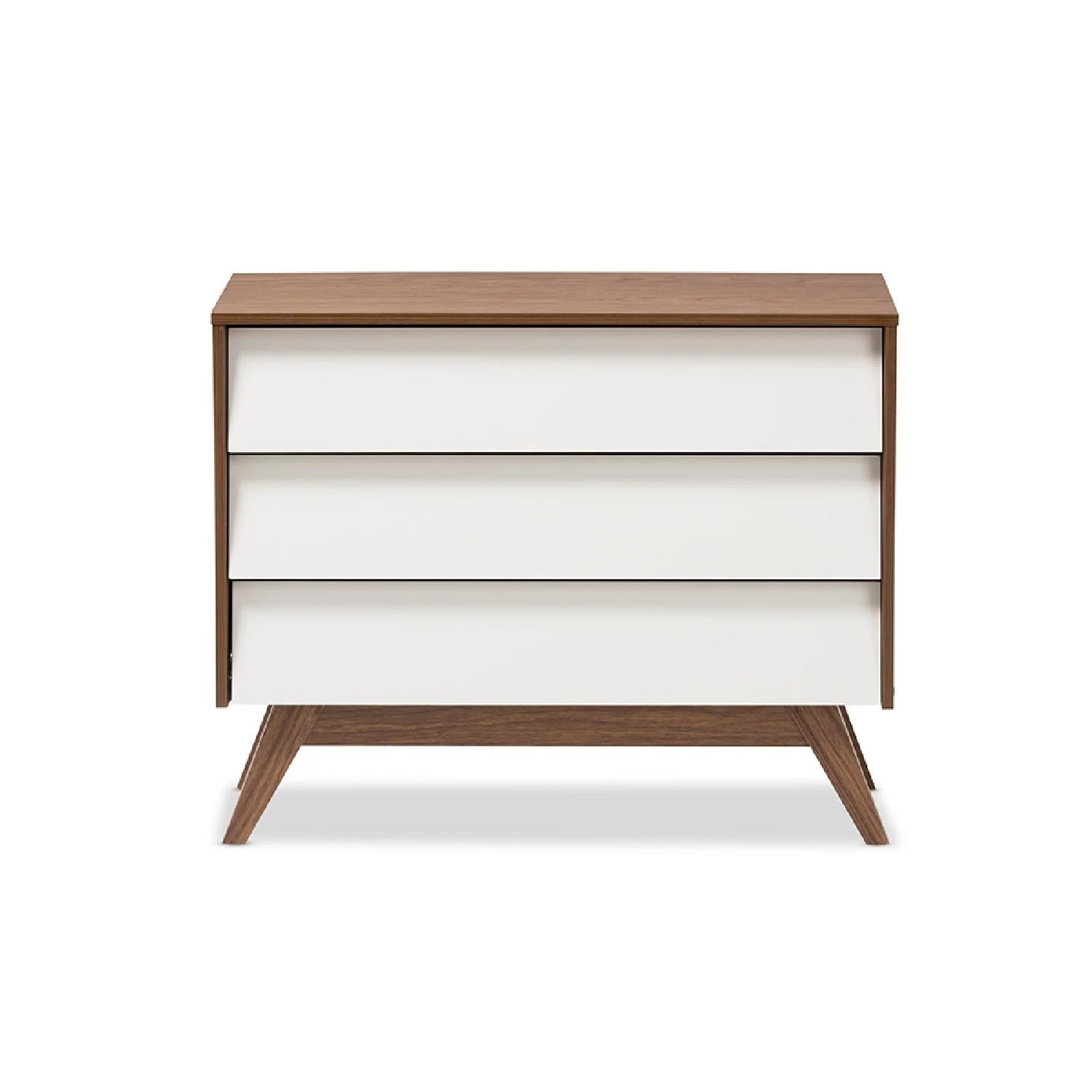 Baxton Studio Hildon Mid-Century Modern White and Walnut Wood 3-Drawer Storage Chest