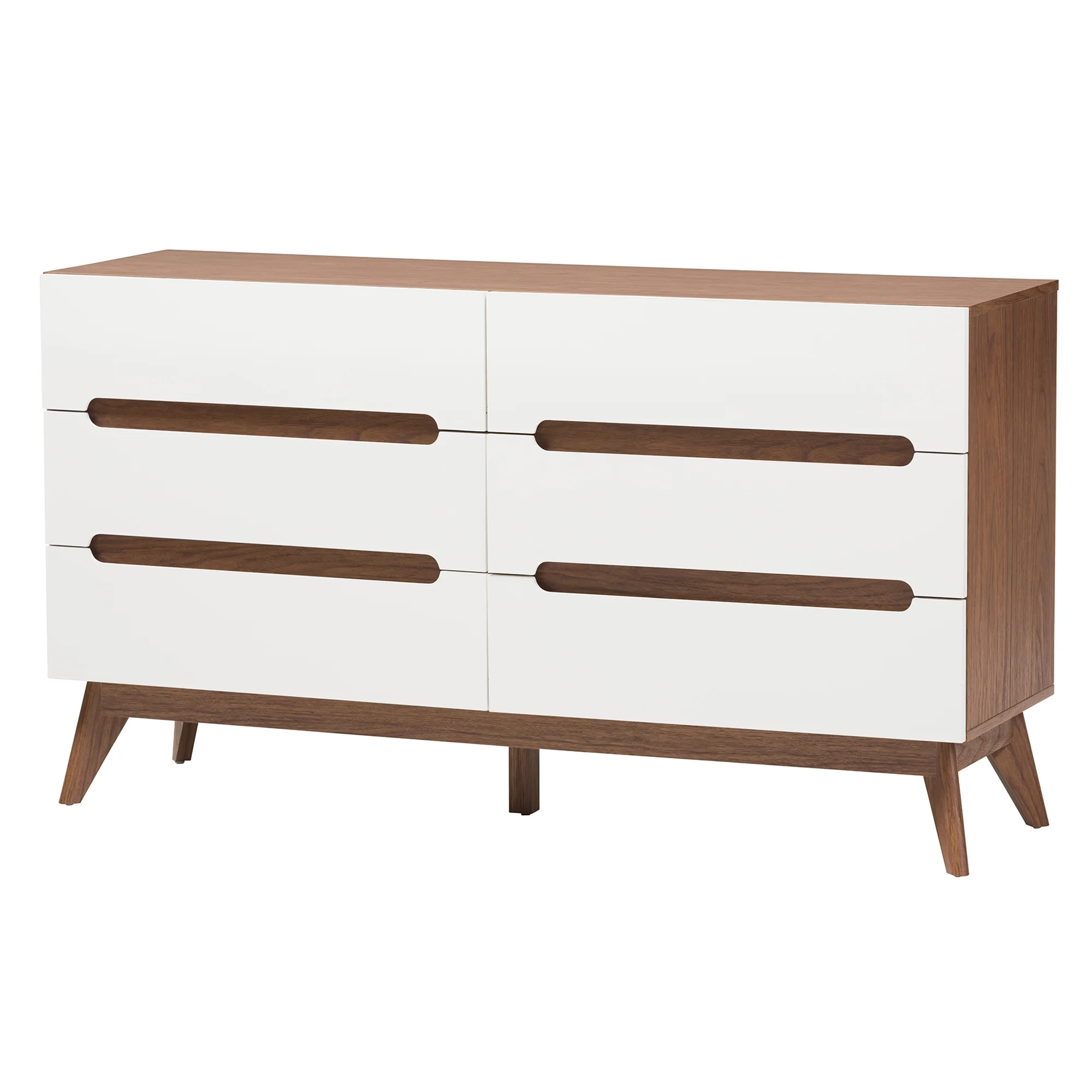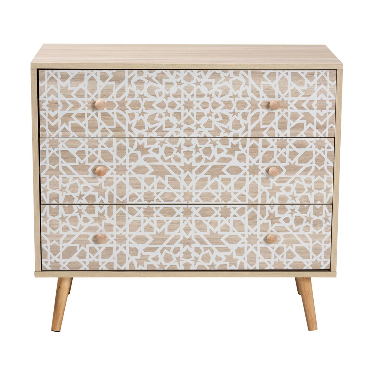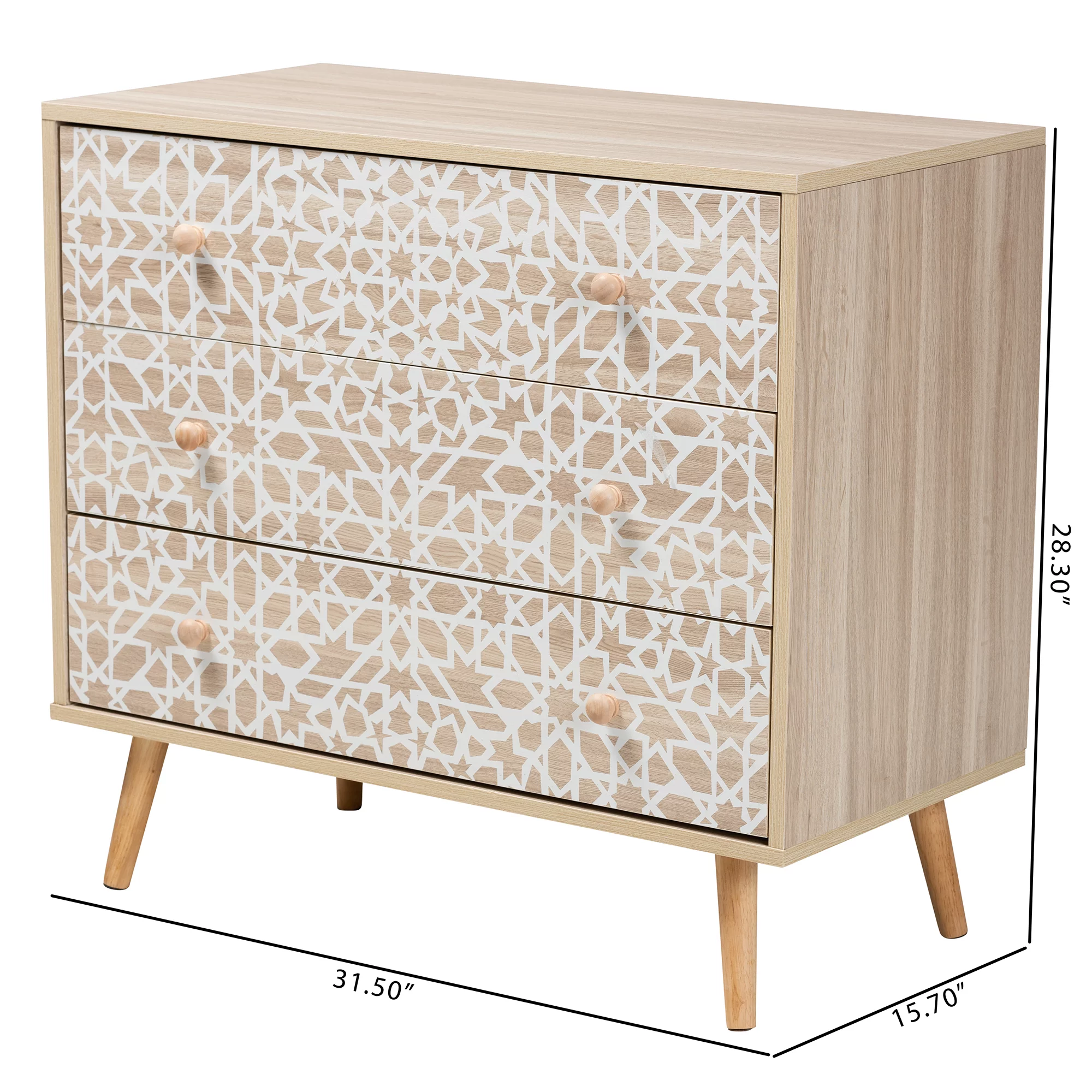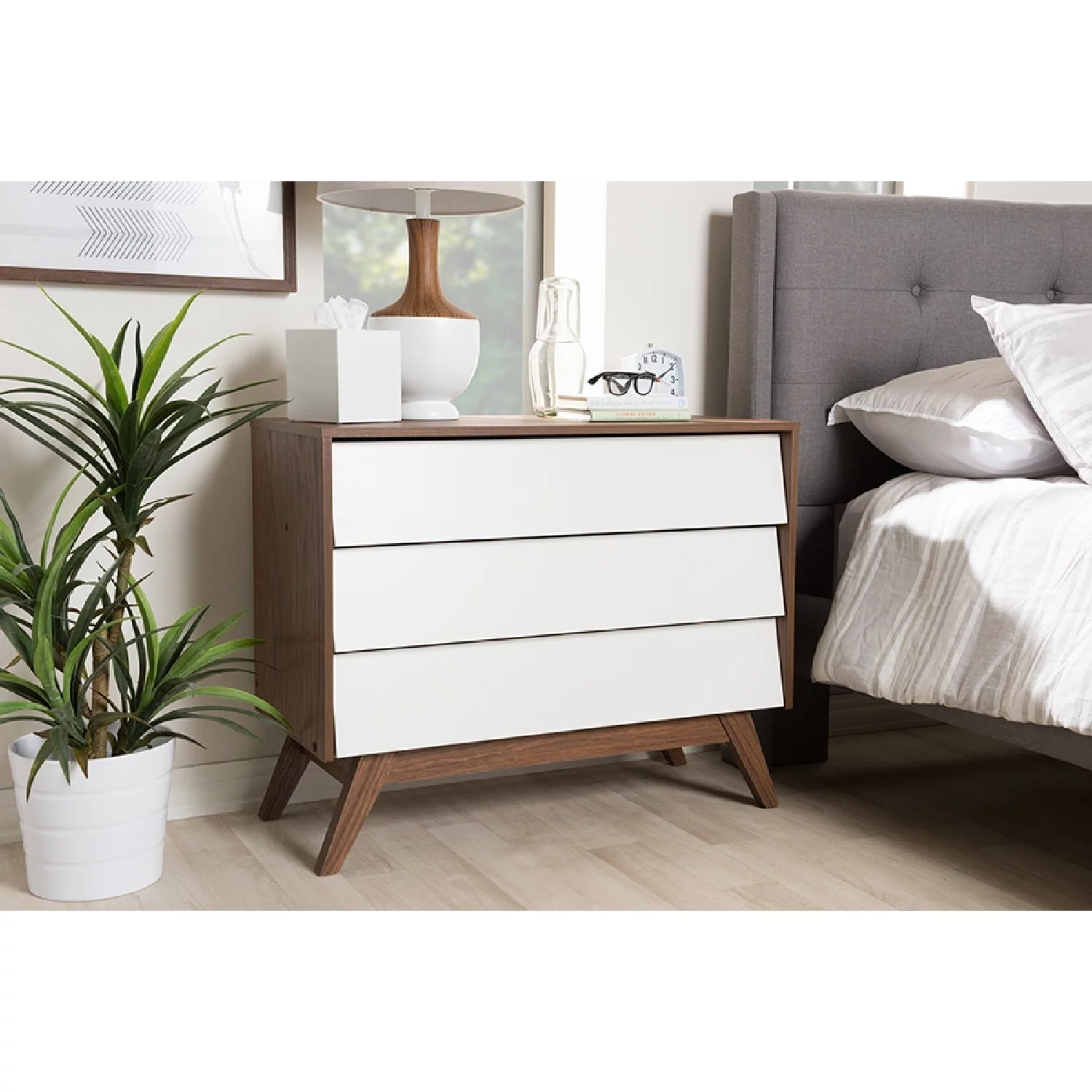 Baxton Studio Hildon Mid-Century Modern White and Walnut Wood 3-Drawer Storage Chest