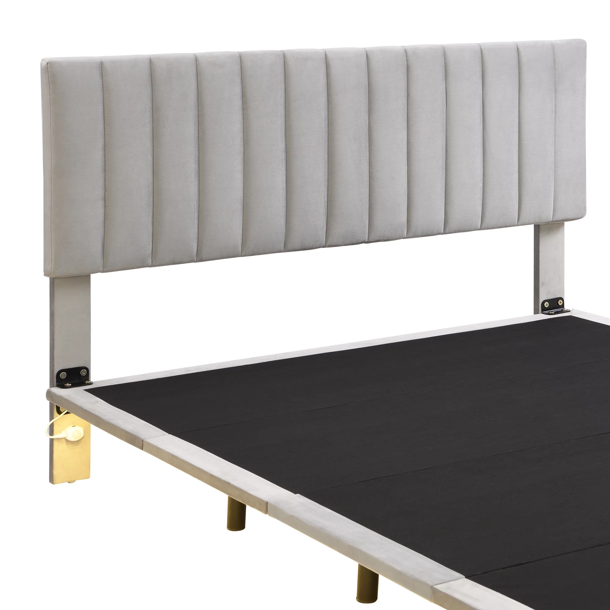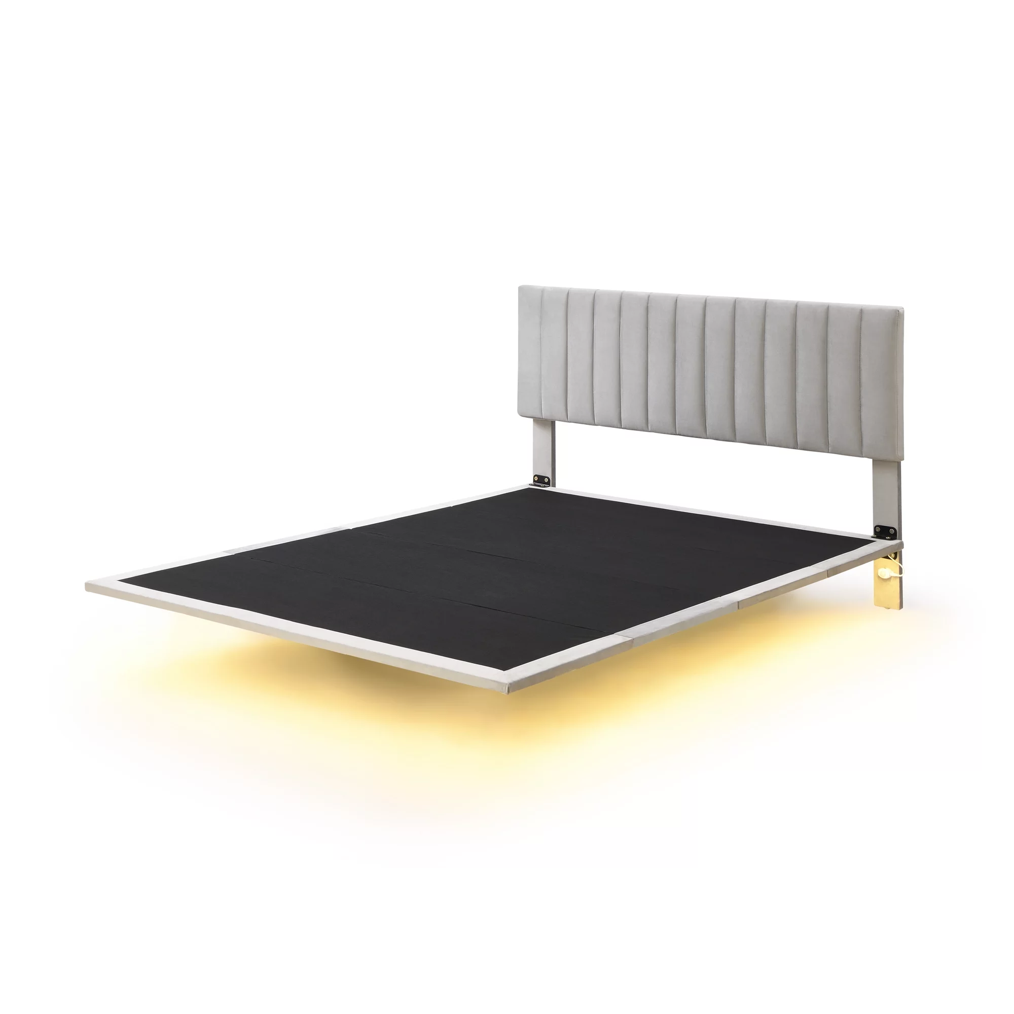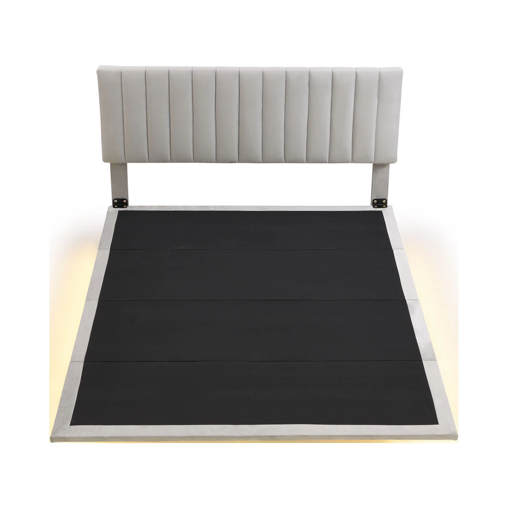 CoSoTower Queen Size Upholstered Bed with Sensor Light and Headboard, Floating Velvet Platform Bed, Gray