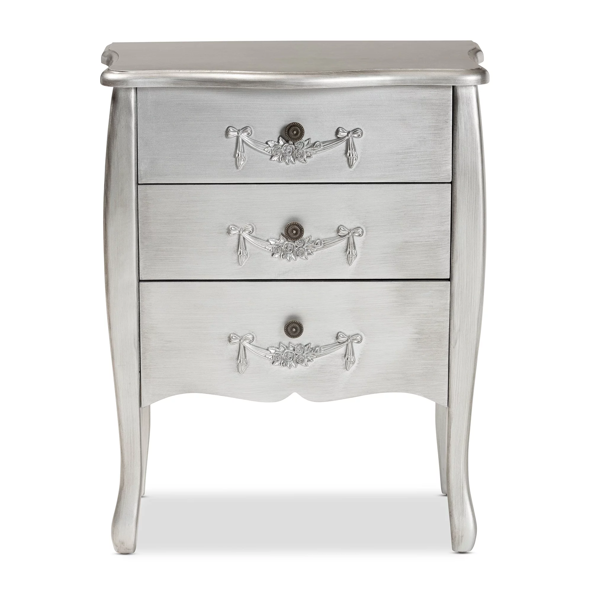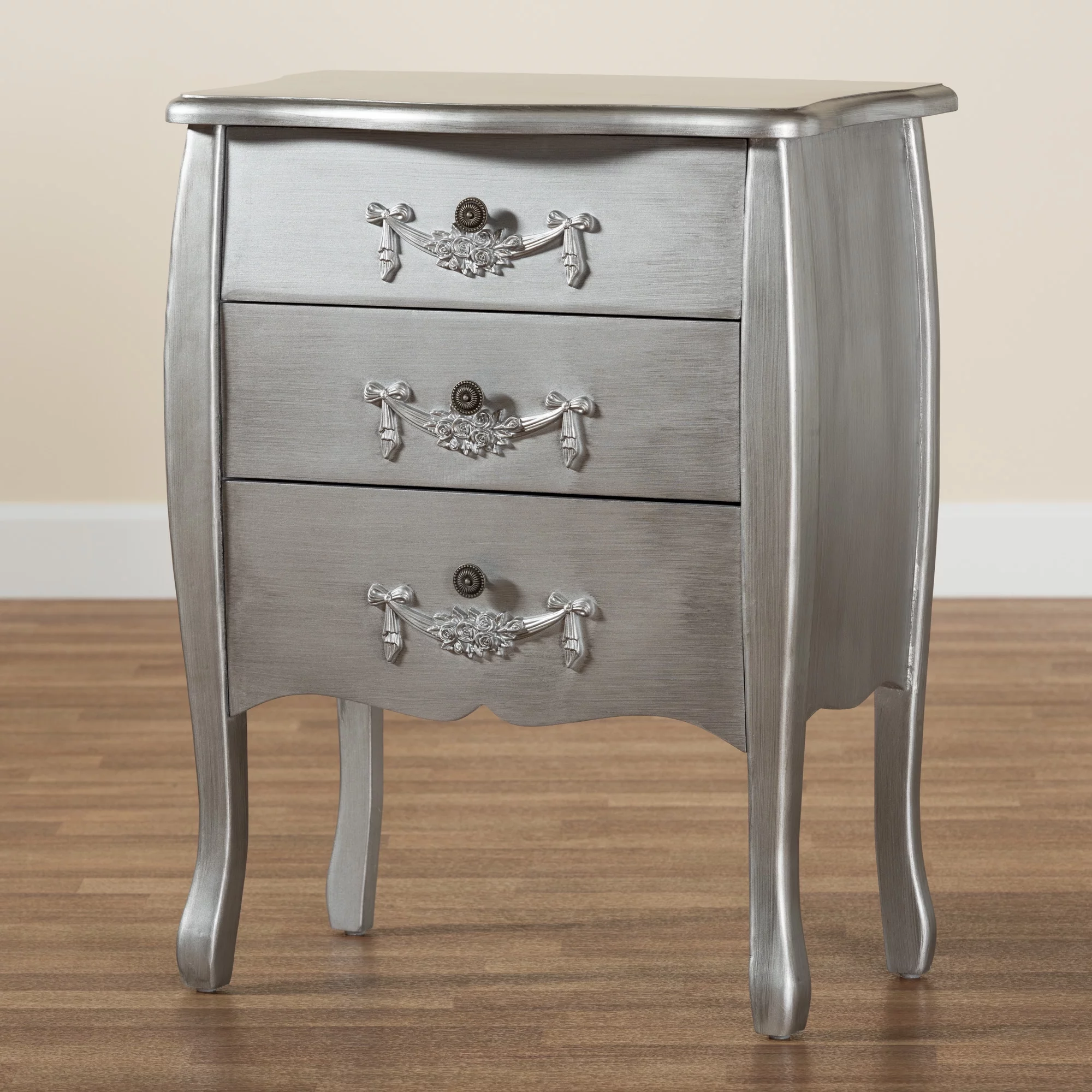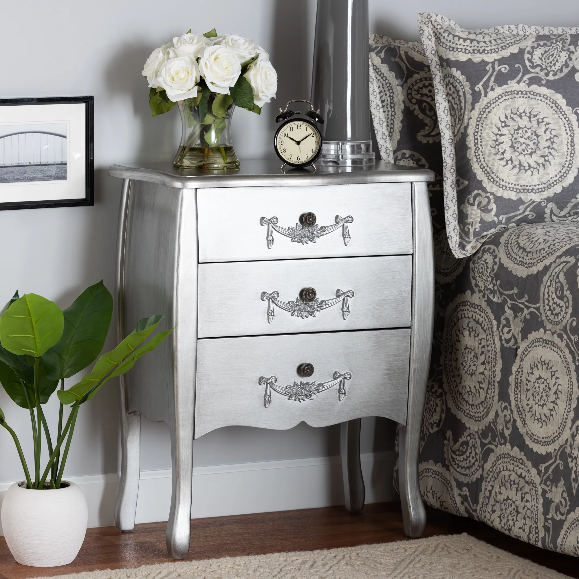Baxton Studio Eliya Classic and Traditional Brushed Silver Finished Wood 3-Drawer Storage Cabinet